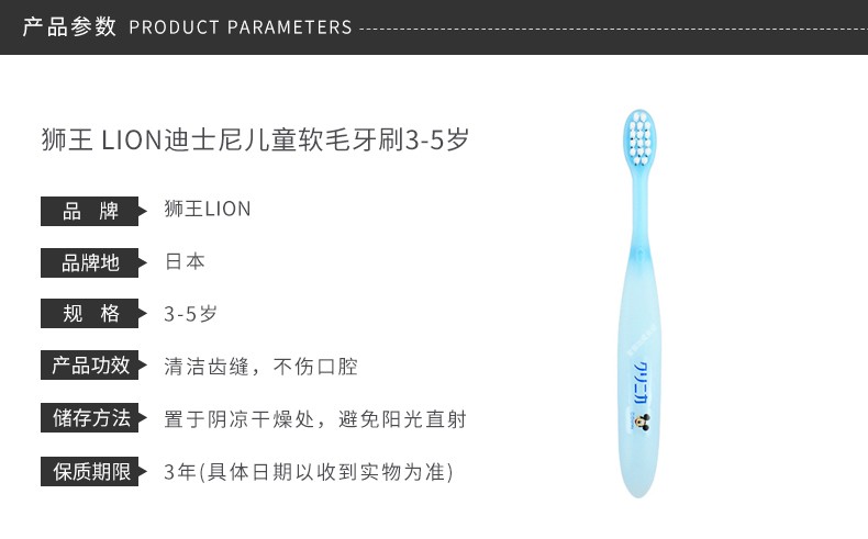 LION/狮王 迪士尼儿童软毛刷牙刷 3-5岁 颜色随机发JPY带授权招加盟代理