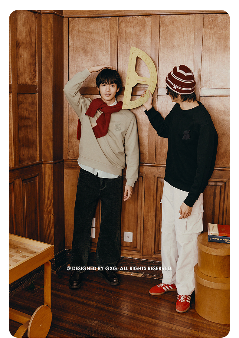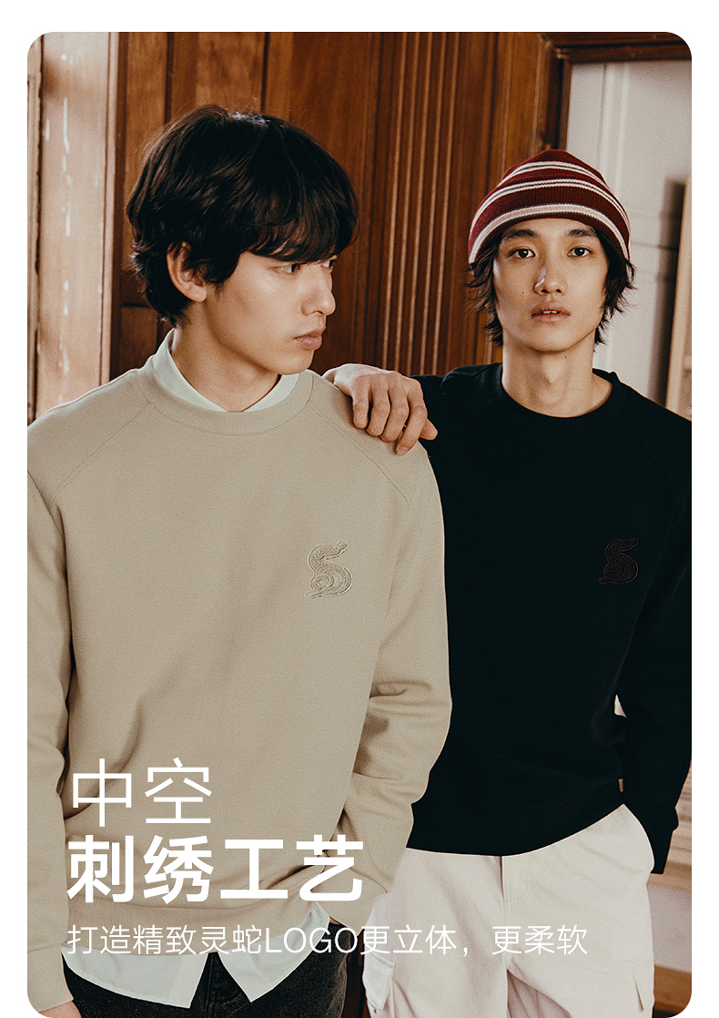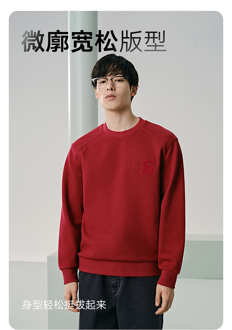 GXG男装 新年系列多色肌理感简约宽松圆领卫衣男士24年春季热卖时尚卫衣