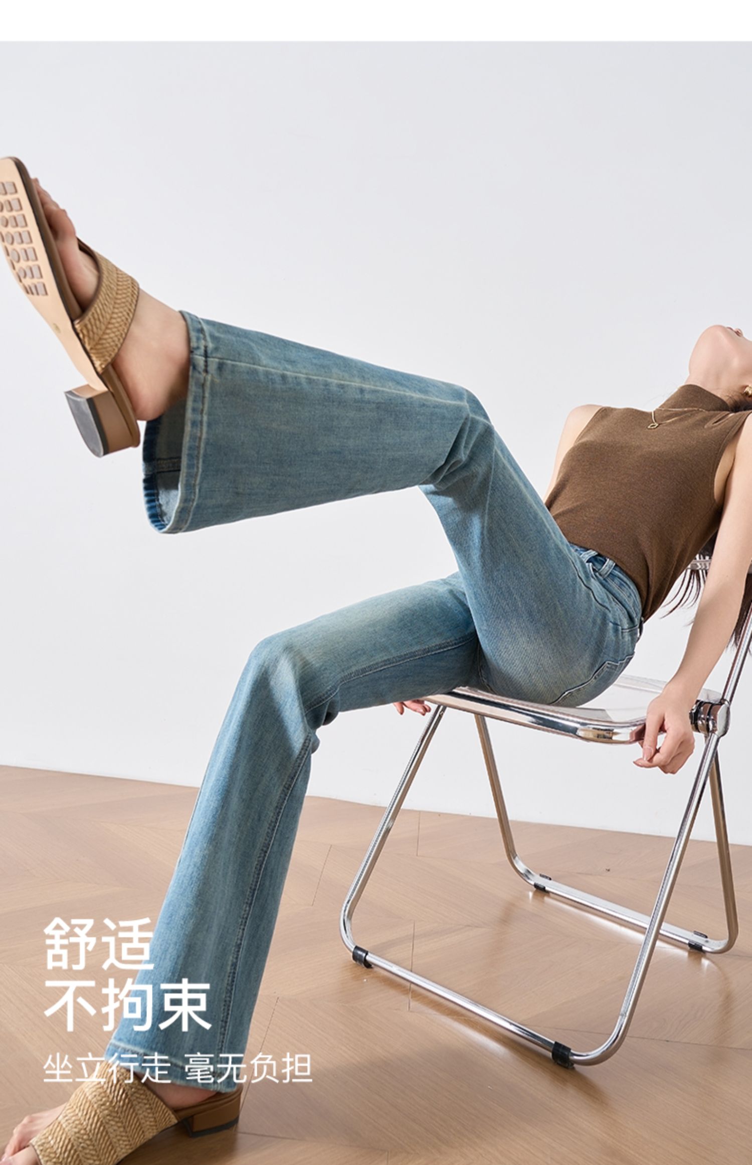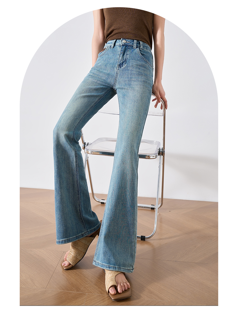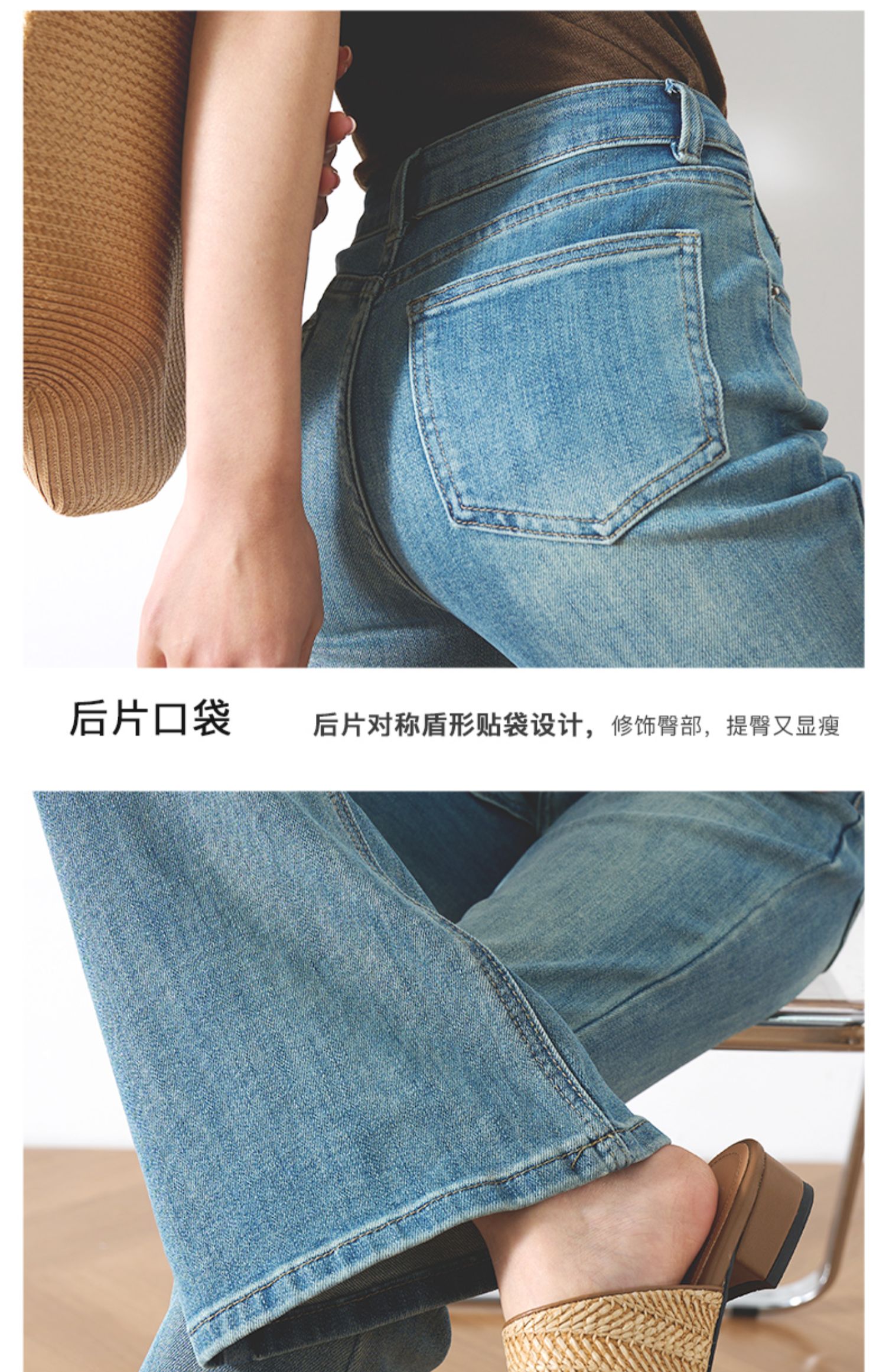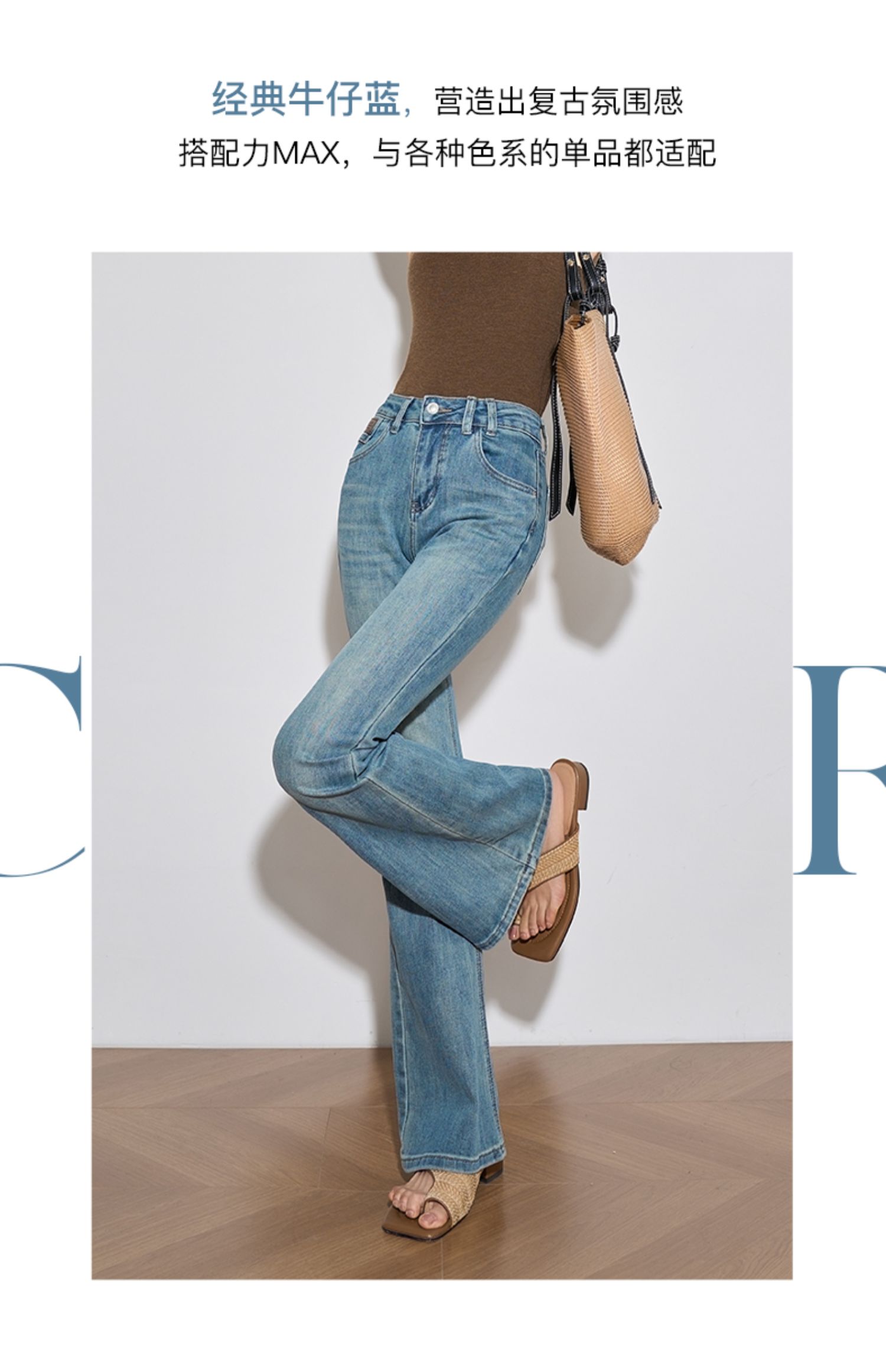 OLrain欧芮儿蓝色牛仔裤女春季2024年新款复古高腰显瘦百搭微喇裤