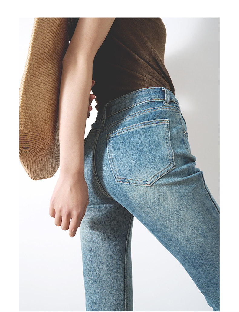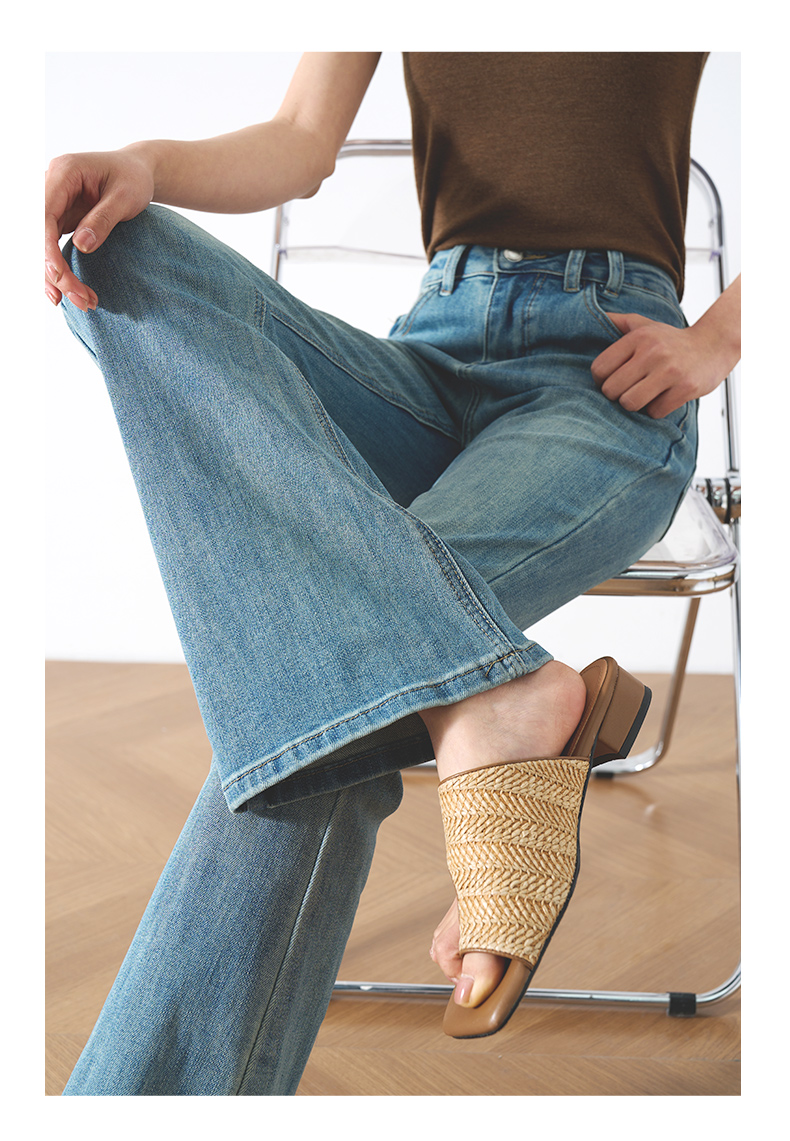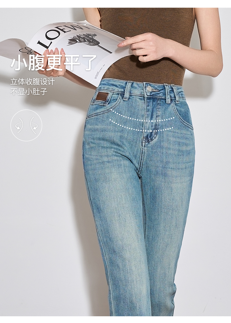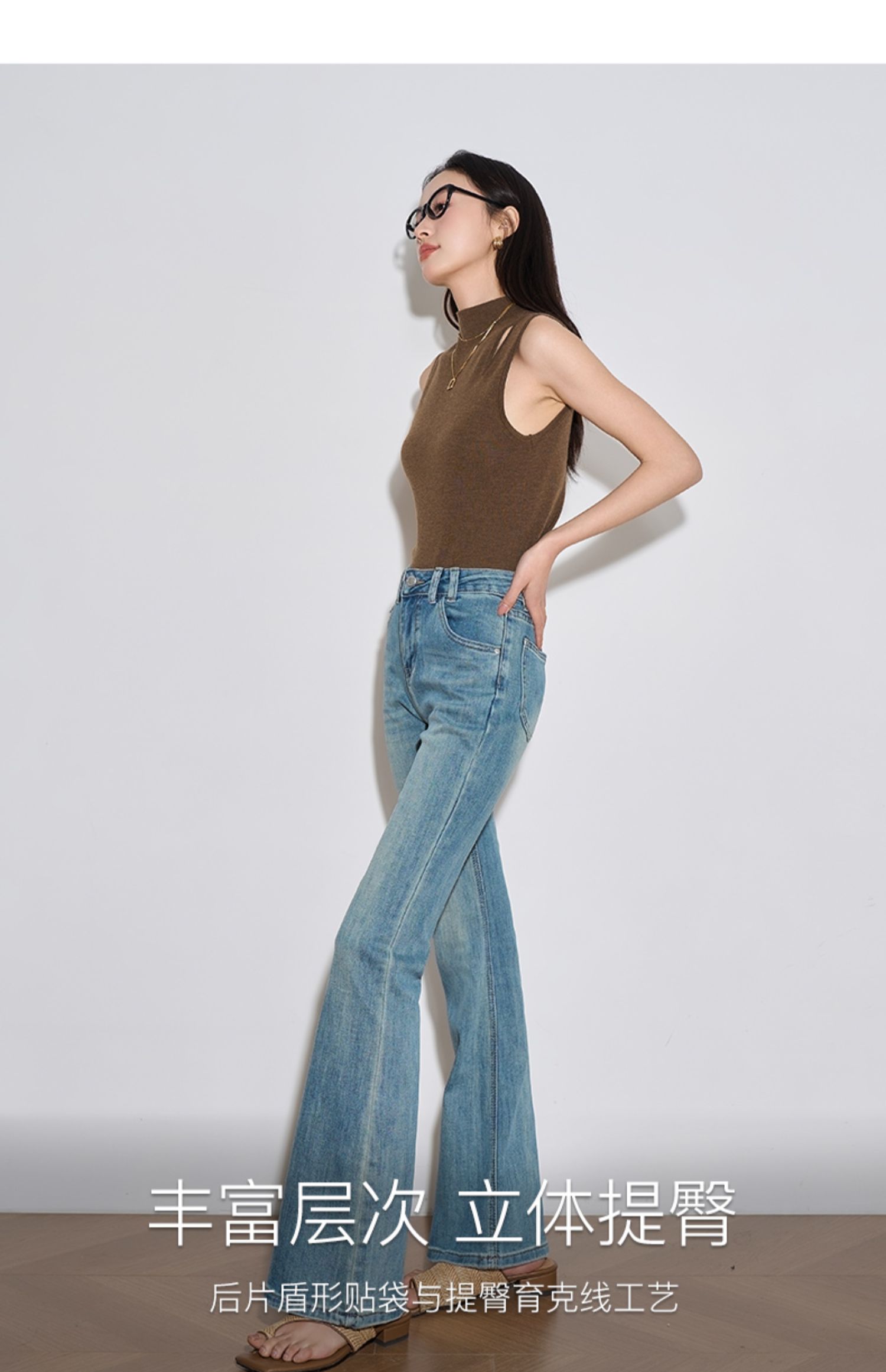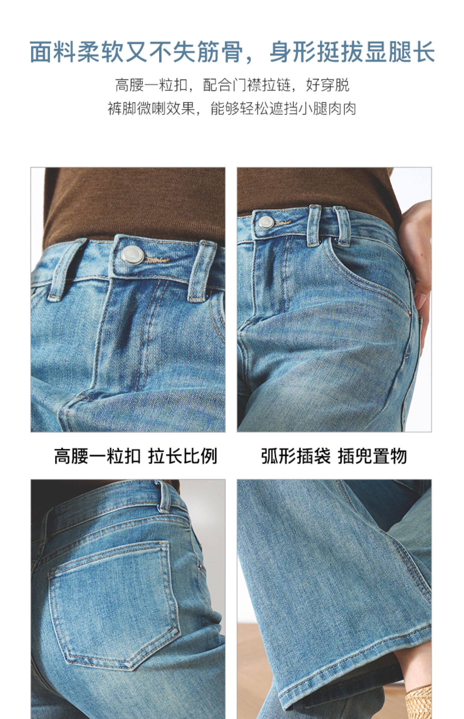 OLrain欧芮儿蓝色牛仔裤女春季2024年新款复古高腰显瘦百搭微喇裤