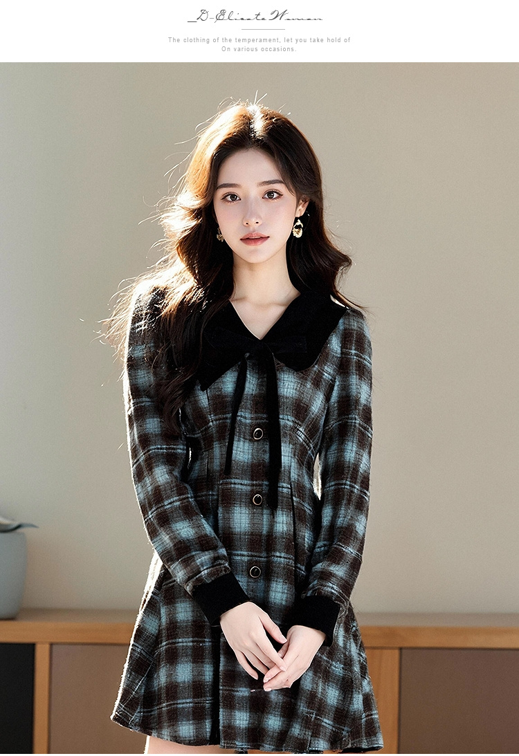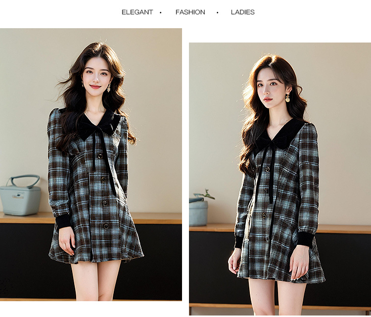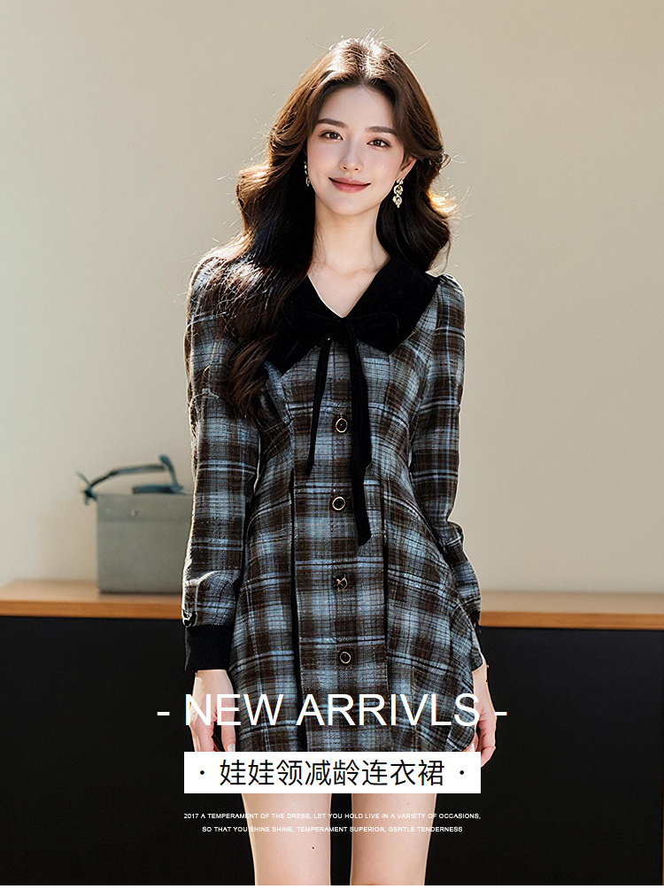 奢姿2025年春季新款大码女装法式娃娃领裙子胖妹妹学院风连衣裙9951857211