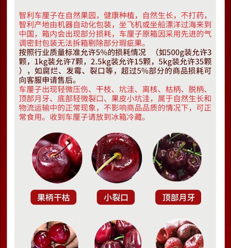【分仓直发包邮】智利进口车厘子