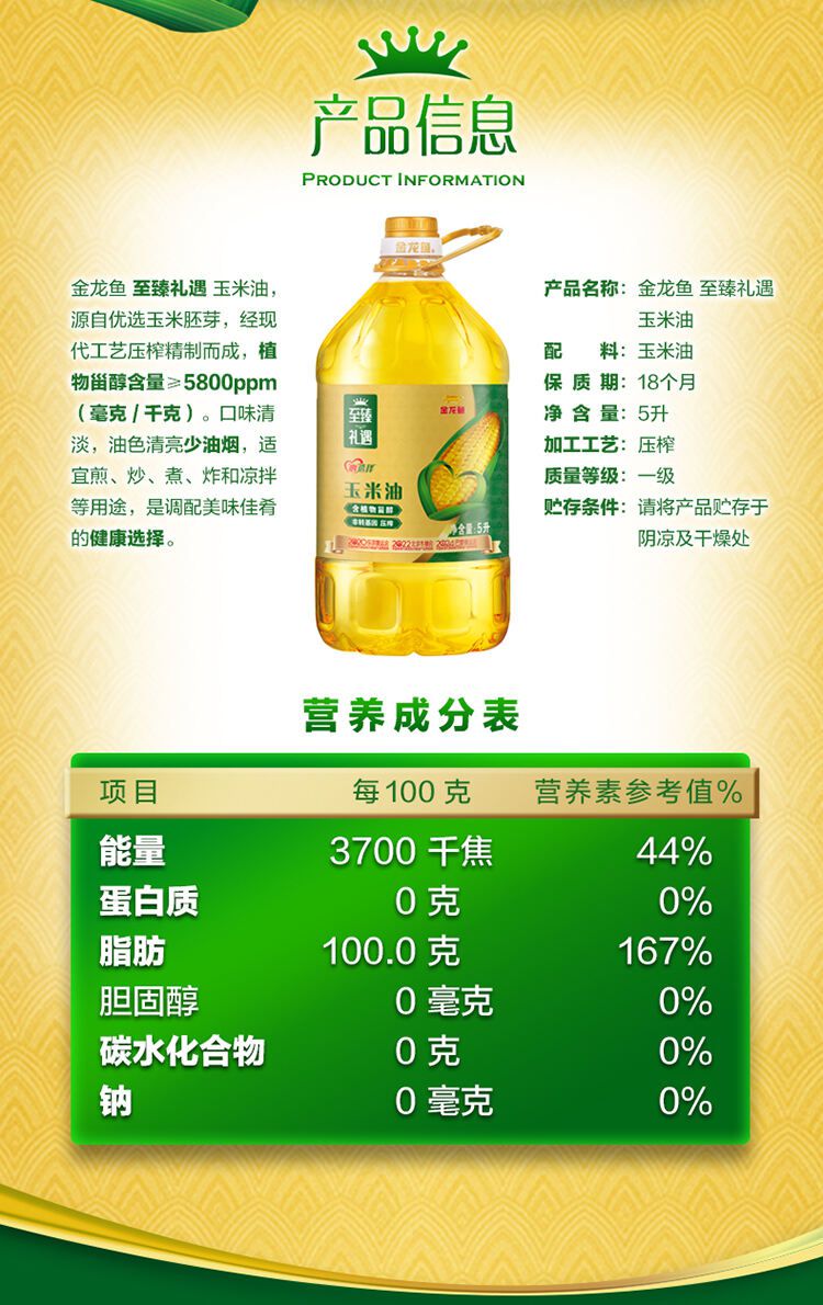 金龙鱼 至臻礼遇玉米油 5L【包邮直发】【XZZ】