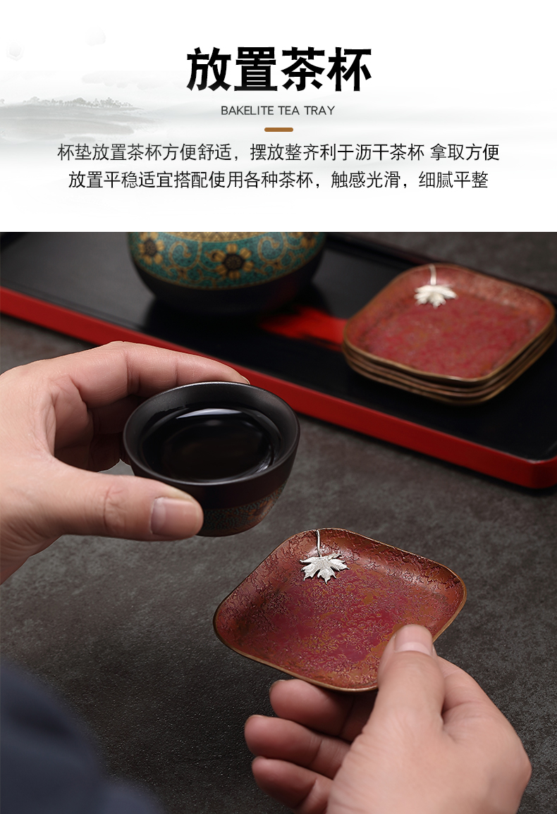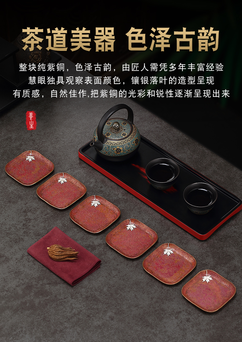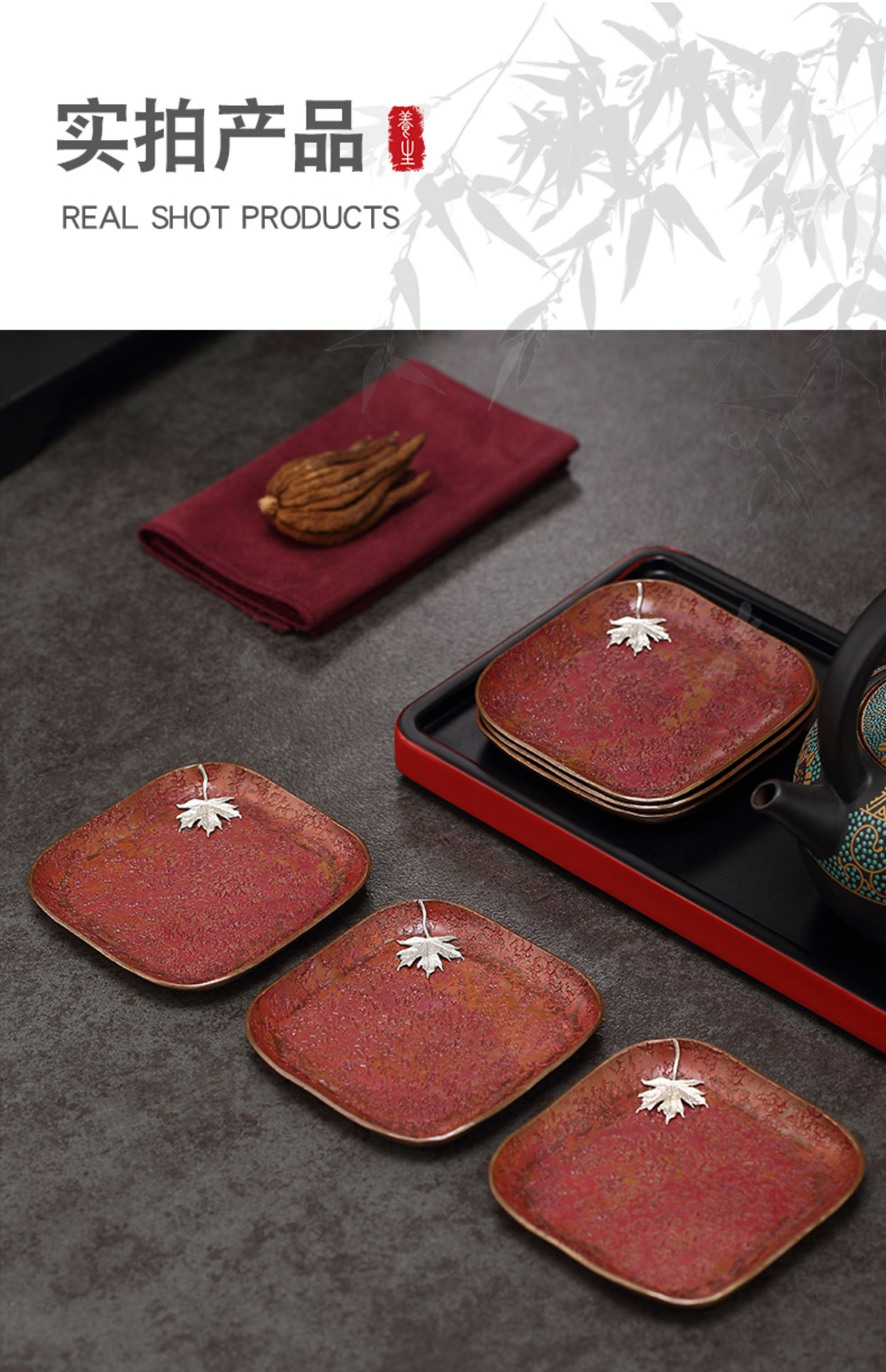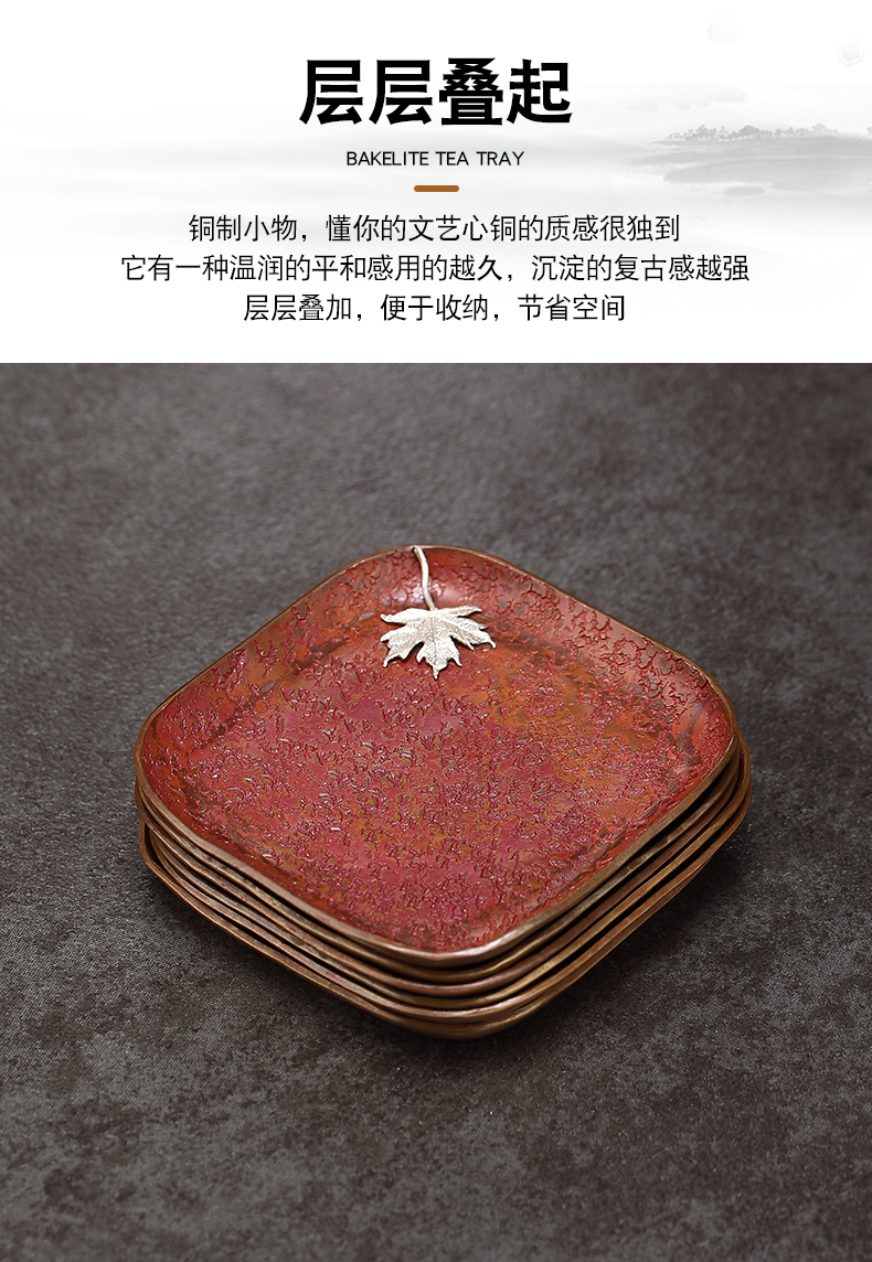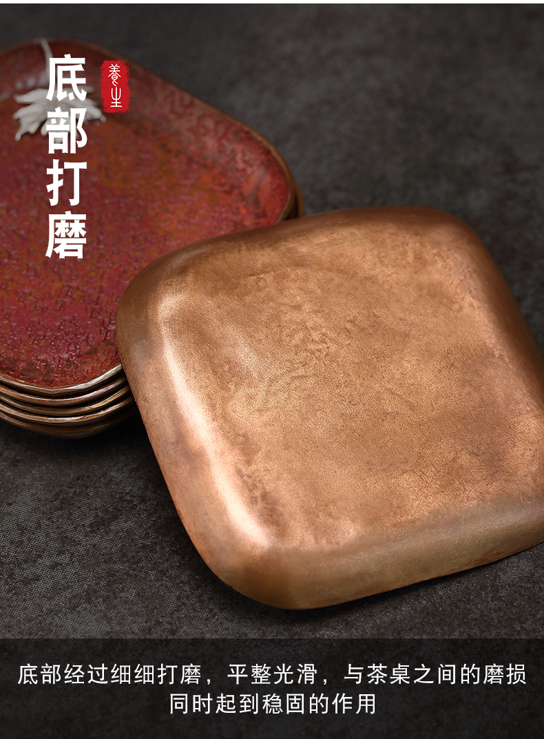 纯铜春华秋实杯托 | 三生有杏杯托 手工紫铜茶杯垫隔热茶托禅意杯托盏托茶具配件轻奢高档