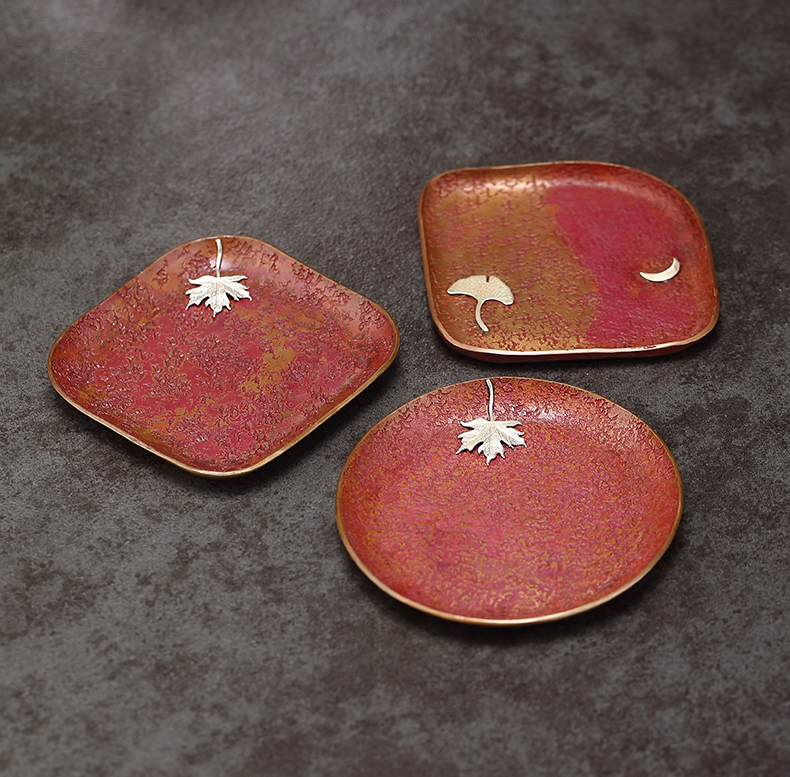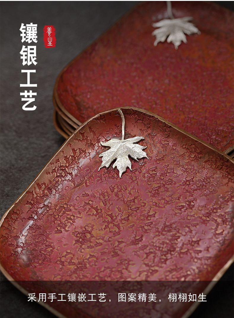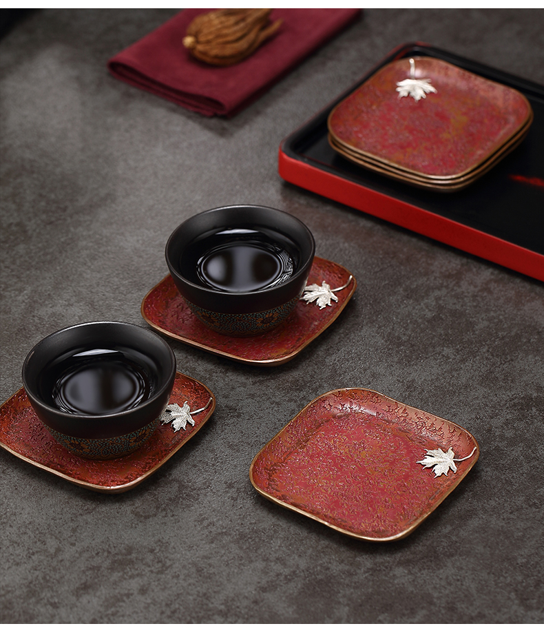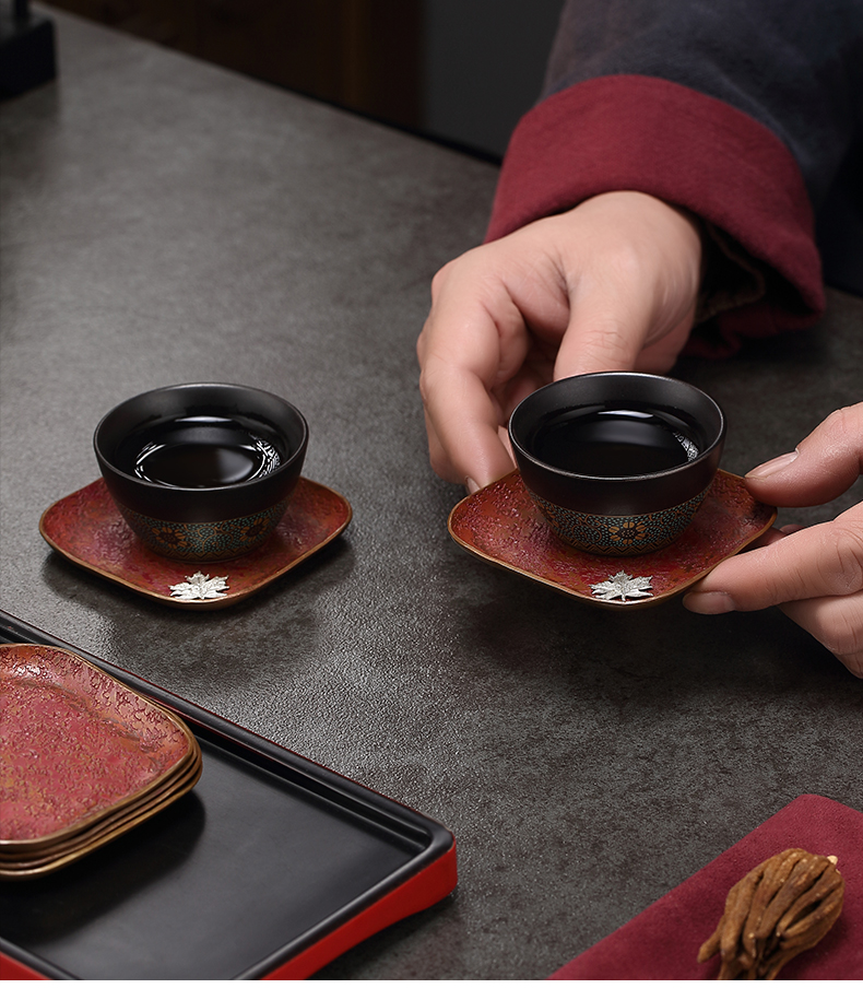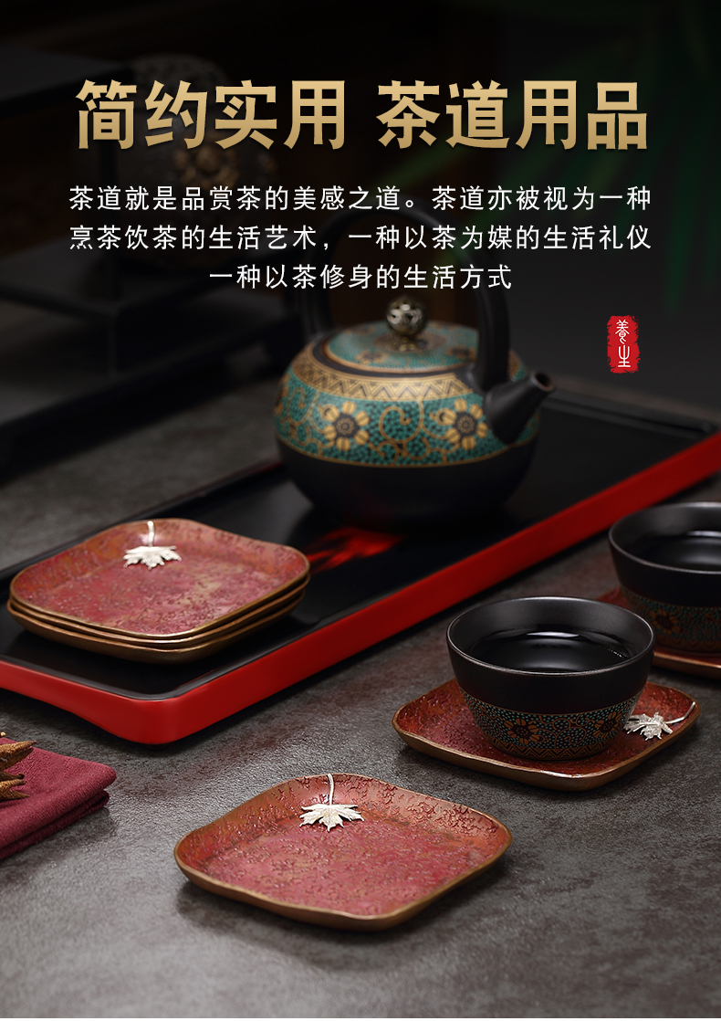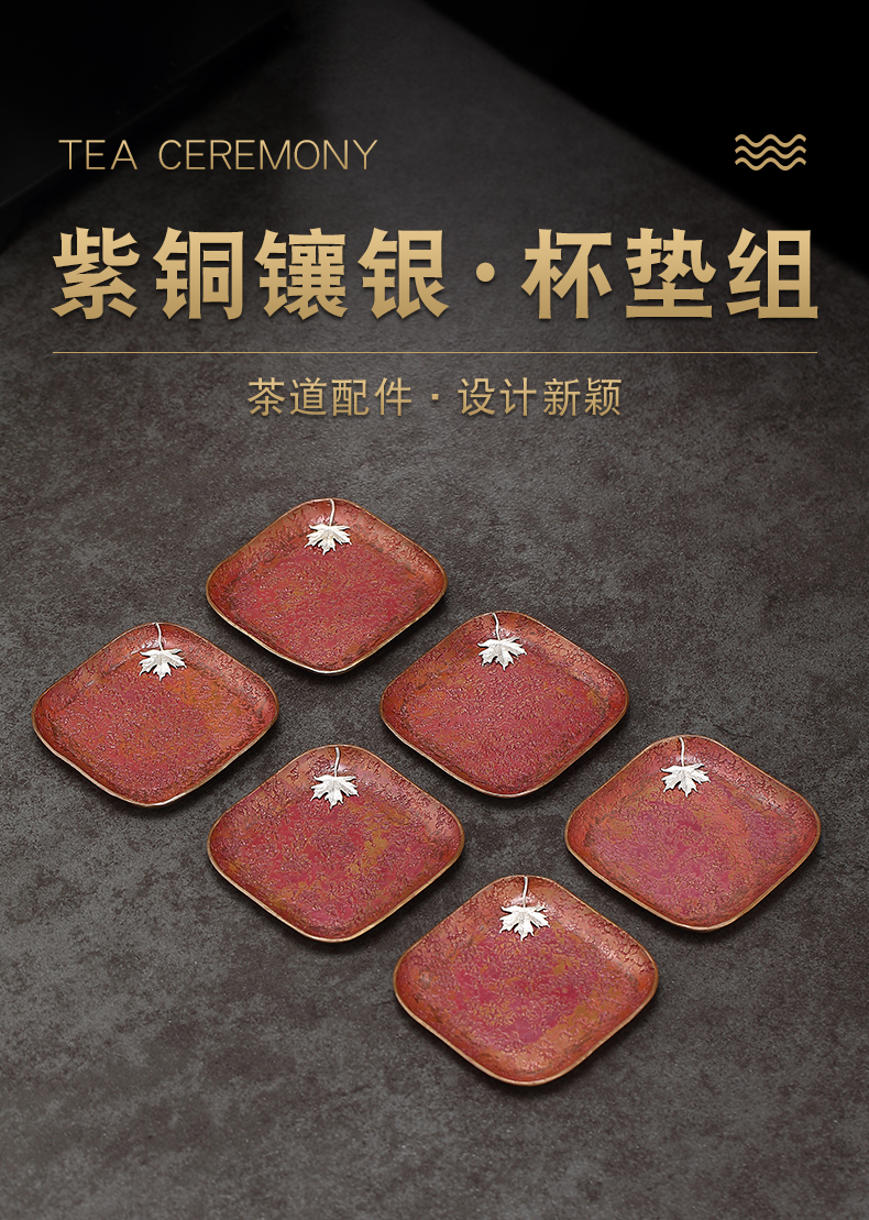 纯铜春华秋实杯托 | 三生有杏杯托 手工紫铜茶杯垫隔热茶托禅意杯托盏托茶具配件轻奢高档