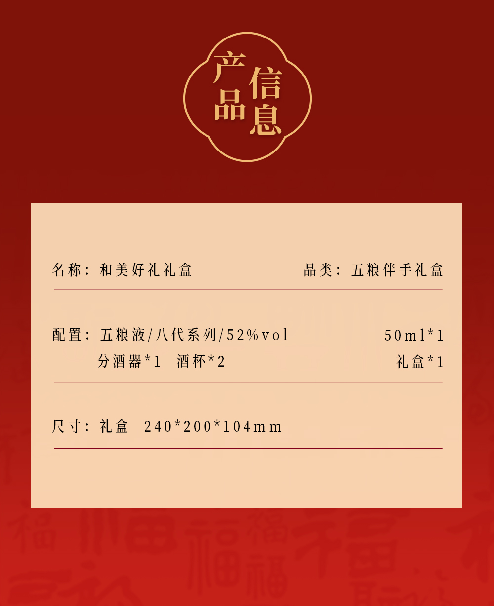 五粮液·八代系列·和美好礼礼盒(内含第八代五粮液 52度 50mLx1瓶;酒具x1套)*1盒