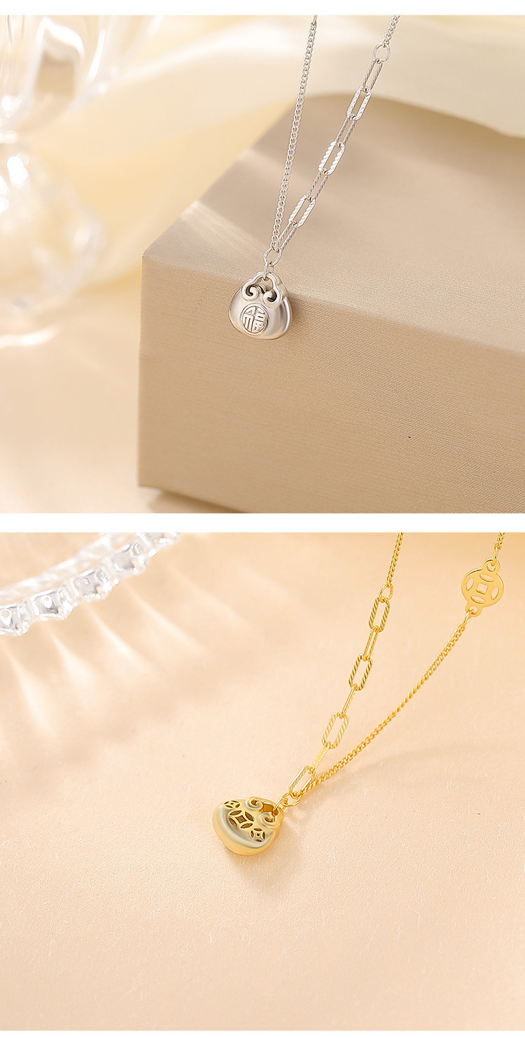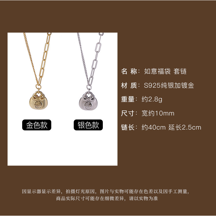 【如意福袋】S925纯银镀金福字项链套链【CW-XL00503】