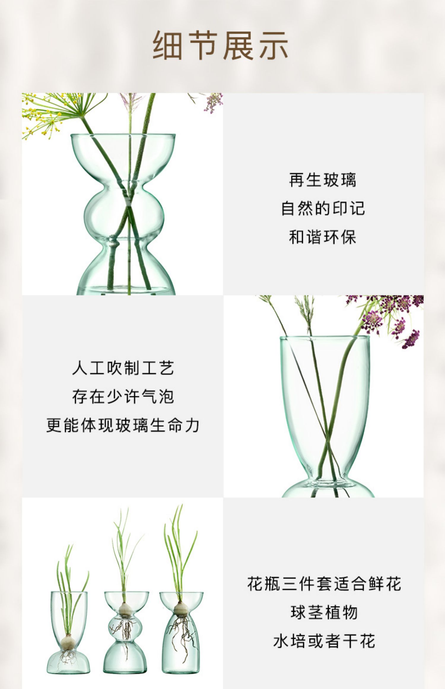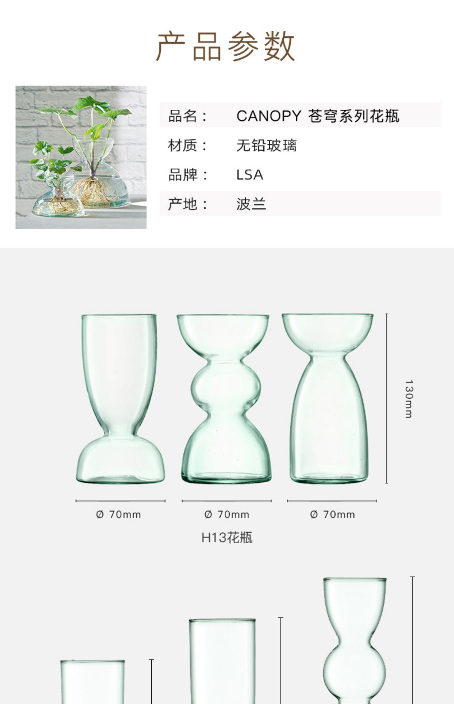 LSA Canopy 伊甸园合作纯手工玻璃花瓶三件套水培摆件客厅插花器