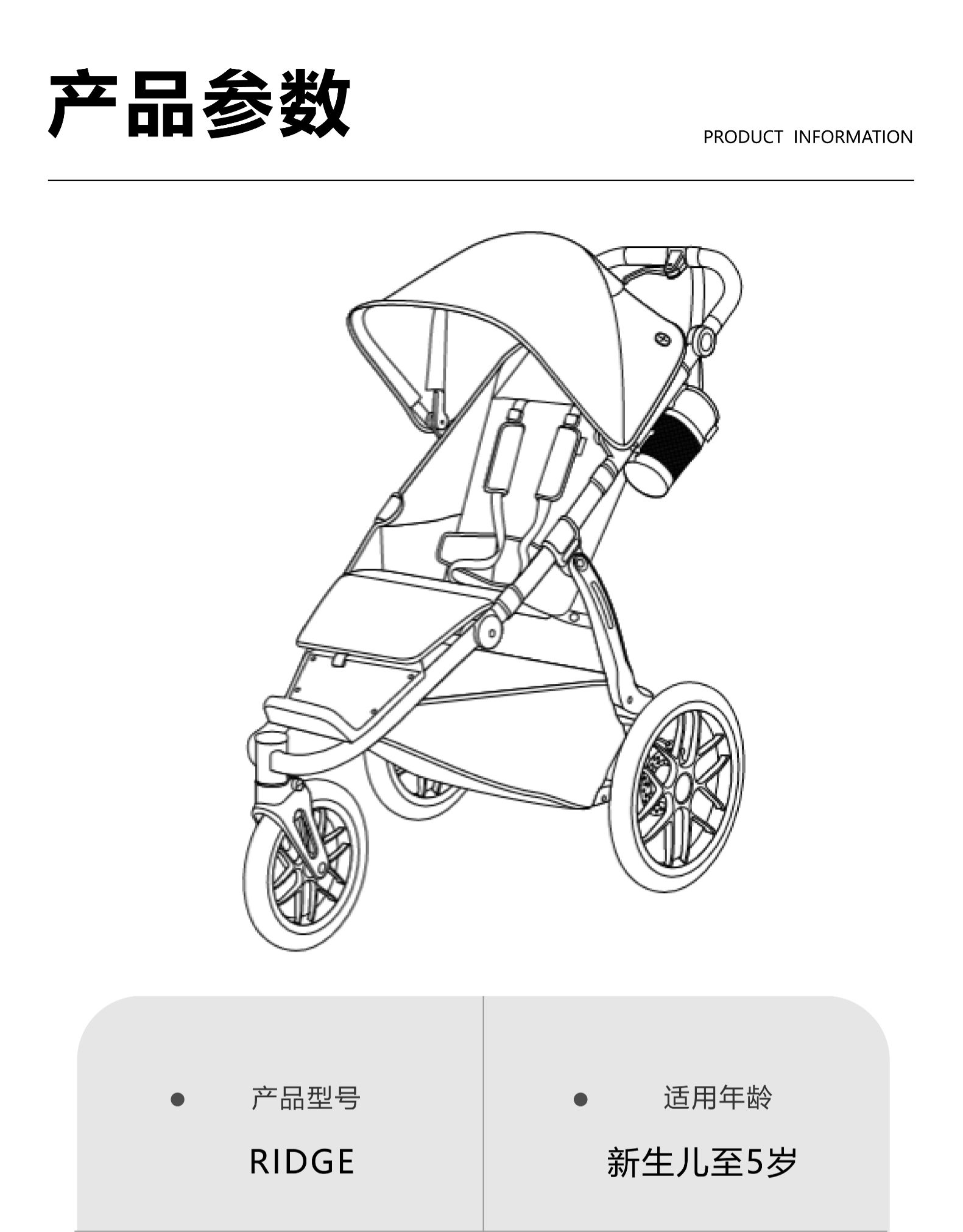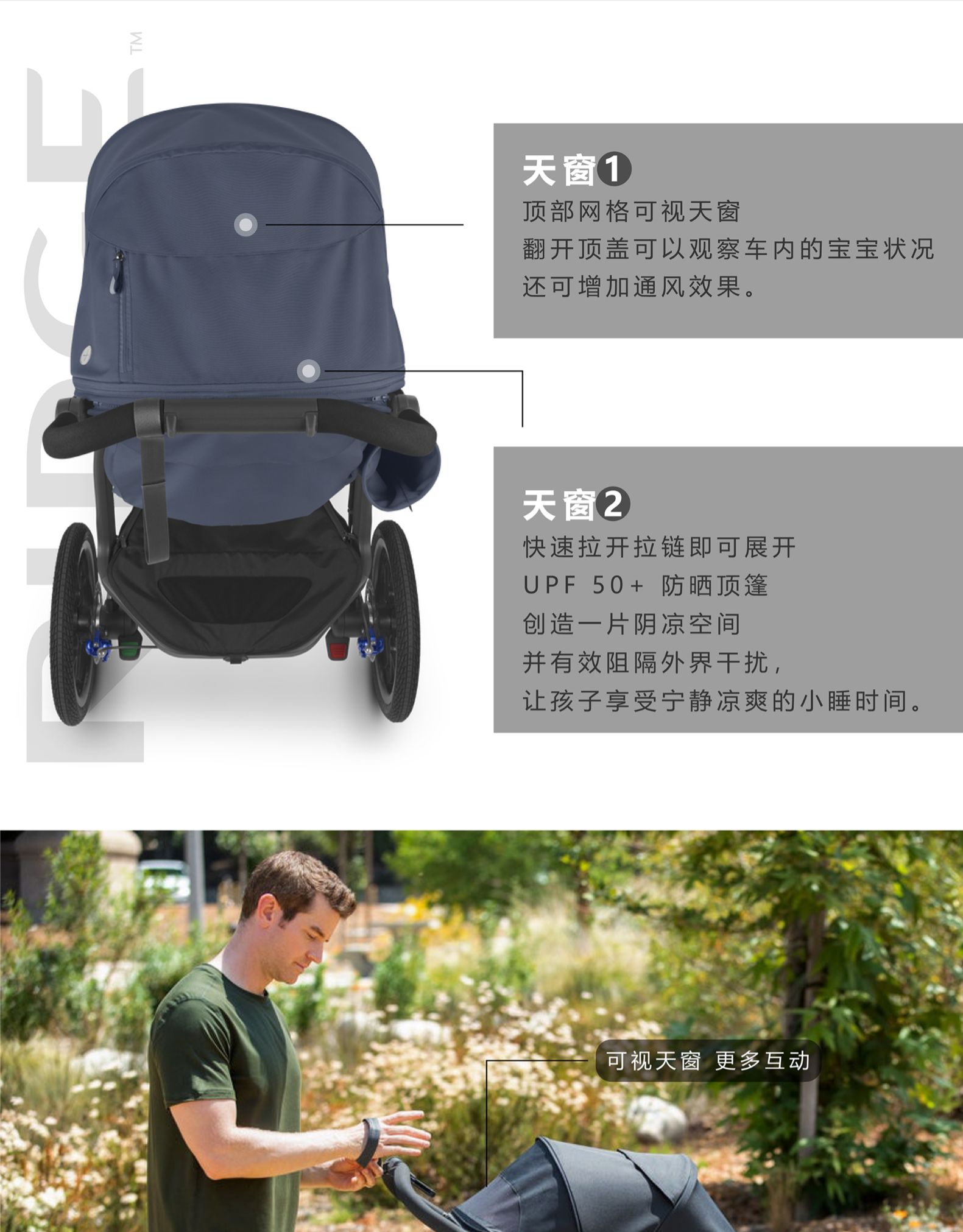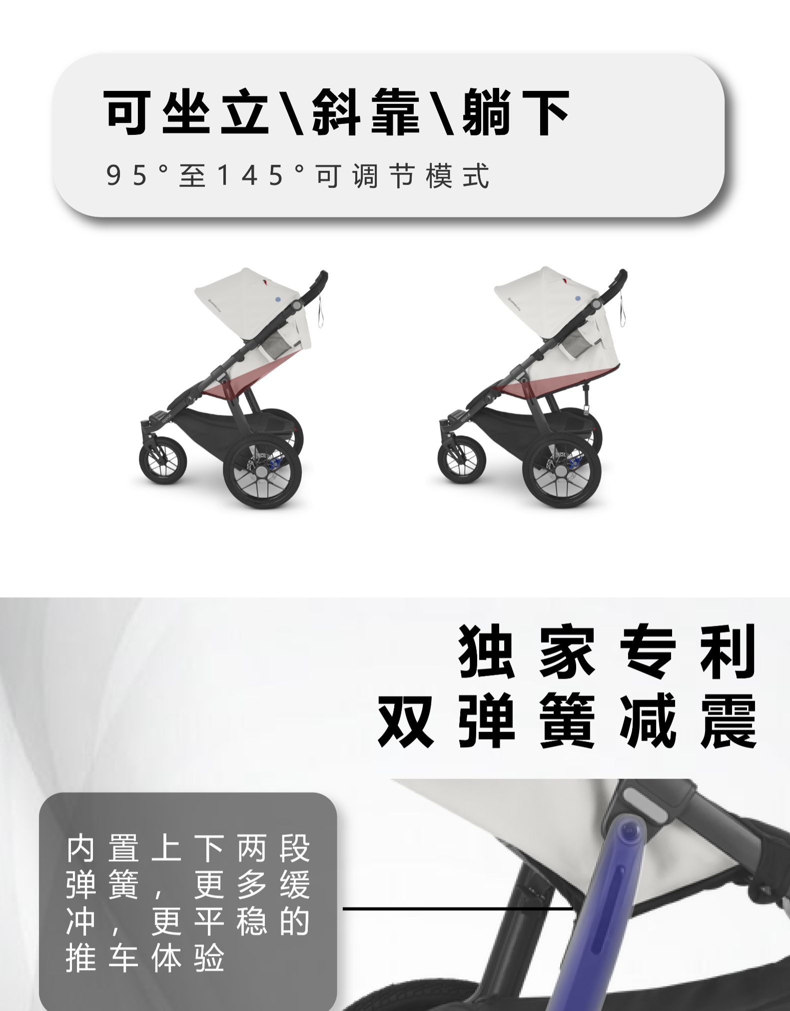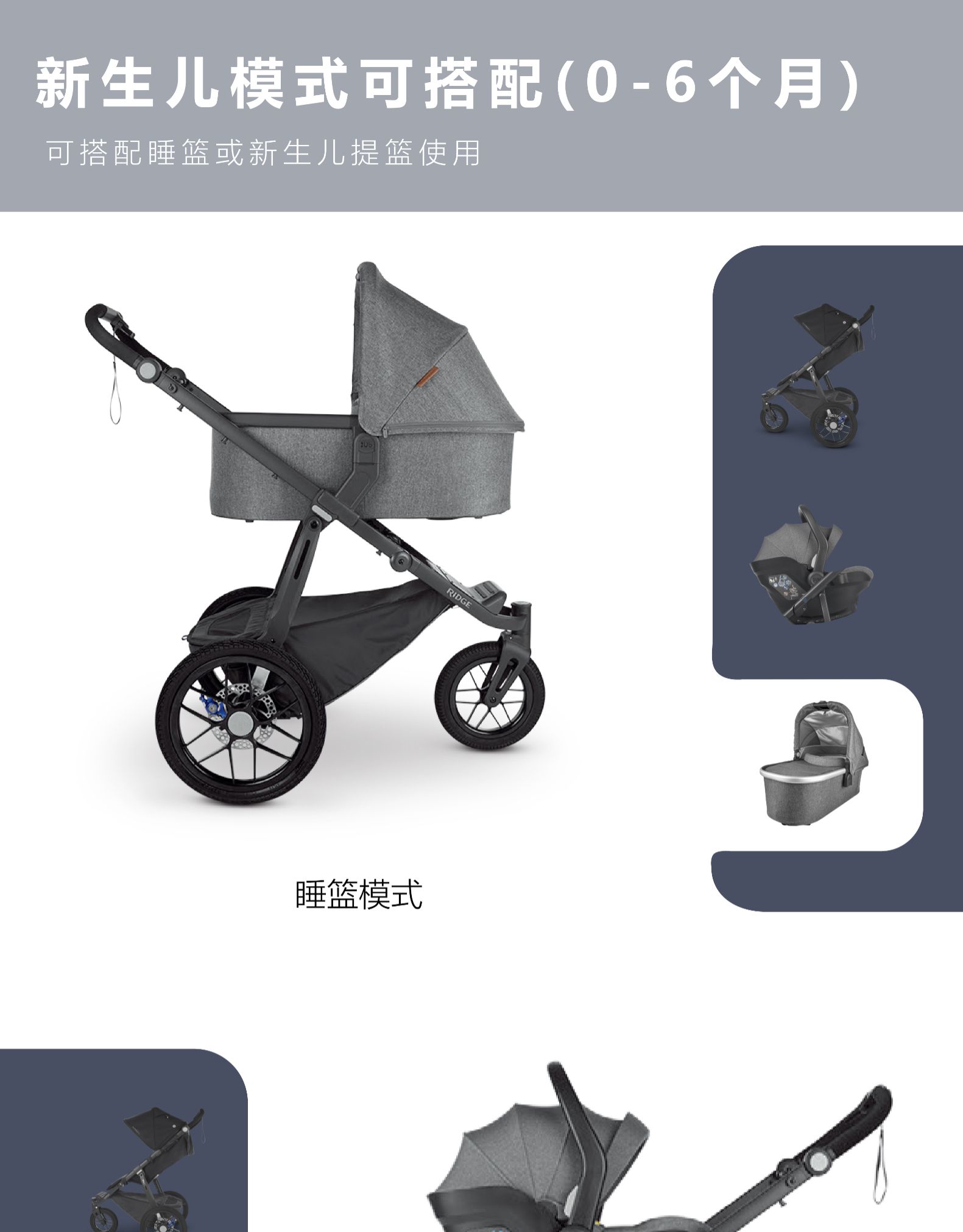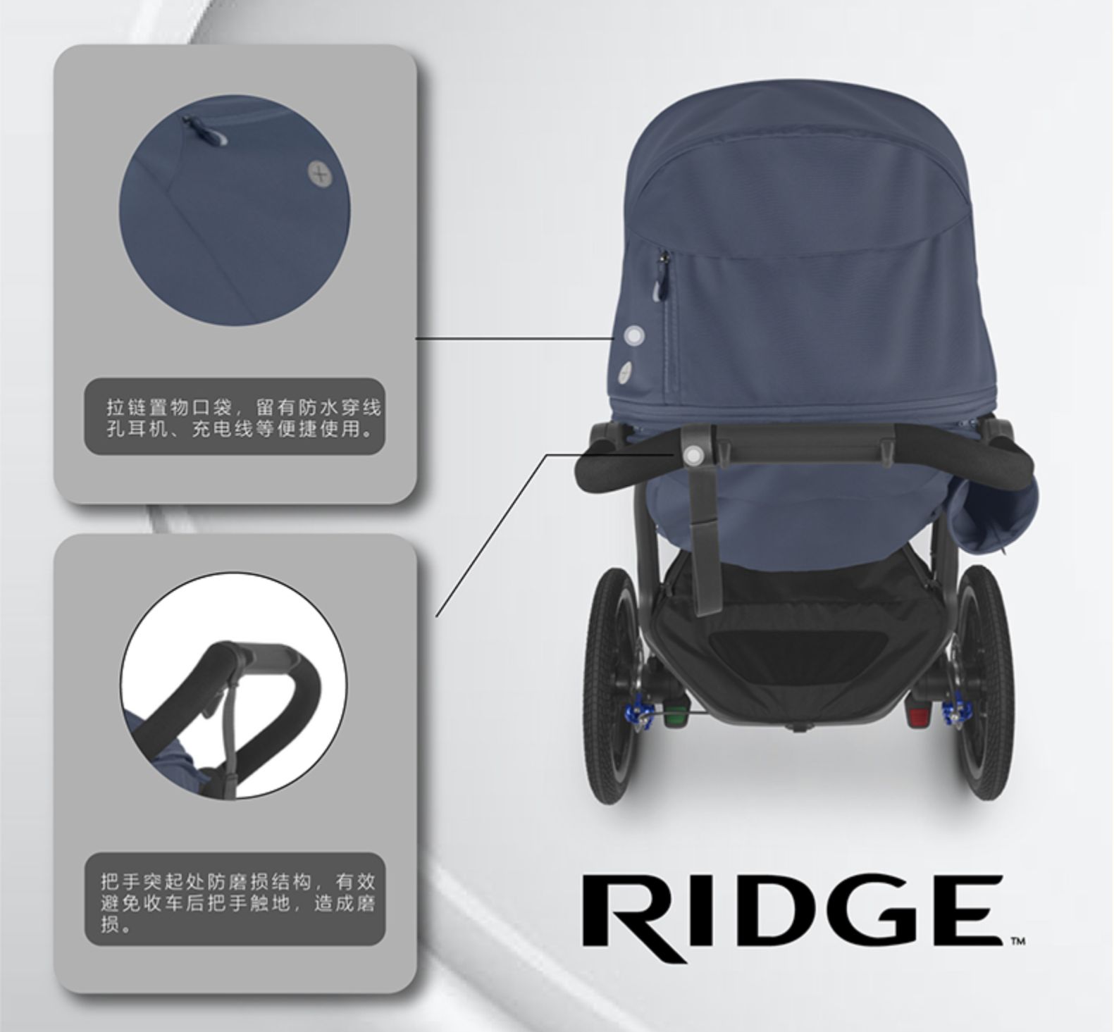 美国Uppababy RIDGE高景观全地型跑步婴儿车运动型三轮儿童露营车1-5岁