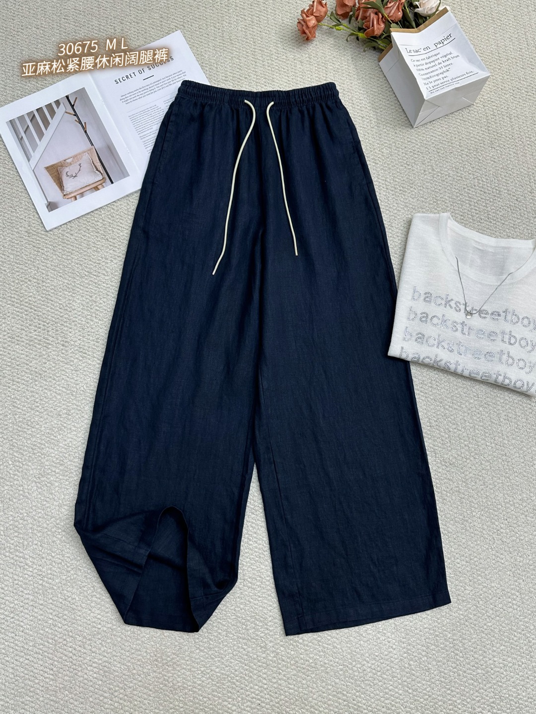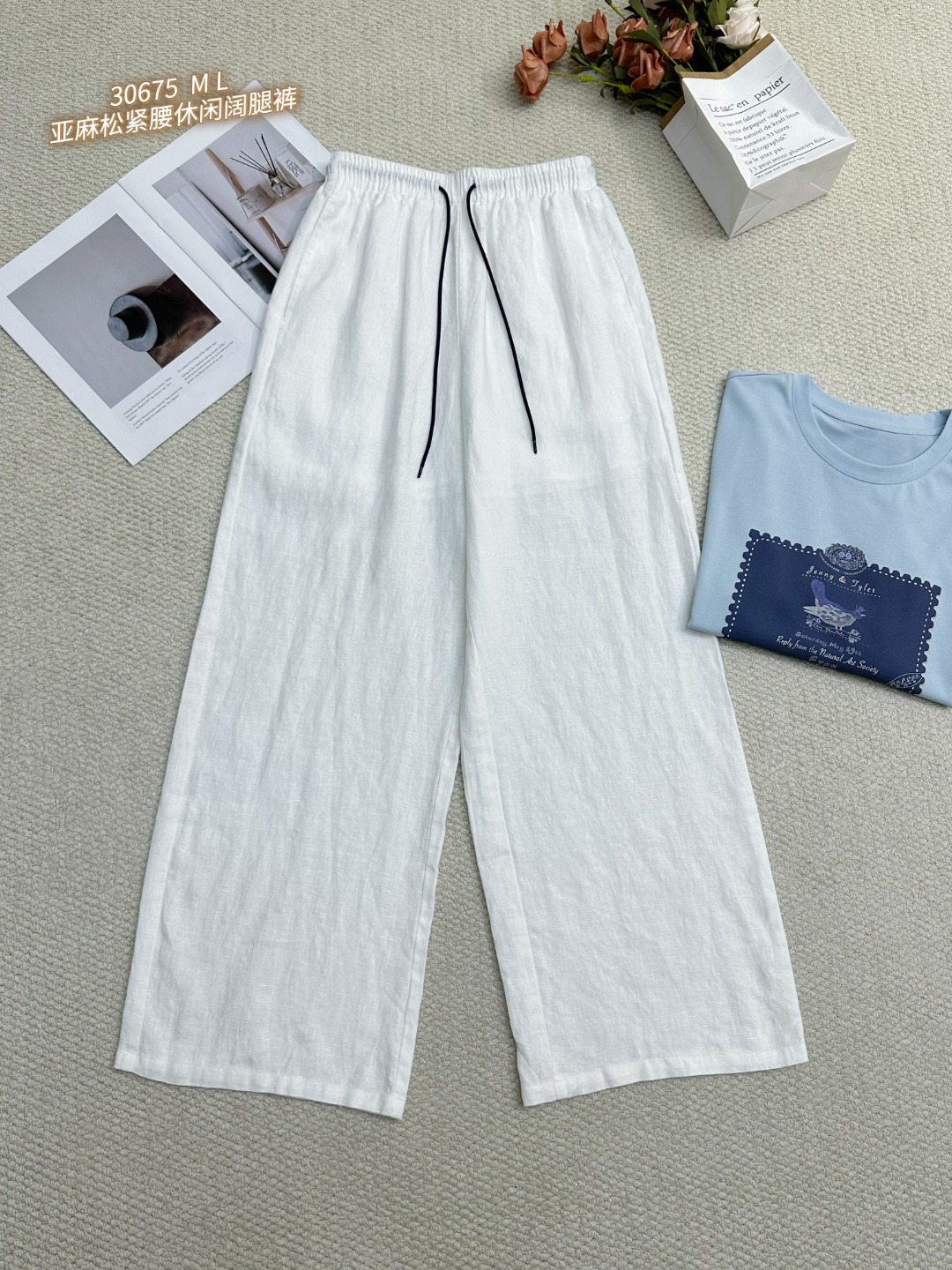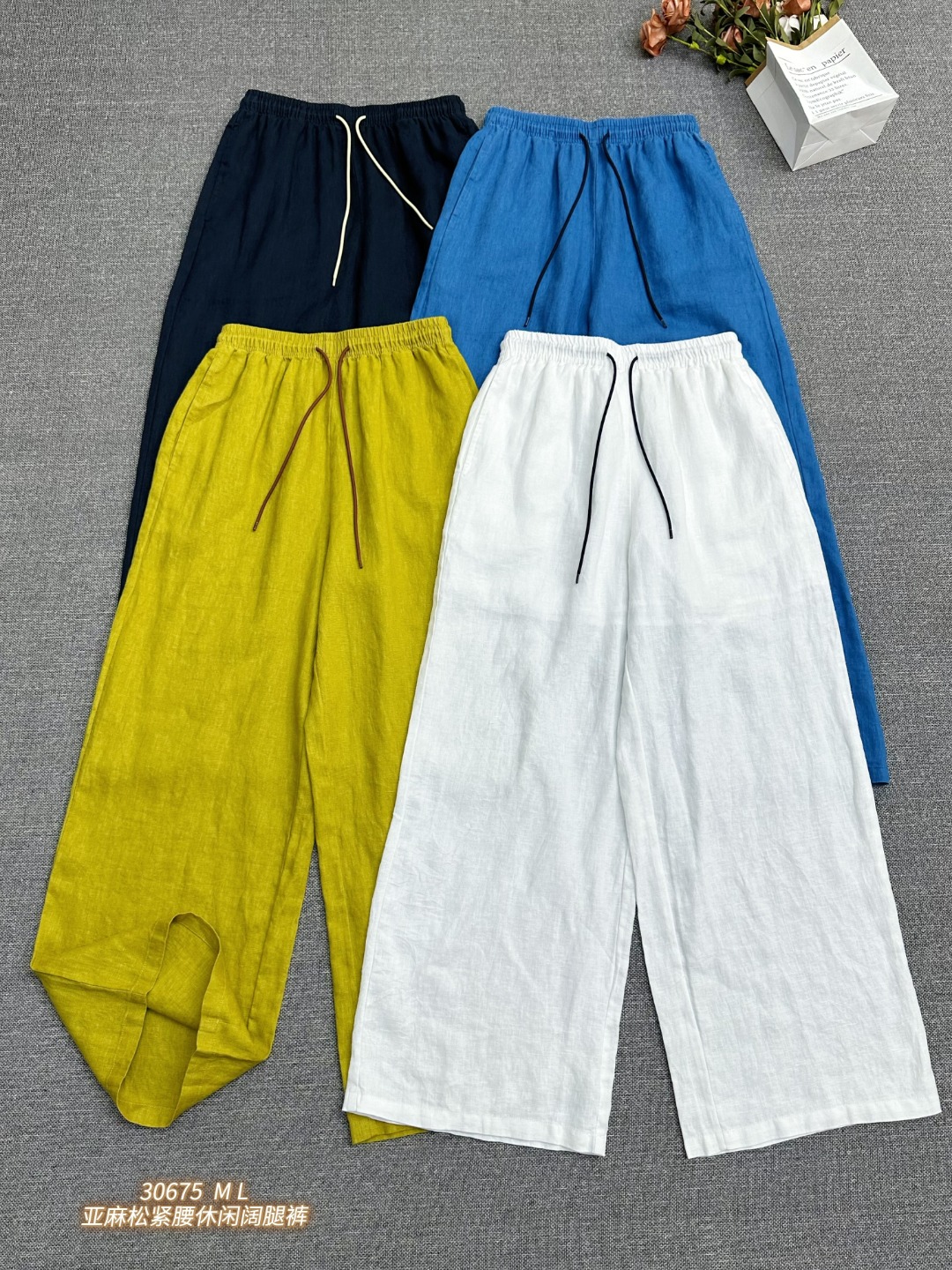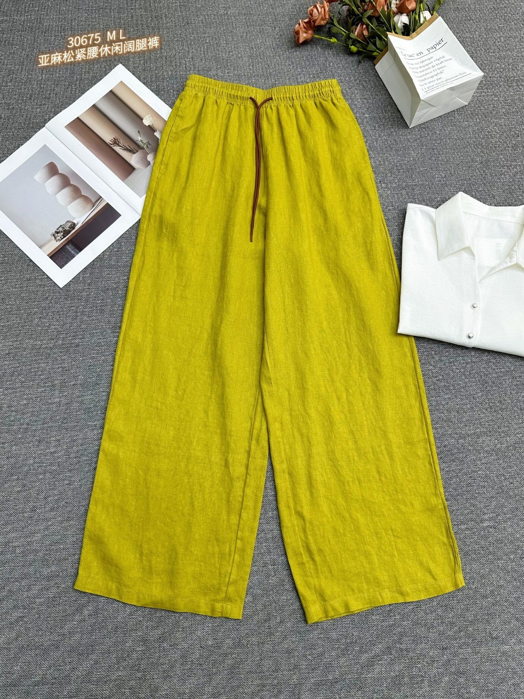30675 亚麻松紧腰休闲阔腿裤 轻薄透气+吸湿排汗,高温天也能保持肌肤干爽!