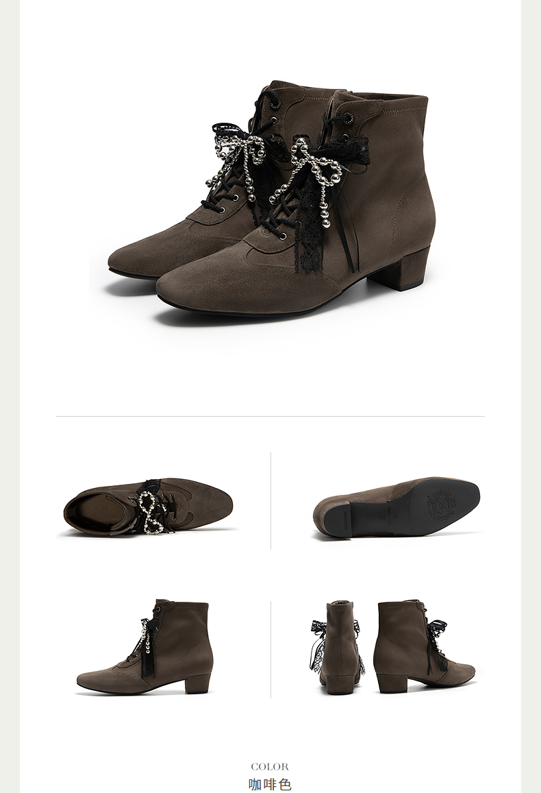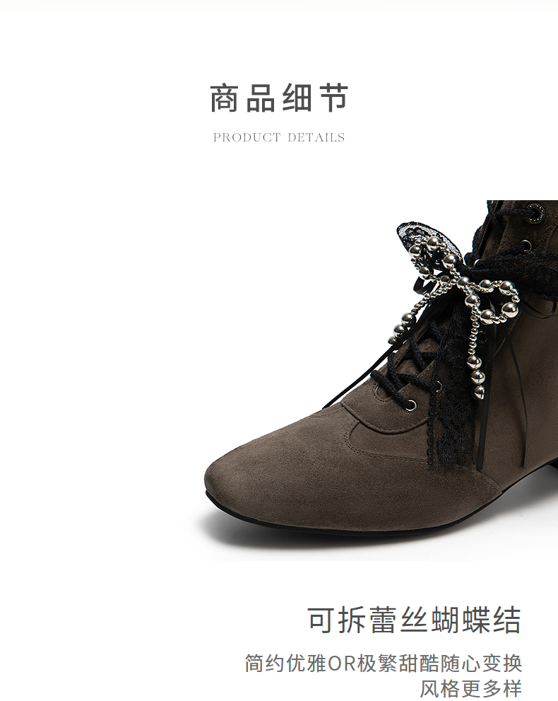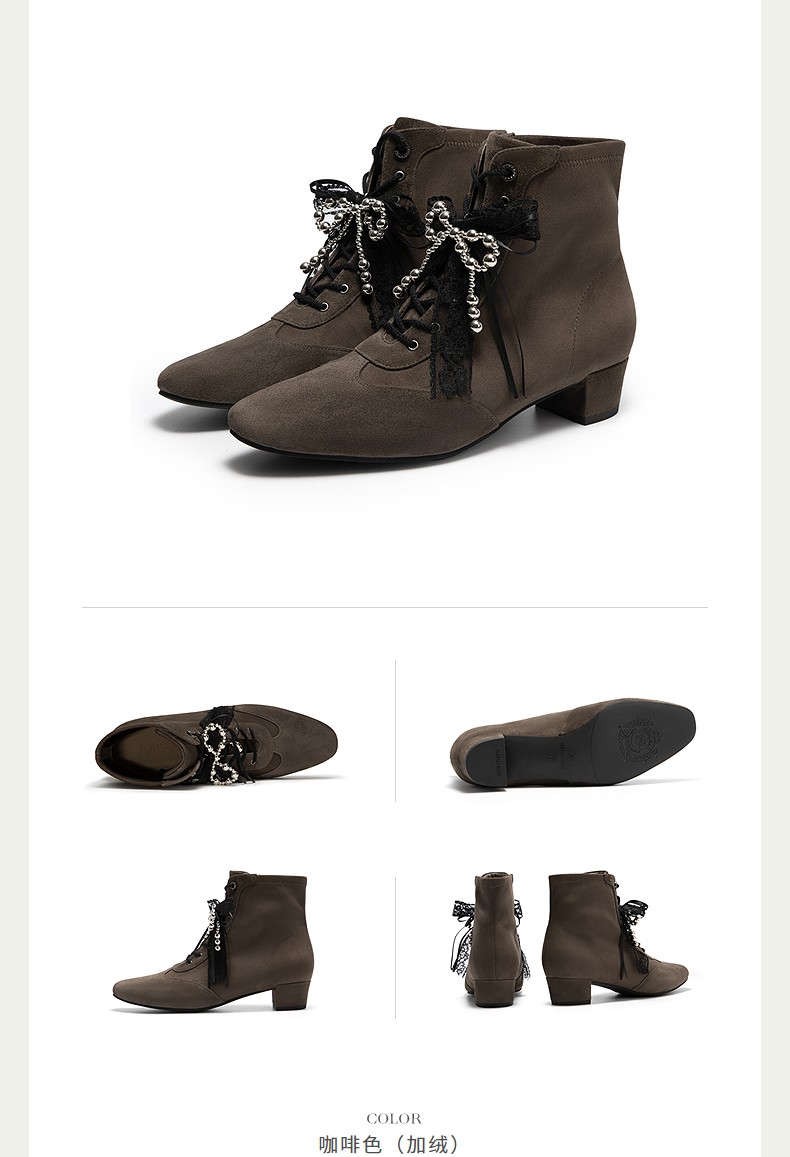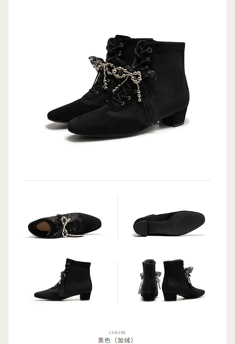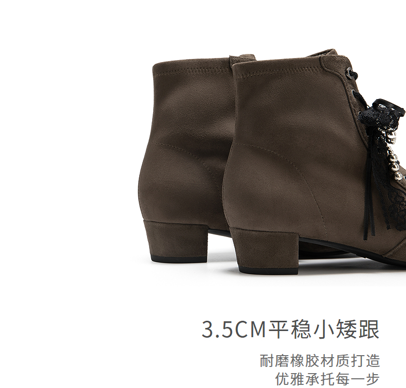 natursun英伦风时装靴女粗跟复古短靴显高时尚瘦瘦靴N25629103