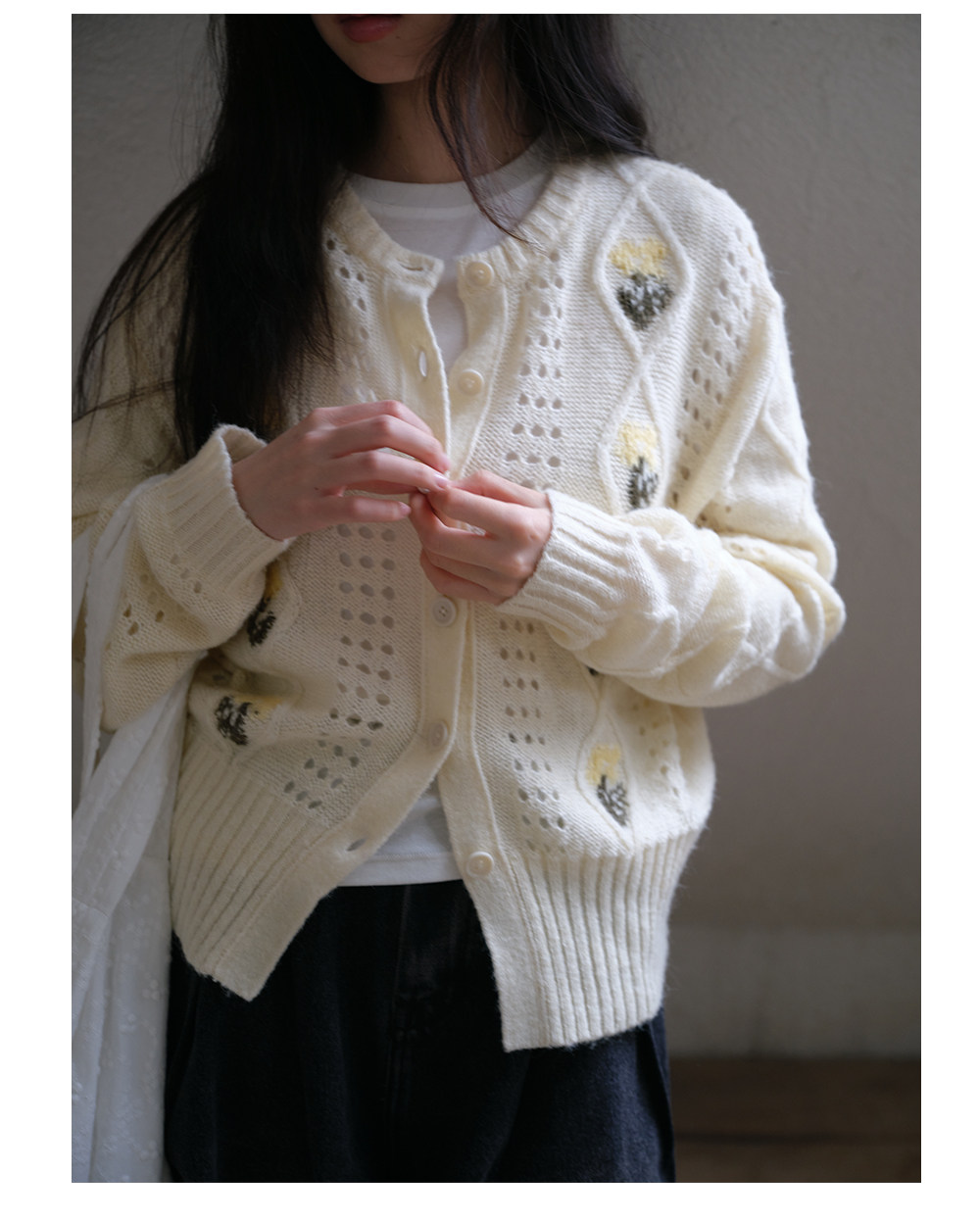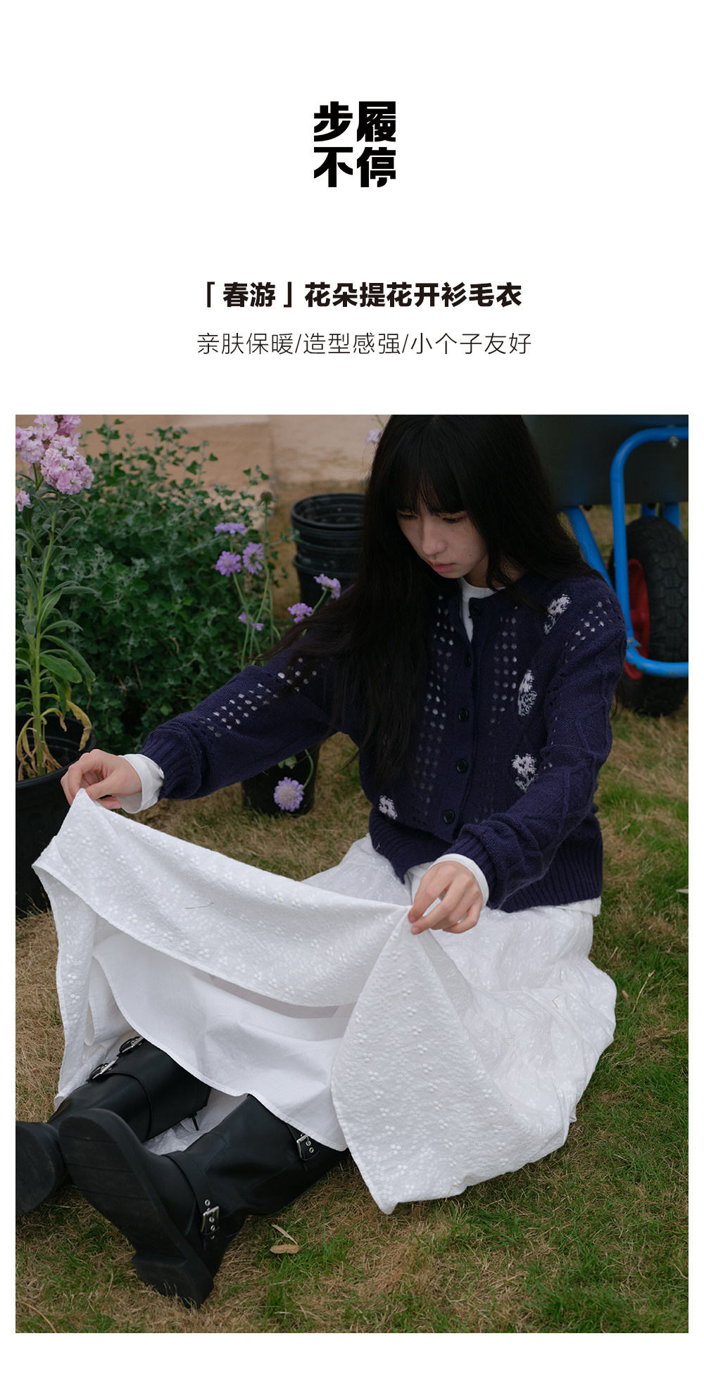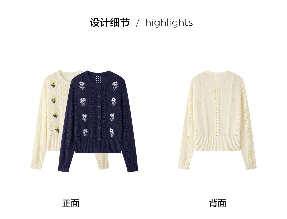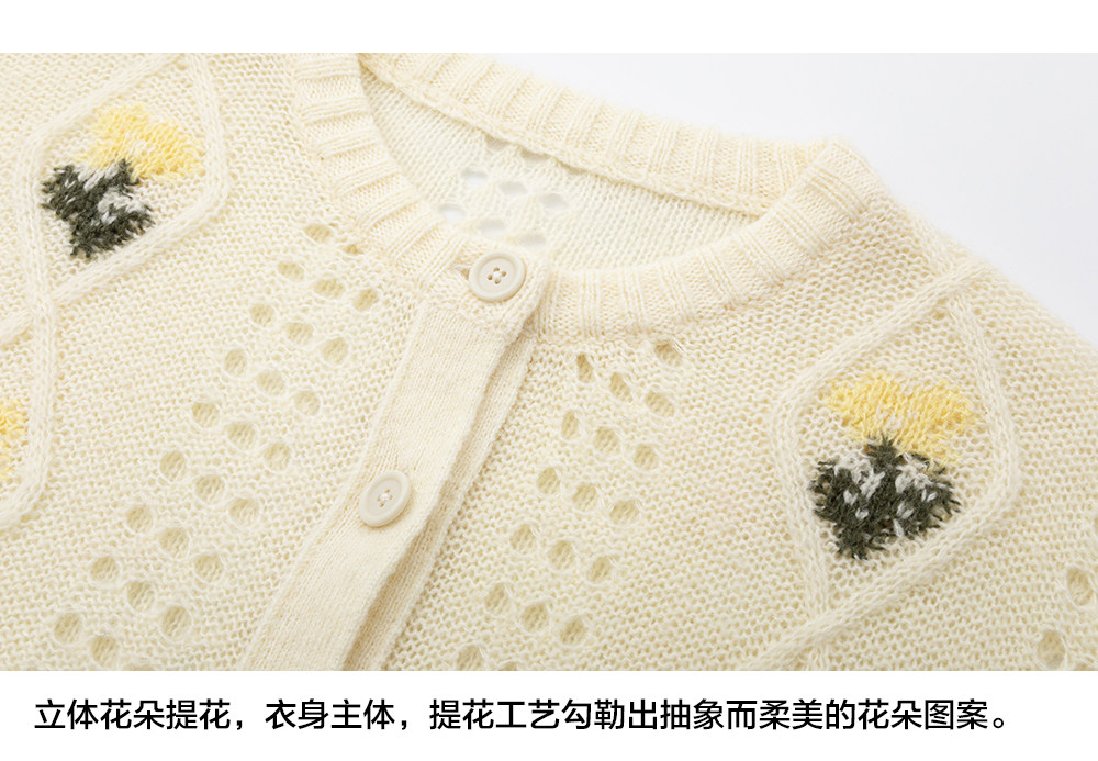 步履不停/6A13330C/花朵提花开衫毛衣