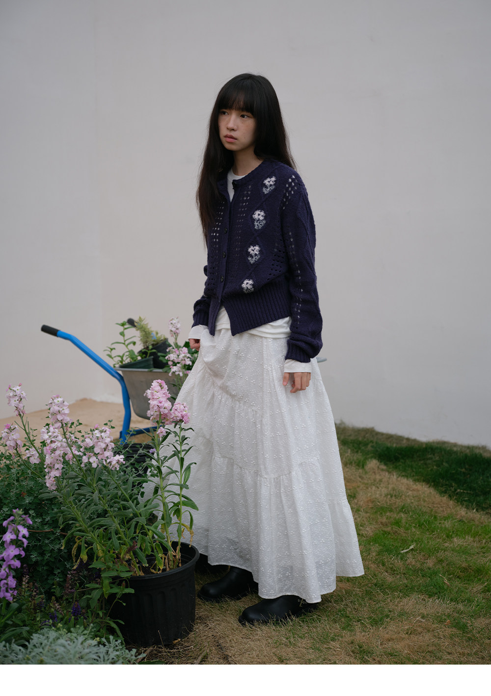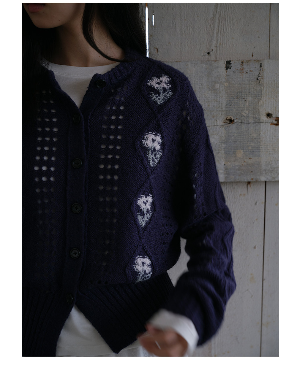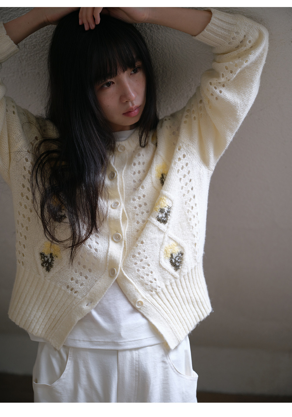 步履不停/6A13330C/花朵提花开衫毛衣