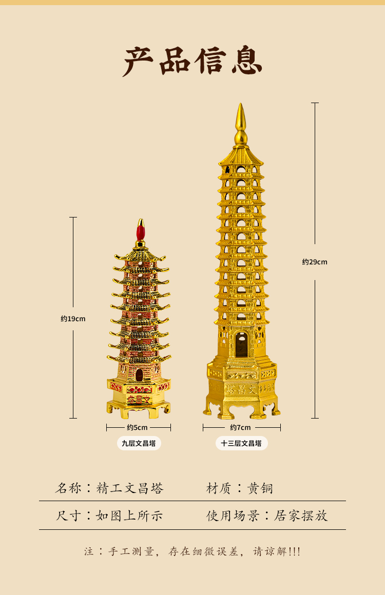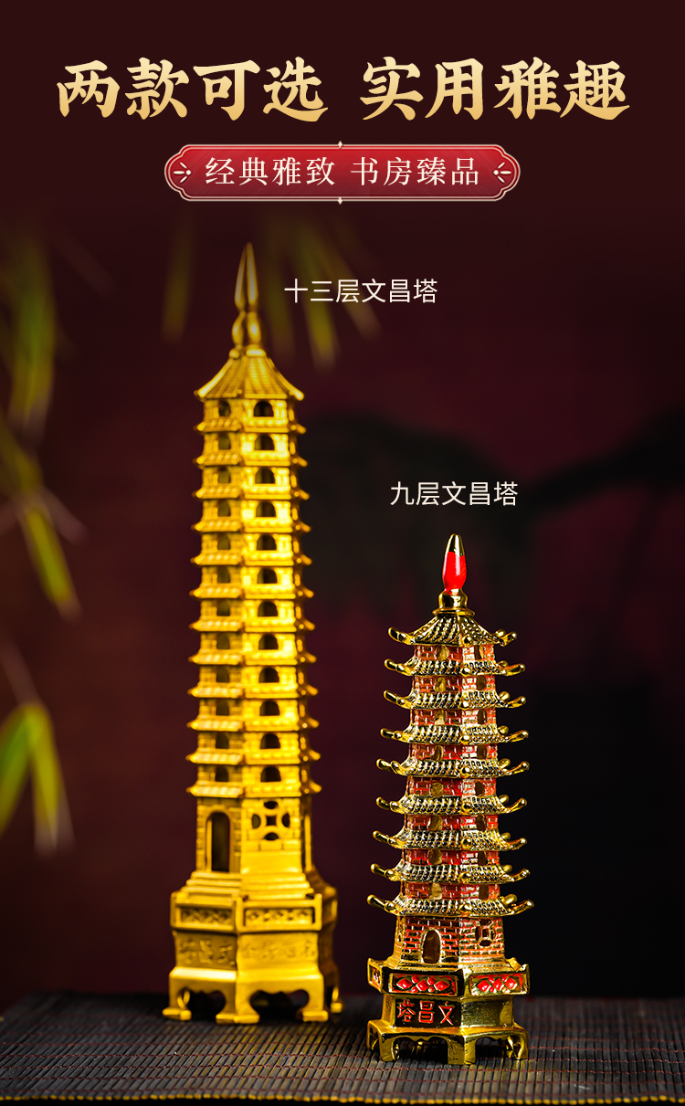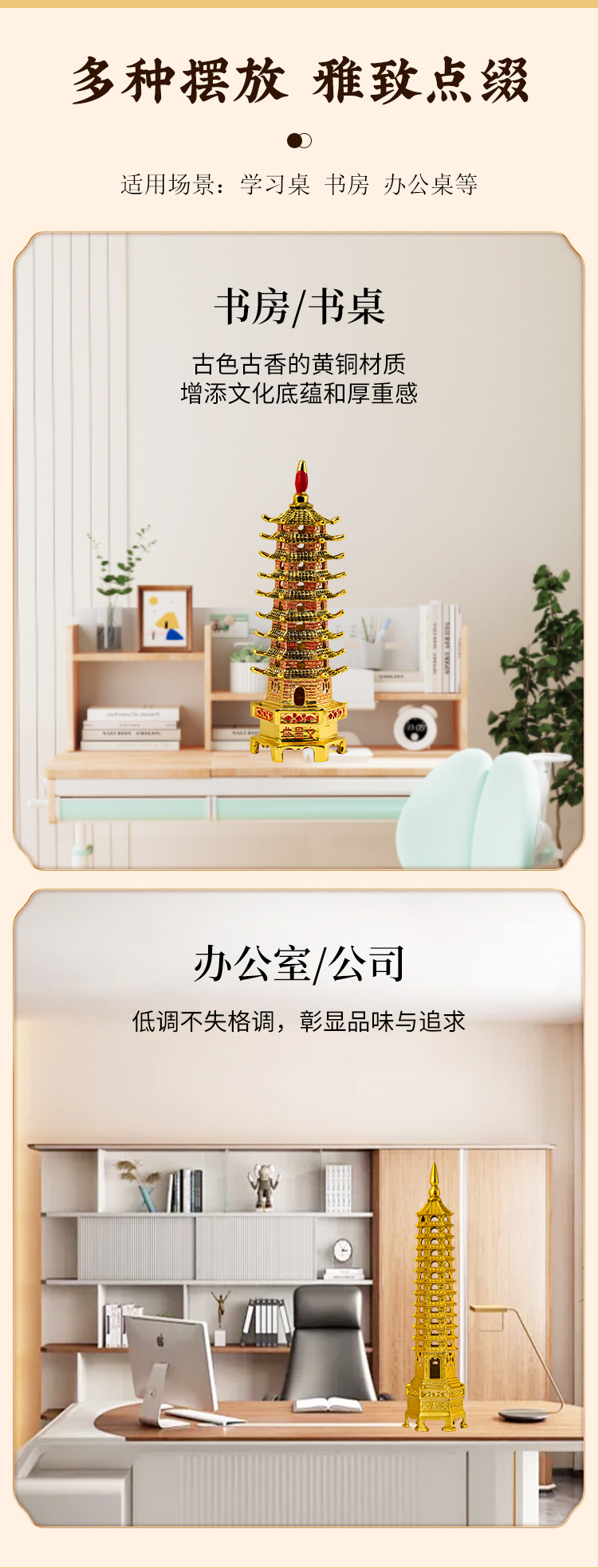 文昌塔摆件九层 十三层黄铜金铸造塔办公室家居书桌摆件