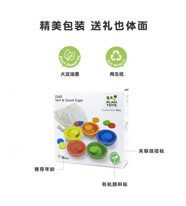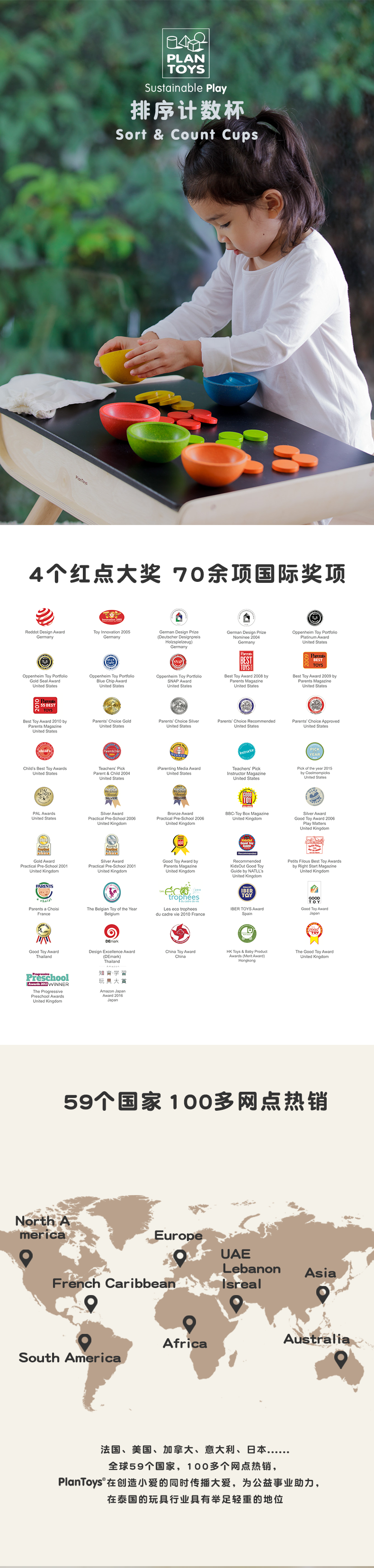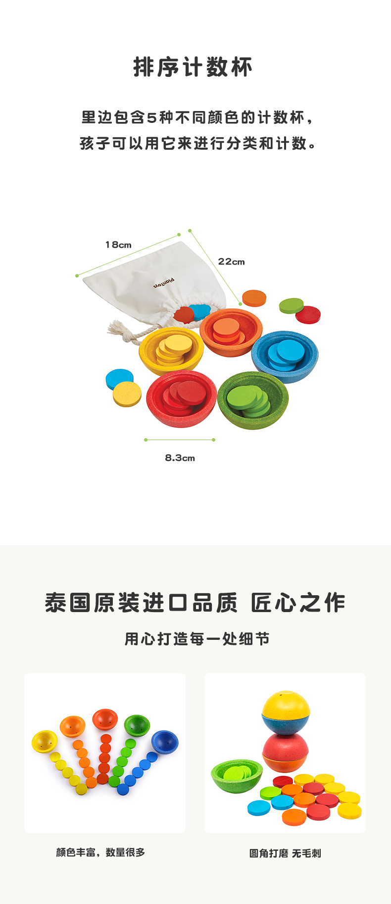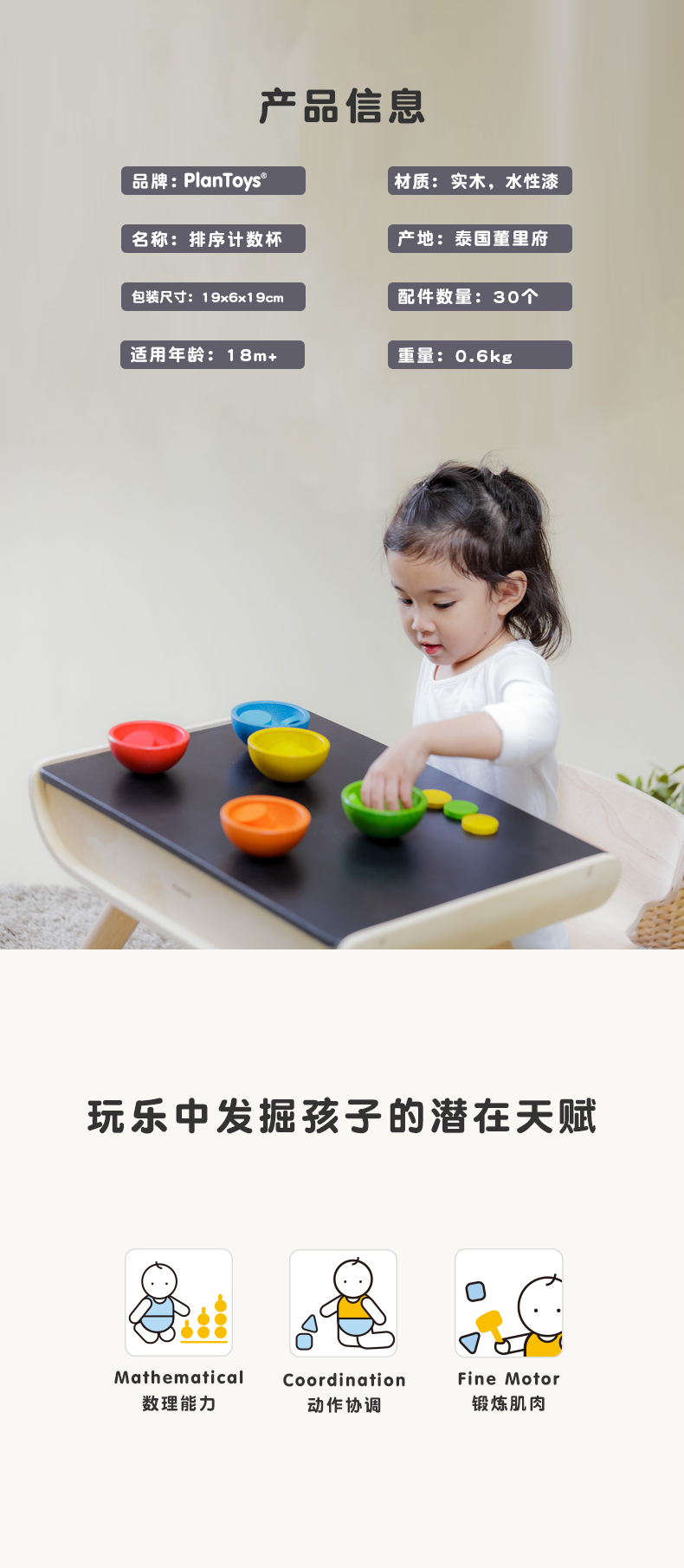 18月+ | 泰国Plantoys 排序计数杯 颜色分类排序 数学计数游戏宝宝早教玩具 18M+