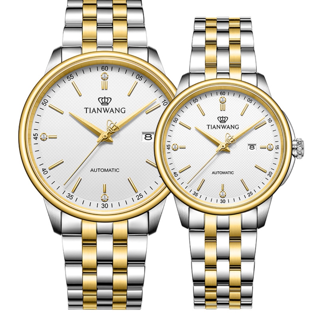 天王表恒隽系列间金情侣机械表