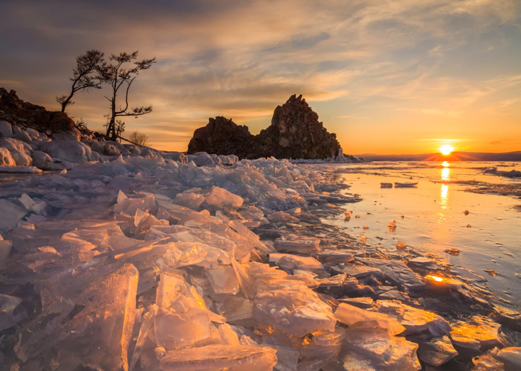 拍摄主题:酒店早餐后,乘坐俄式越野车前往位于奥利洪岛南端的小海,欣赏与北线截然不同的湖岸风光。您可以一整天流连在贝加尔湖梦幻蓝冰世界中,并尽情拍摄冰裂、气泡冰、冰柱以及冰乳洞等奇特景观,傍晚返回村庄拍摄冰山落霞。