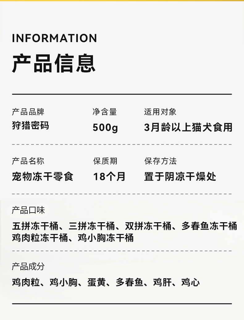 狩猎密码 宠物零食冻干桶 多拼 纯肉 0添加 增肥发腮 宠物冻干零食