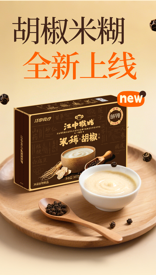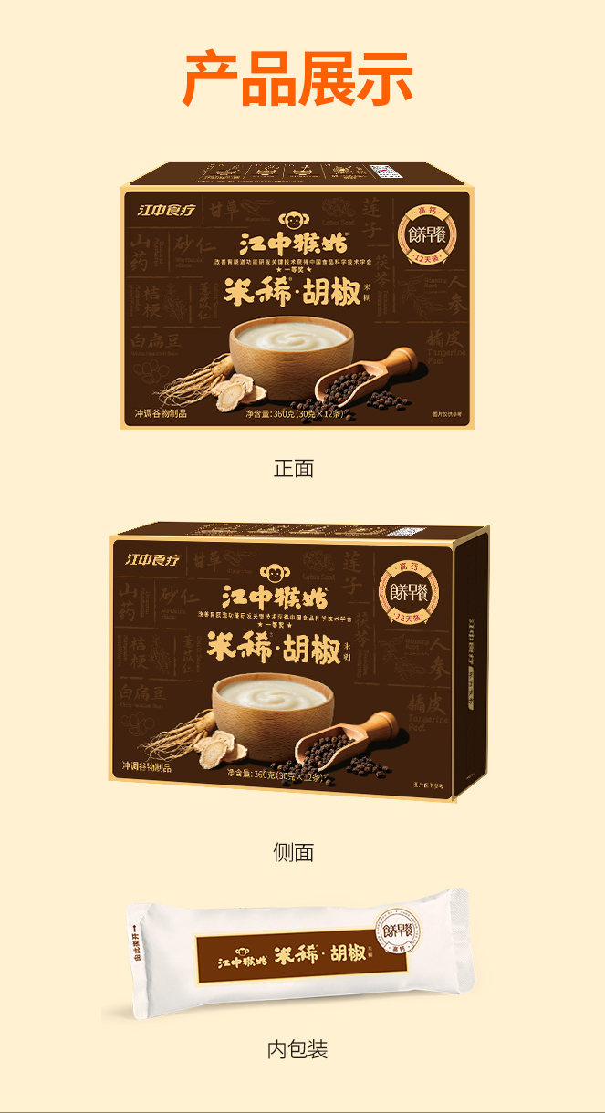 【预售 72小时发货】江中猴姑米稀胡椒米糊360克/12条/盒 向往的生活同款 保质期到2026年9月【新人特价专享 限购2单】