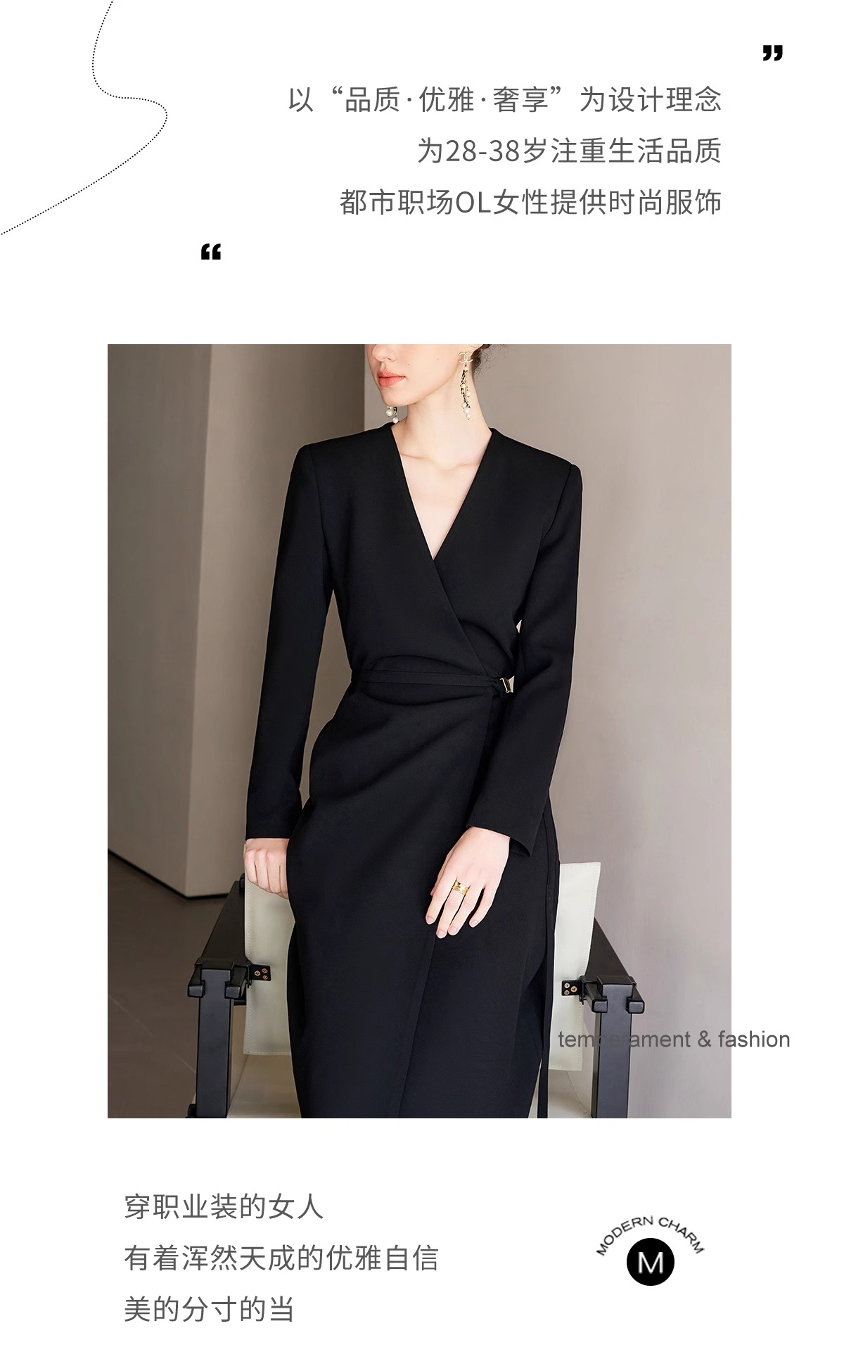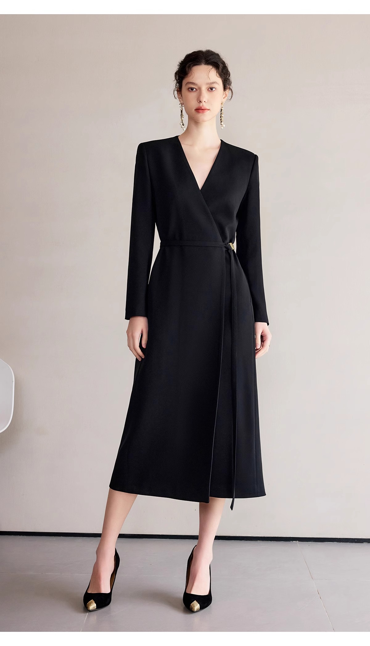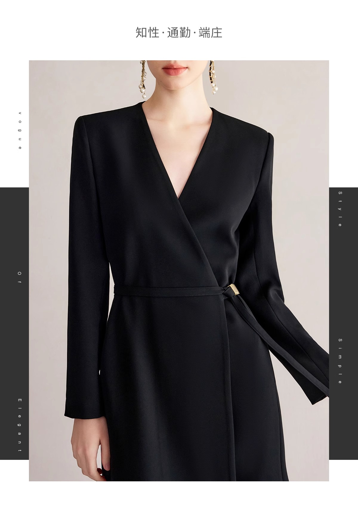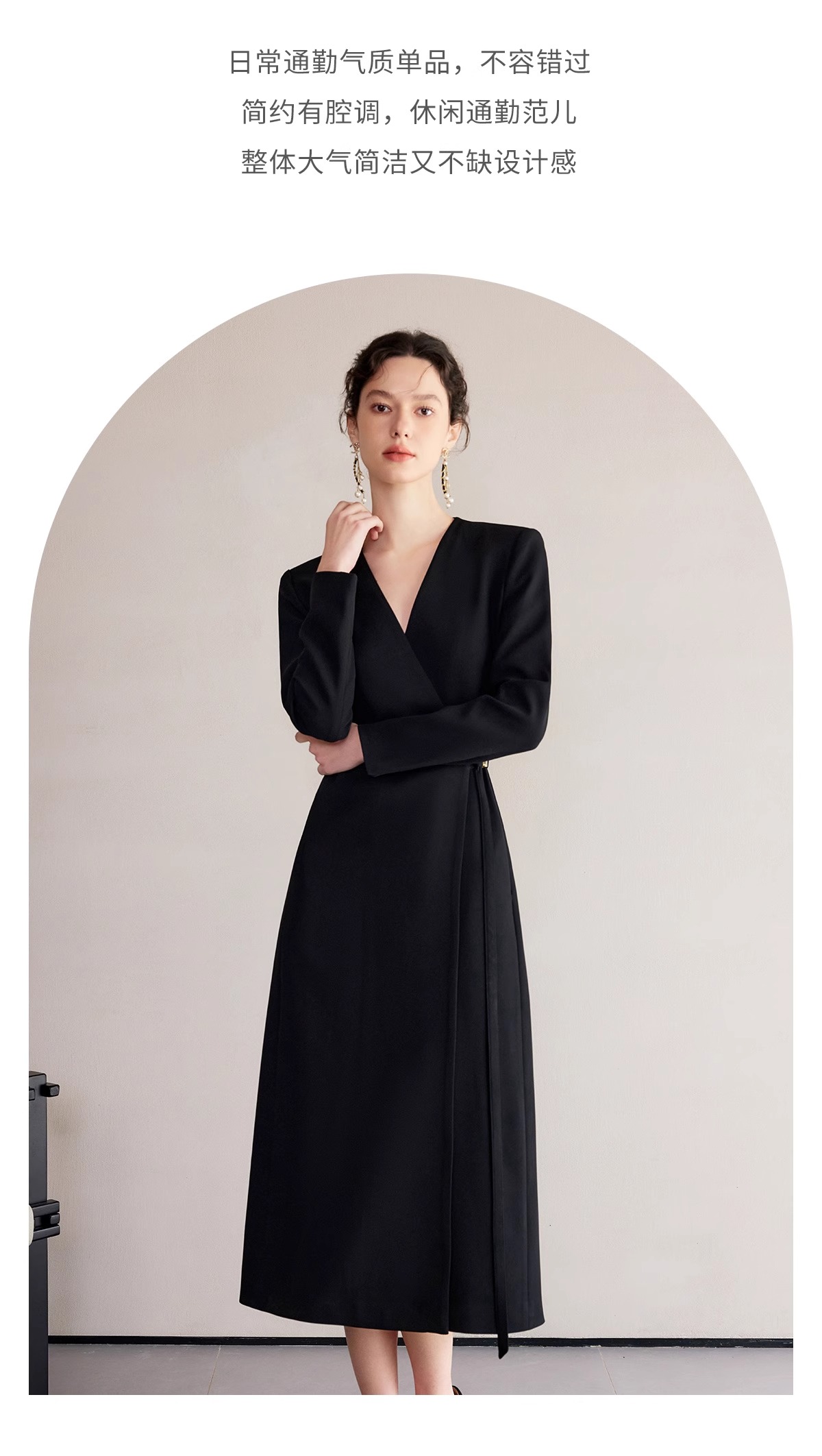IWY/冷淡系别致裙子深V领连衣裙职业装中长款系带西装小黑长裙礼服 Q1248