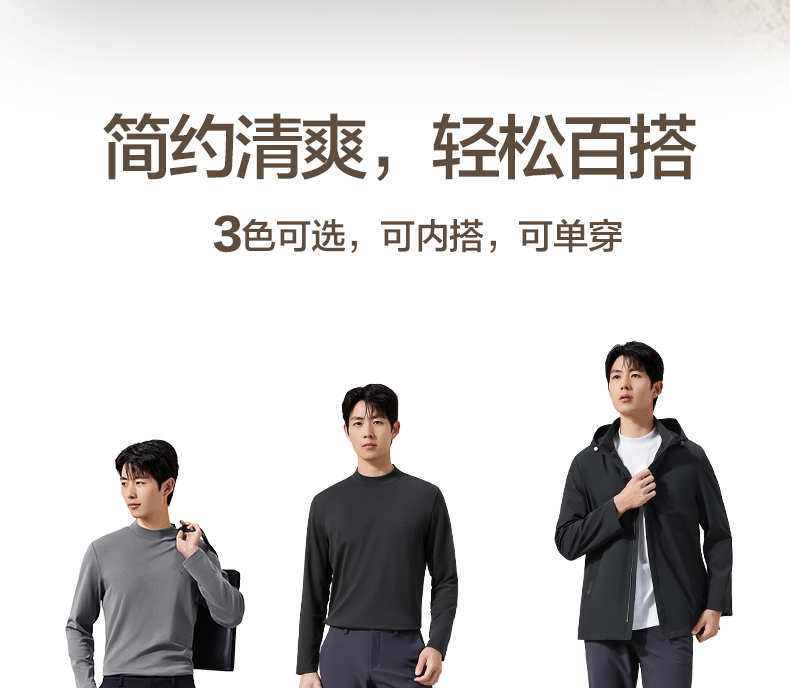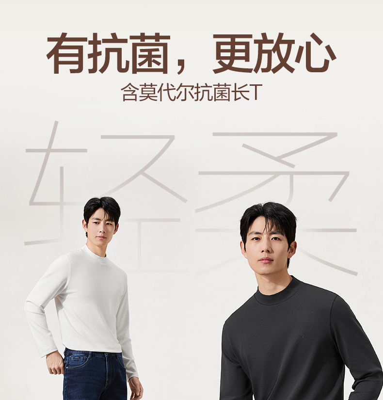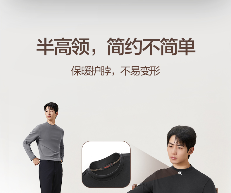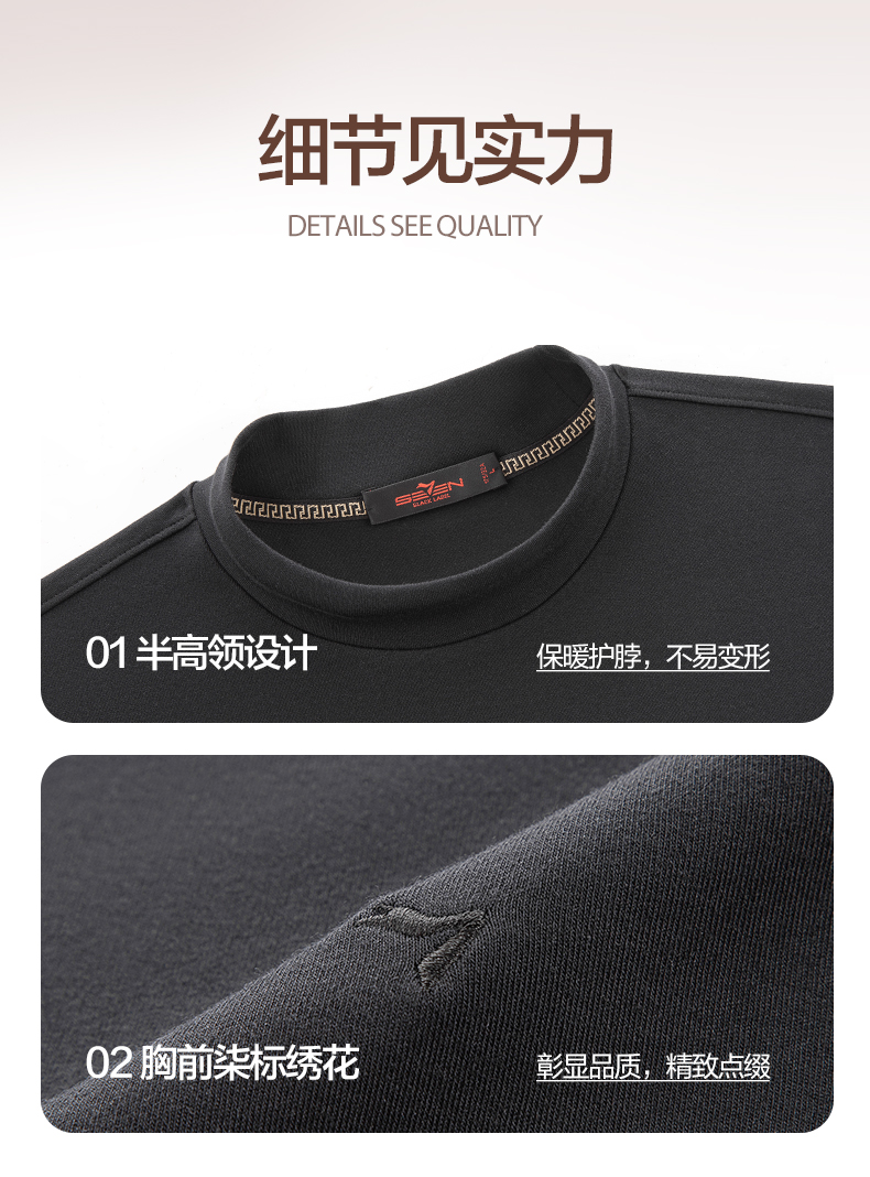 【暖暖绒 莫代尔/远红外发热】柒牌男装长袖抗菌T恤秋季半高领休闲上衣129T70250