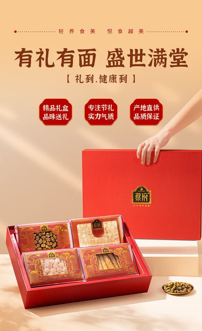 【一件包邮 传统滋补】蔡府盛世满堂C组合(元贝+西洋参+黄花胶+石斛)160g 干货滋补大礼盒 甘肃/青海/内蒙古/新疆/西藏/宁夏/海南/港澳台不发货