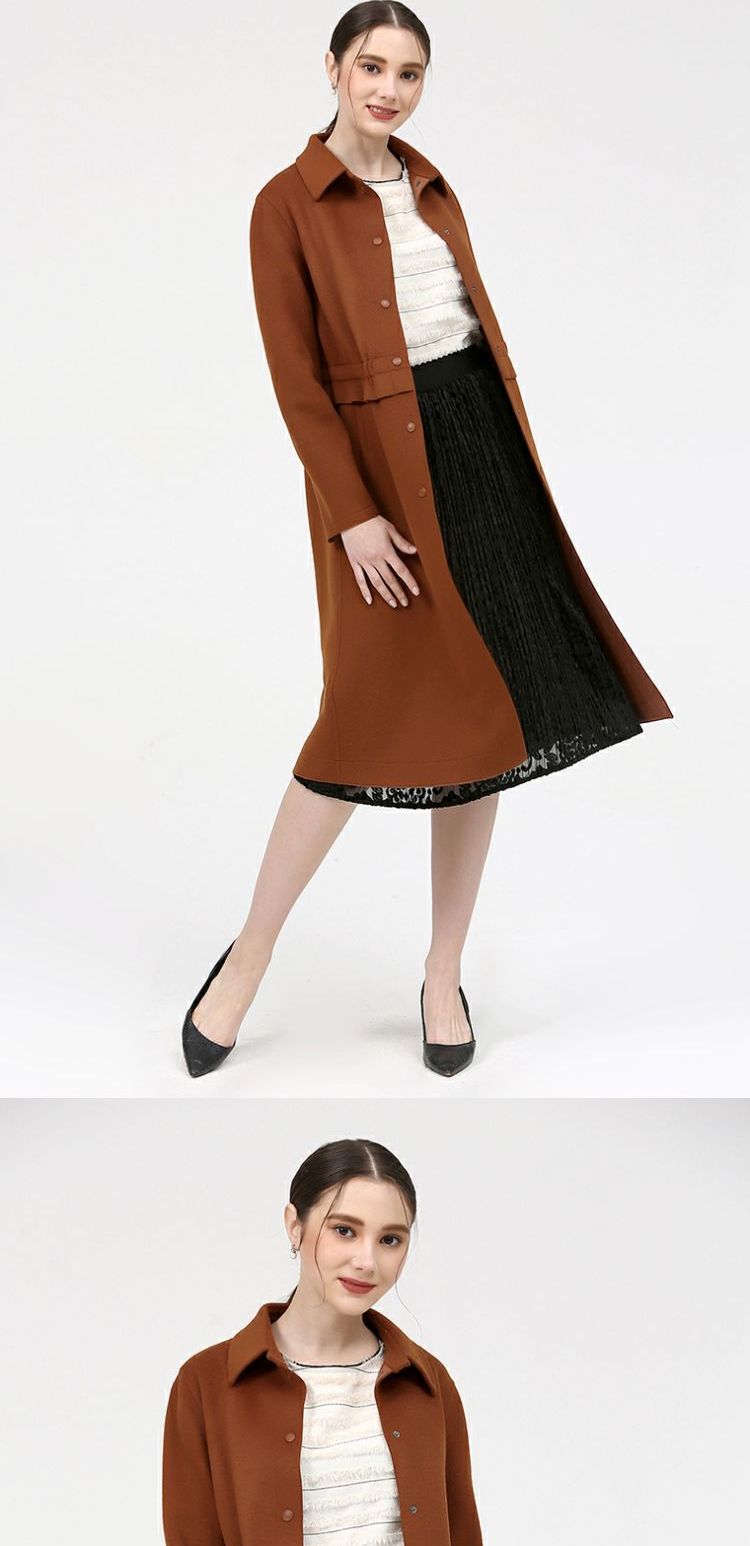佐尔美新品春秋季女装纯色百搭休闲中长外套风衣上衣E73FC44