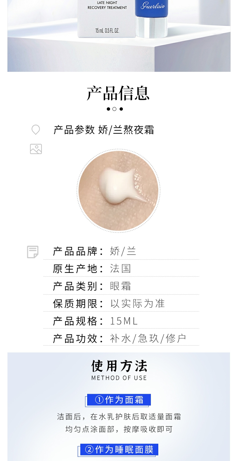 【YZ】法国Guerlain娇兰熬夜霜焕肤乳精华补水保湿滋润急救修复面霜15ml