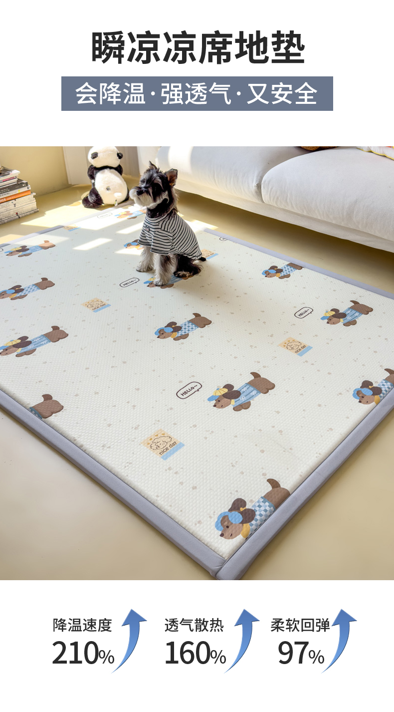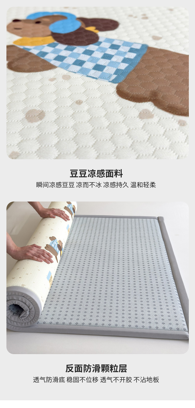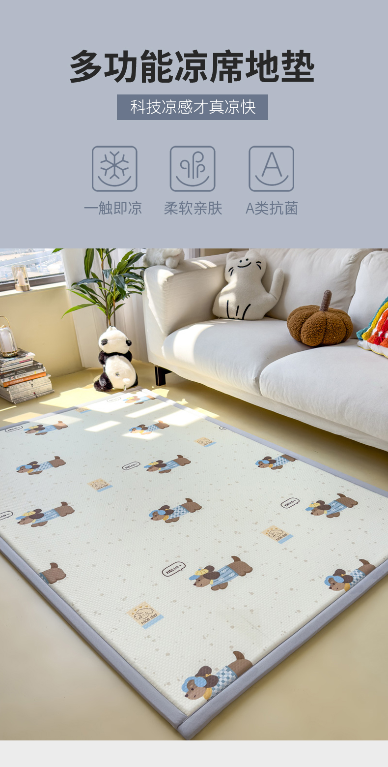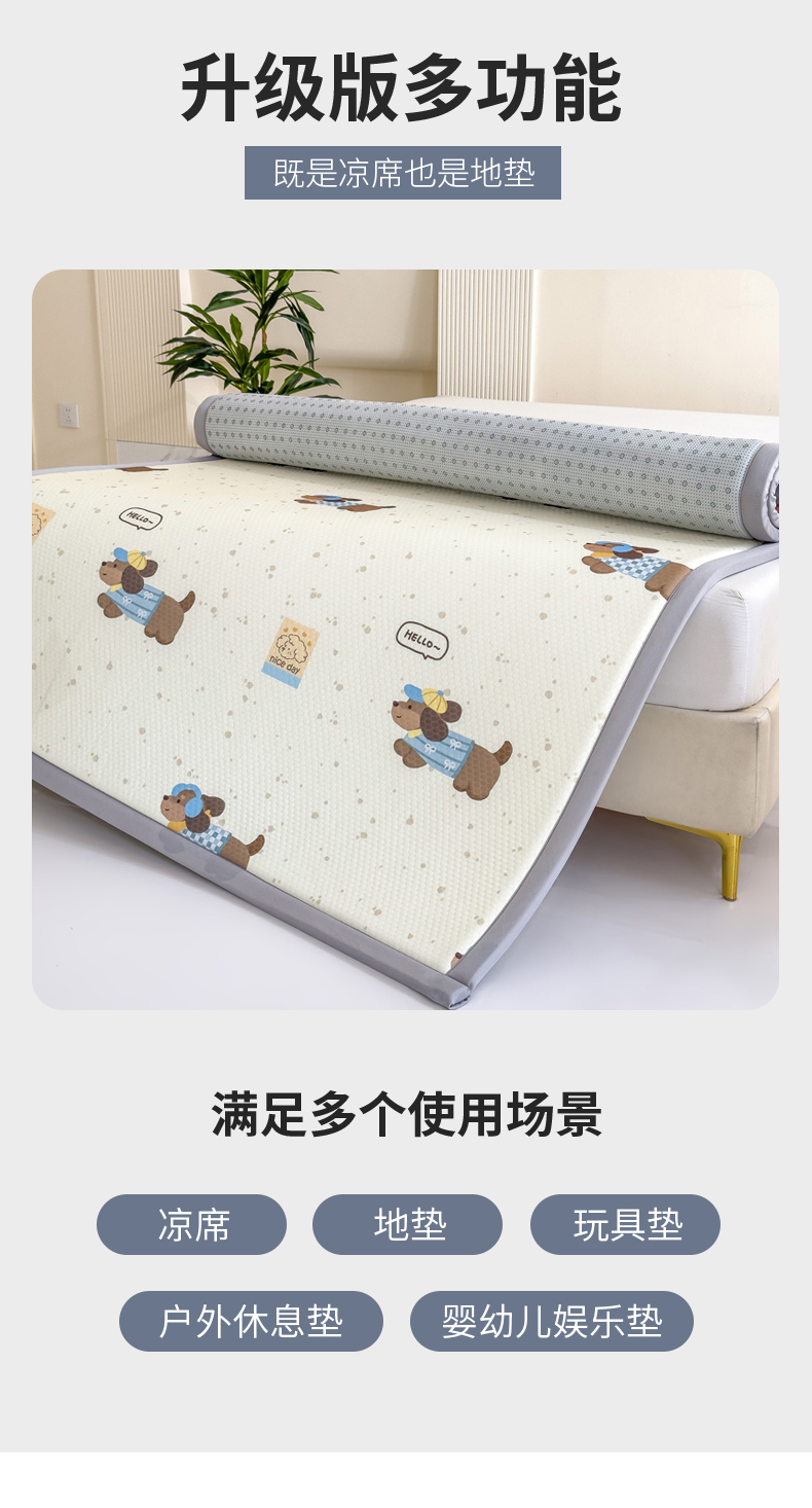 2025春夏A类抗菌印花凉感豆豆多功能垫地垫 加厚海绵可折叠收纳凉席地垫