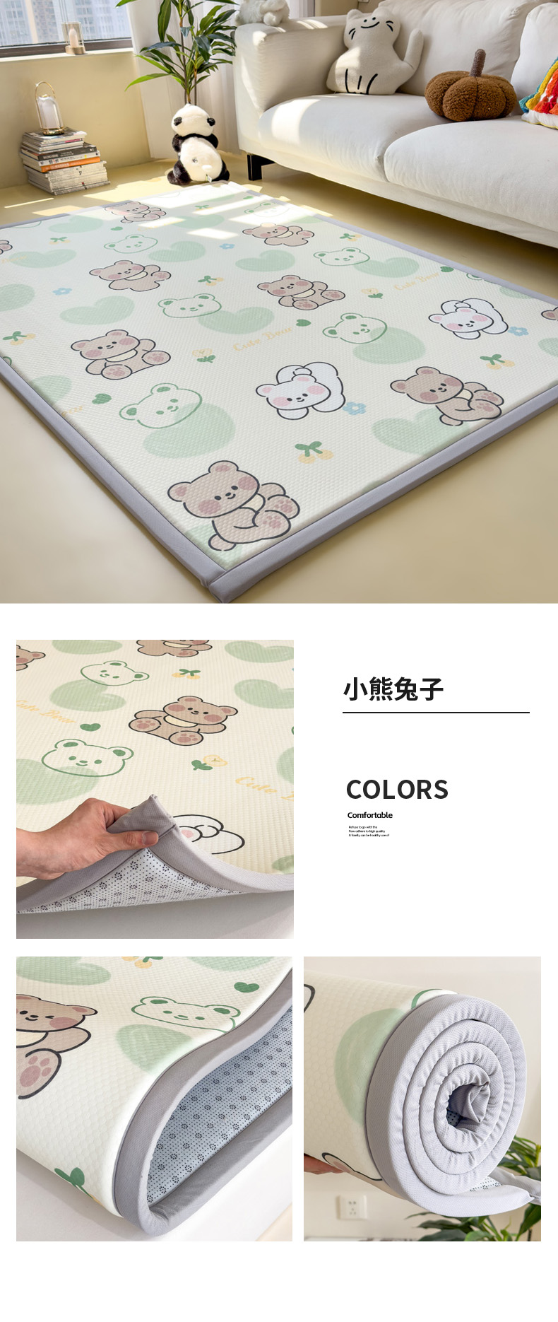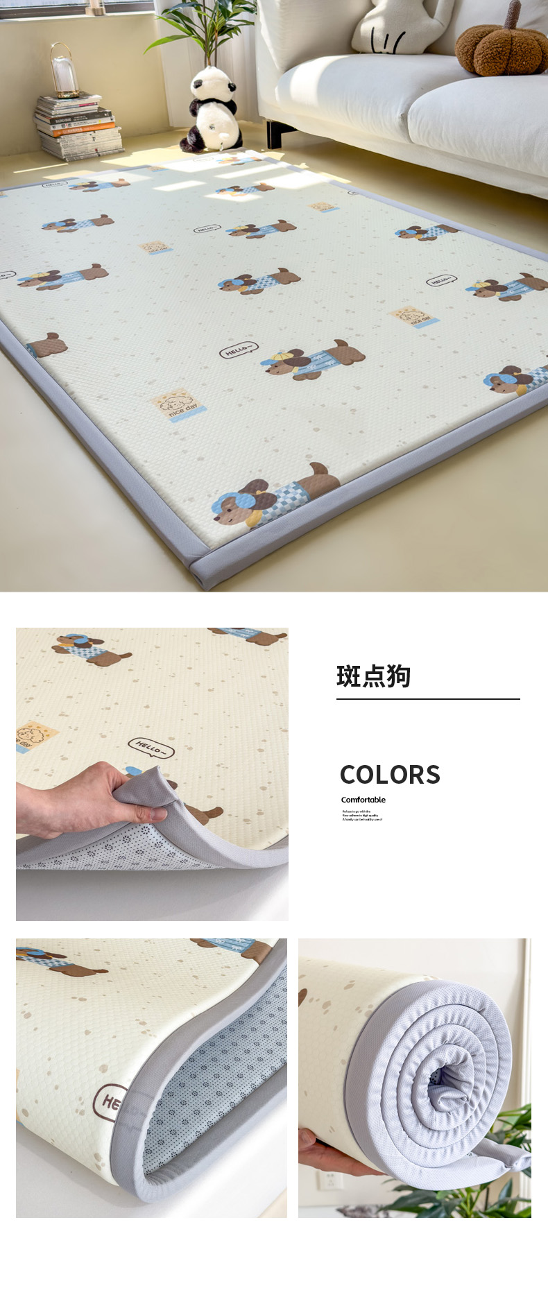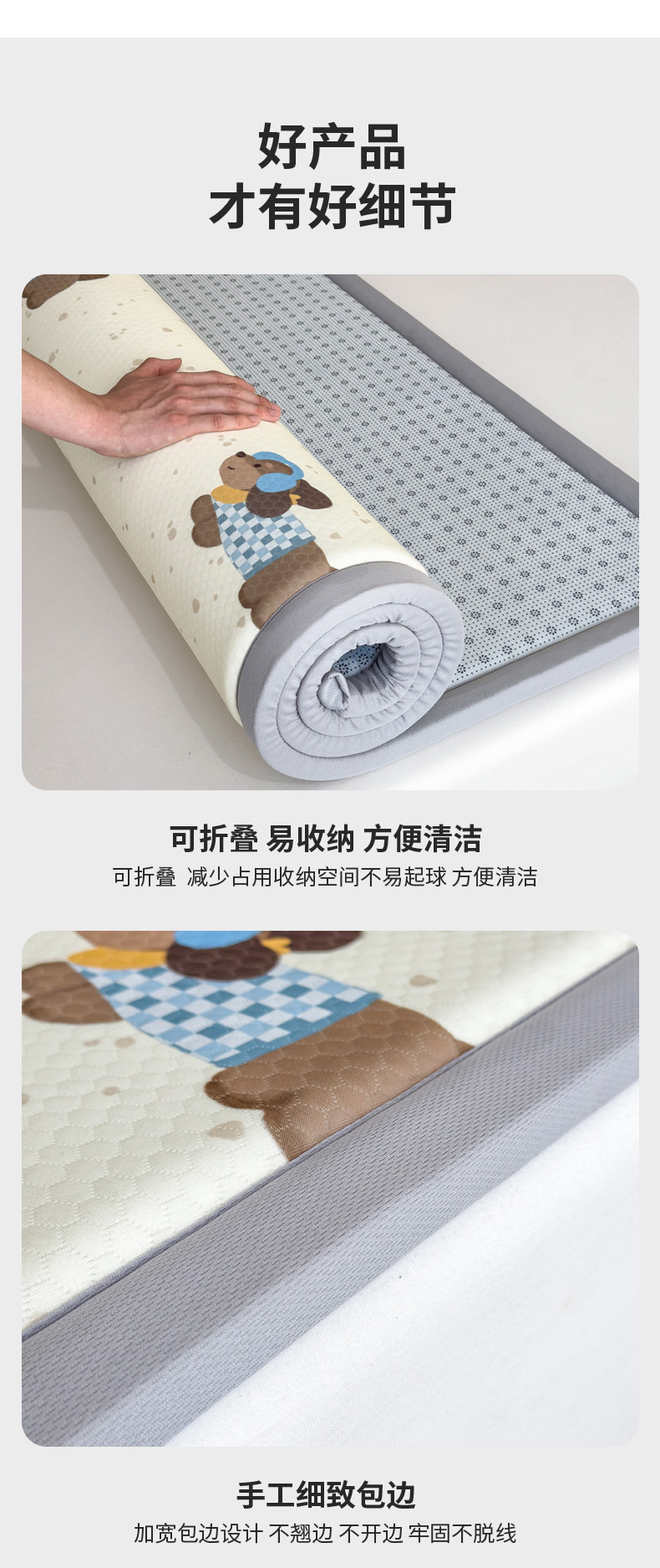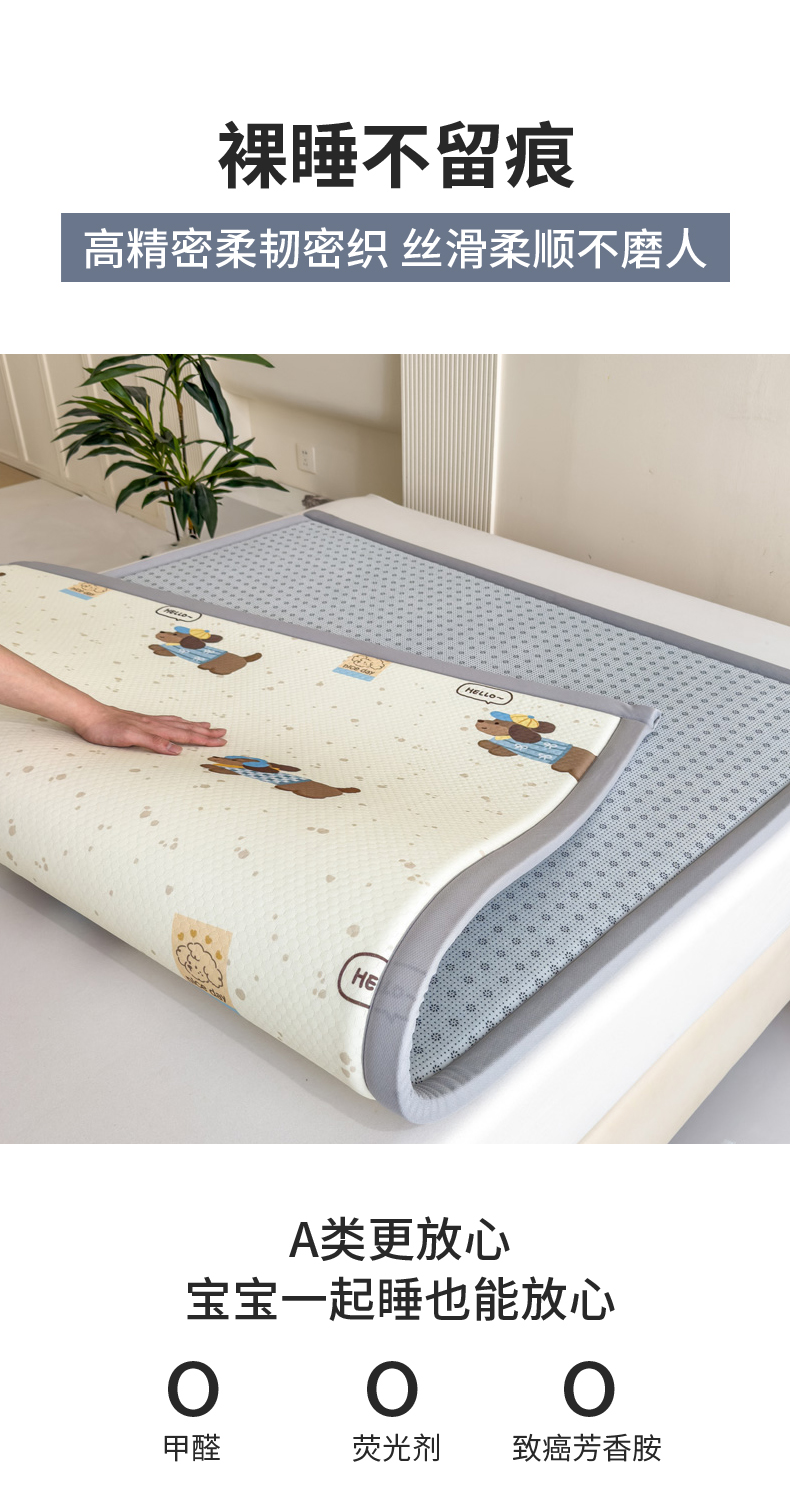 2025春夏A类抗菌印花凉感豆豆多功能垫地垫 加厚海绵可折叠收纳凉席地垫