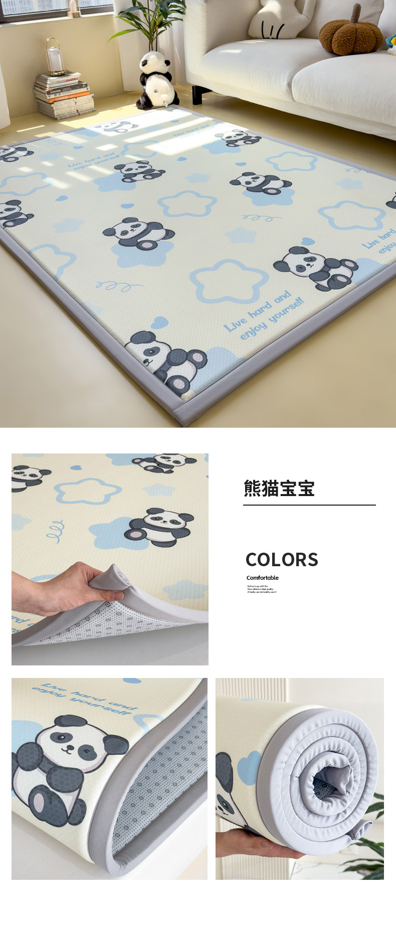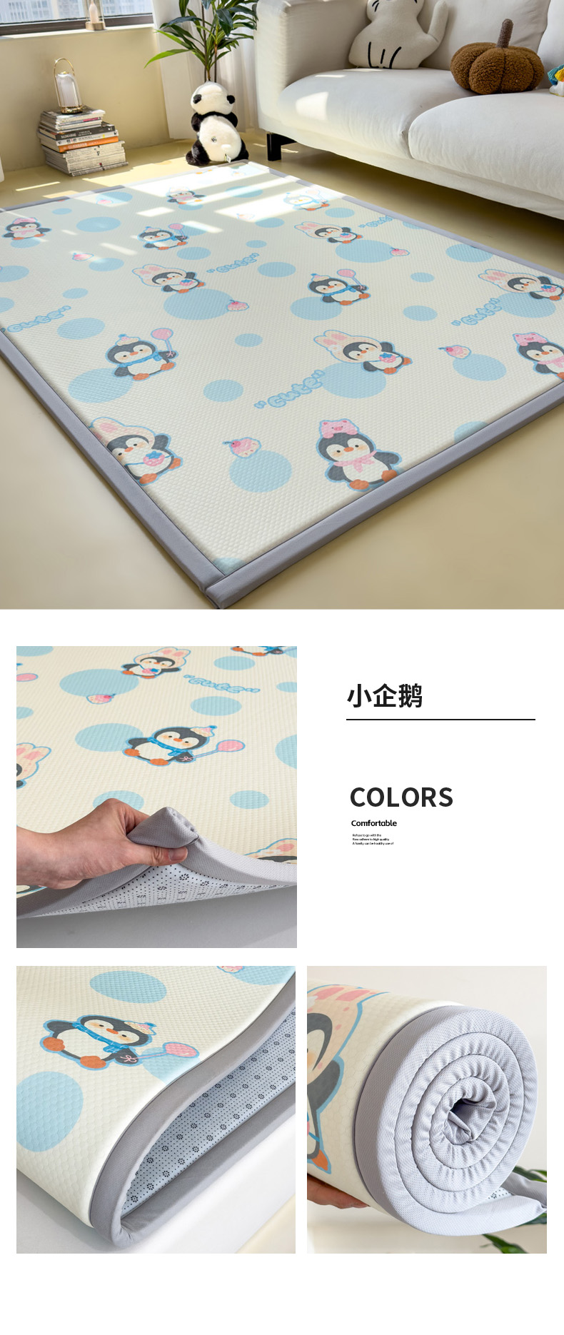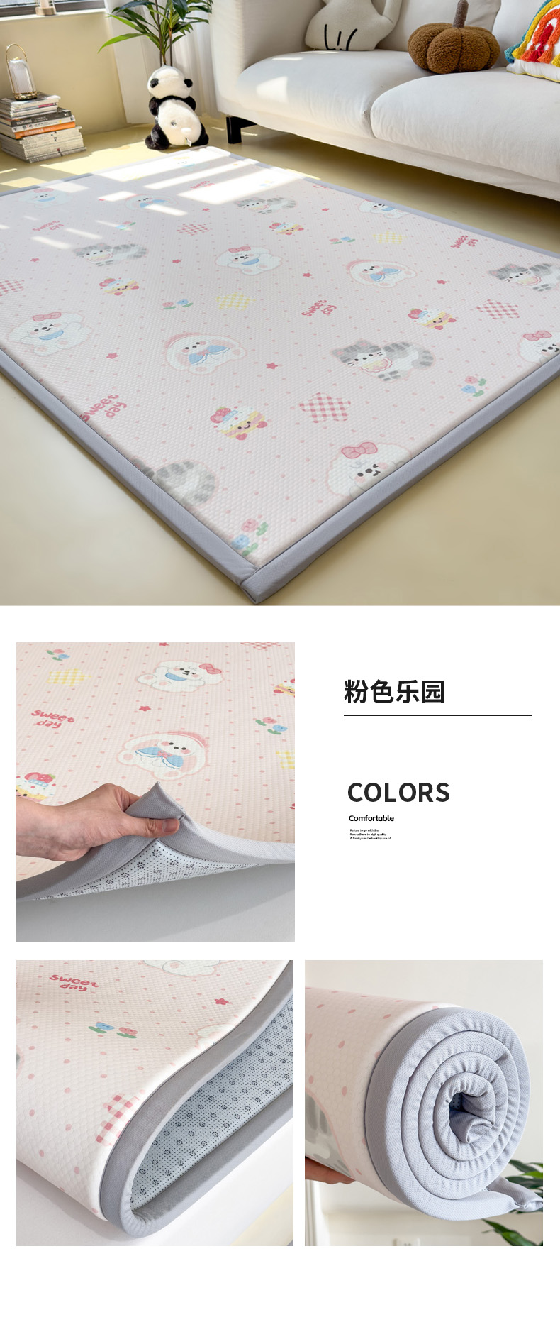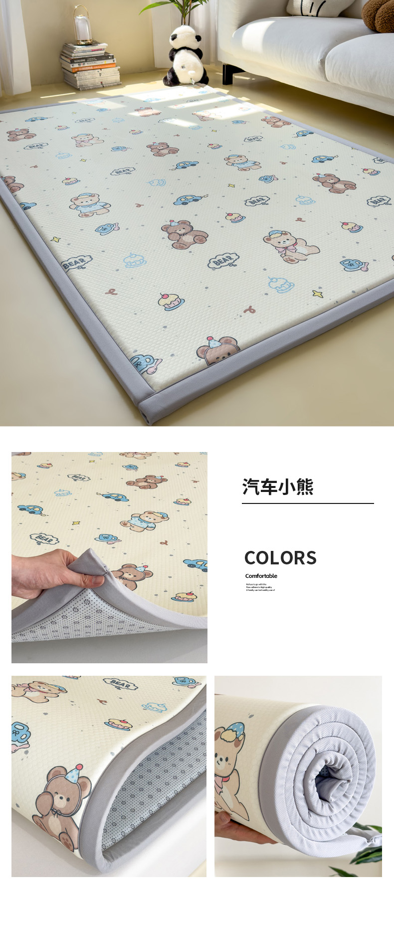 2025春夏A类抗菌印花凉感豆豆多功能垫地垫 加厚海绵可折叠收纳凉席地垫