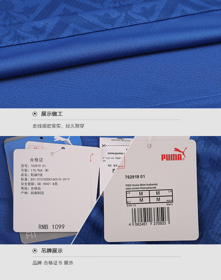 PUMA/彪马 意大利欧洲杯主场 球员版球衣76291901