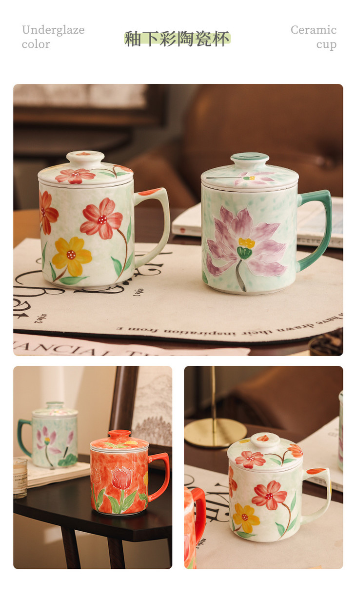 💐母亲节的脚步悄然临近,在这个充满温情与感恩的节日里,☺️你是否正为送什么礼物给妈妈而发愁?✨独家|【釉下彩手绘茶隔杯】---母亲节送礼首选‼️