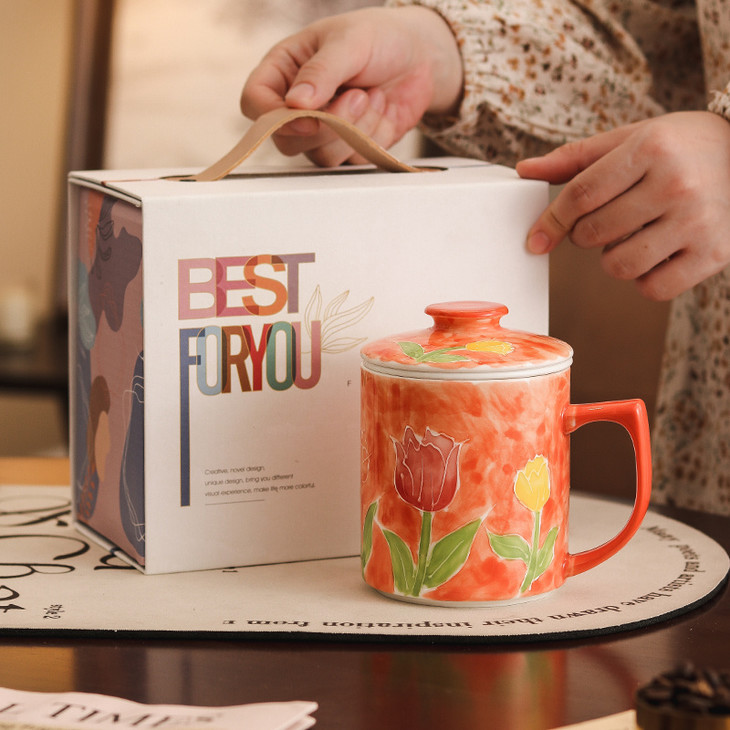 母亲节是一个向妈妈表达爱意的好机会,而这款纯手绘带茶隔的陶瓷花茶杯,无疑是一份能打动妈妈的礼物。 它既具有艺术价值,又实用贴心,能让妈妈感受到我们的用心。 当妈妈收到这份礼物时,她一定会被茶杯的美丽和我们的心意所感动。 在这个特殊的日子里,让我们用这个茶杯,为妈妈泡上一杯好茶,陪她聊聊天,一起度过一段温馨的时光。