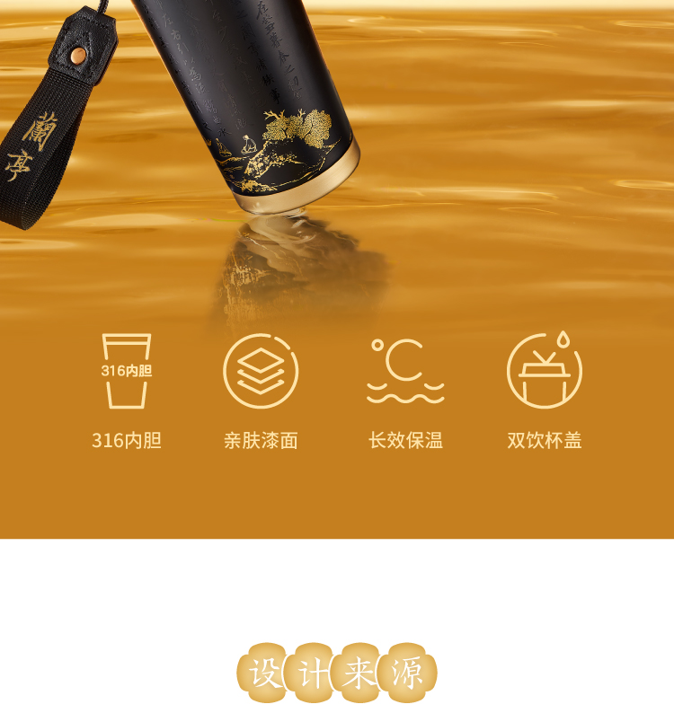 【故宫水杯】兰亭序保温杯吸管杯水杯博物馆文创新年生日礼物
