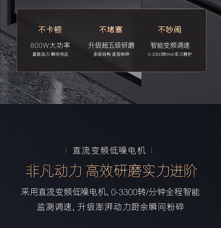 卡萨帝超五级研磨厨房垃圾处理器家用厨余食物粉碎机变频遇阻反转智能自动关机 【高端产品上市】CLD800-B1