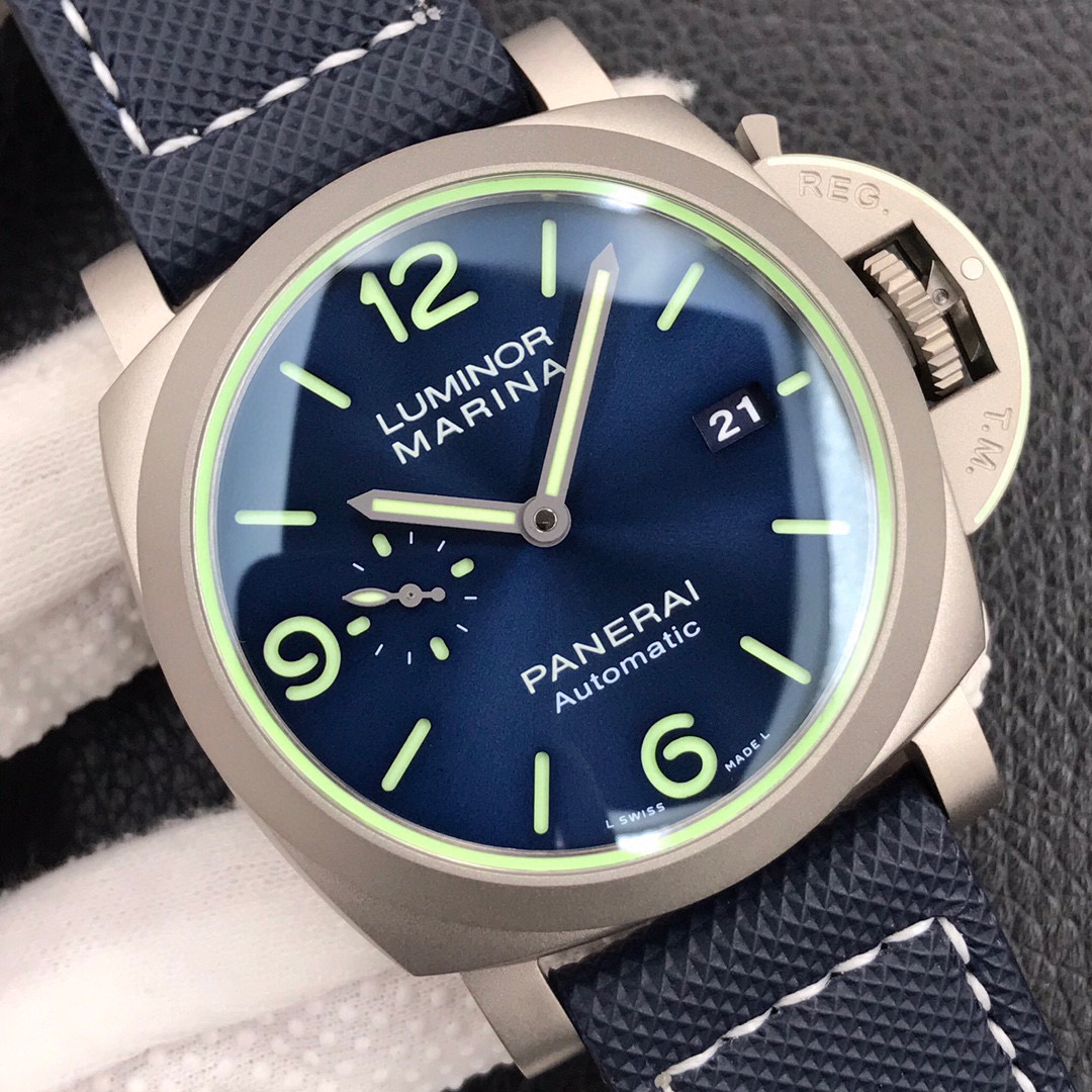 VS新品沛纳海44MM “超级夜光”PAM1117 镂空三文治超级夜光表盘,金属镭射钛金属表壳,蓝色夜光缝线表带,恐怕去看电影也得穿长袖遮住它的“万丈光芒”现购买赠送官网同款表层防水带一副!送完即止[耶]