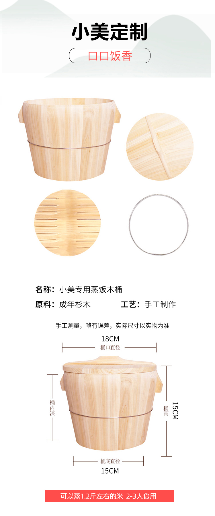 美善品TM5木桶饭小美专用TM6木桶糯米饭蒸饭桶米饭木饭桶