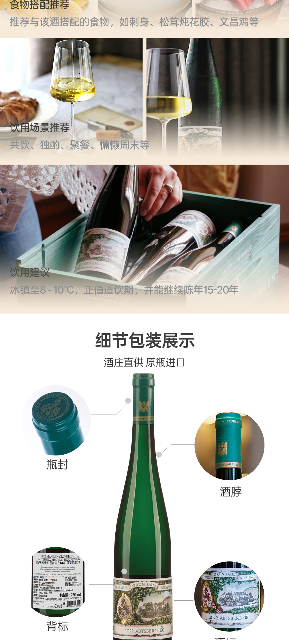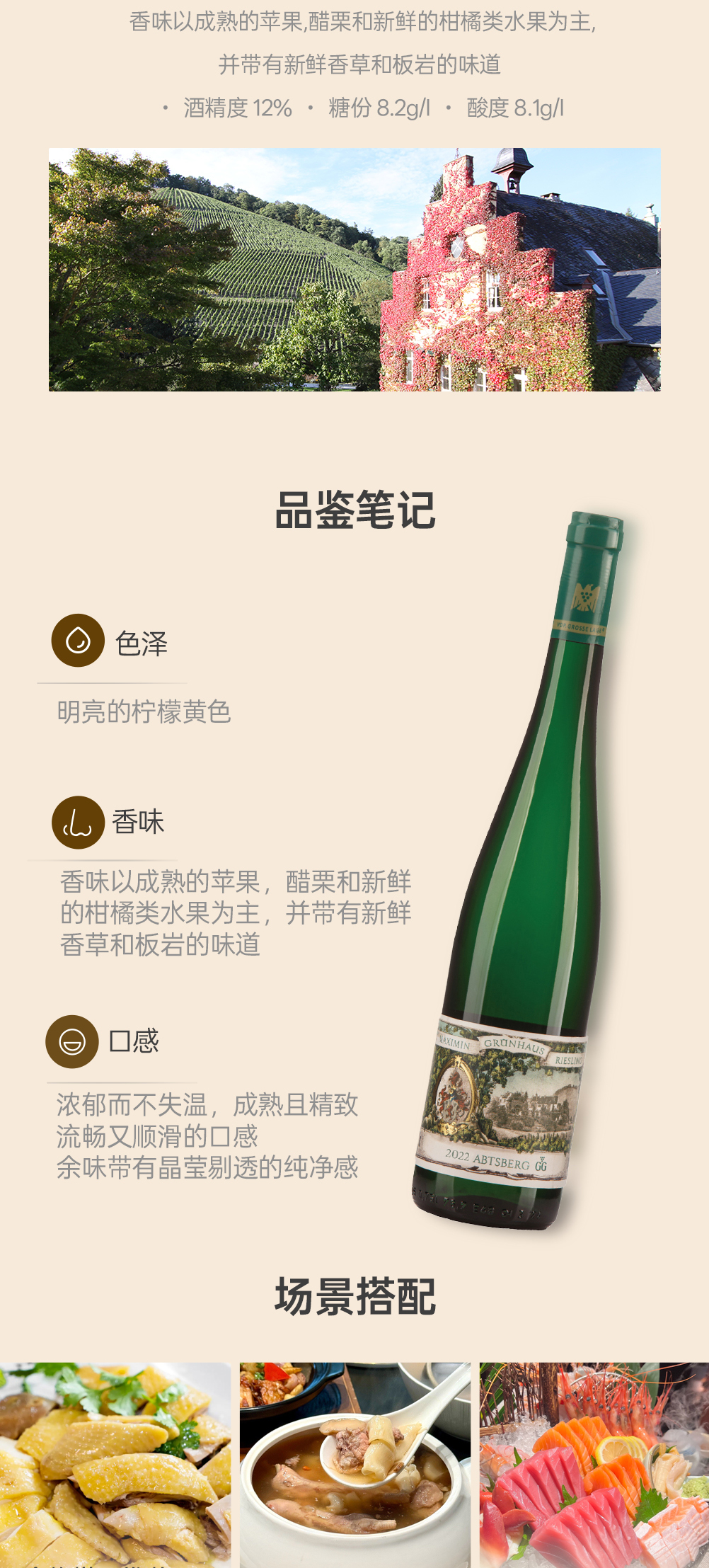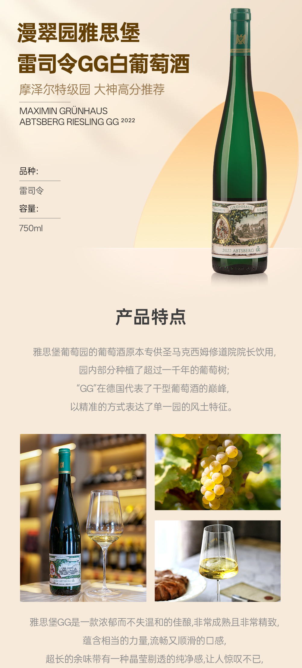 漫翠园雅思堡雷司令GG白葡萄酒2022 干型 12%vol 750ml