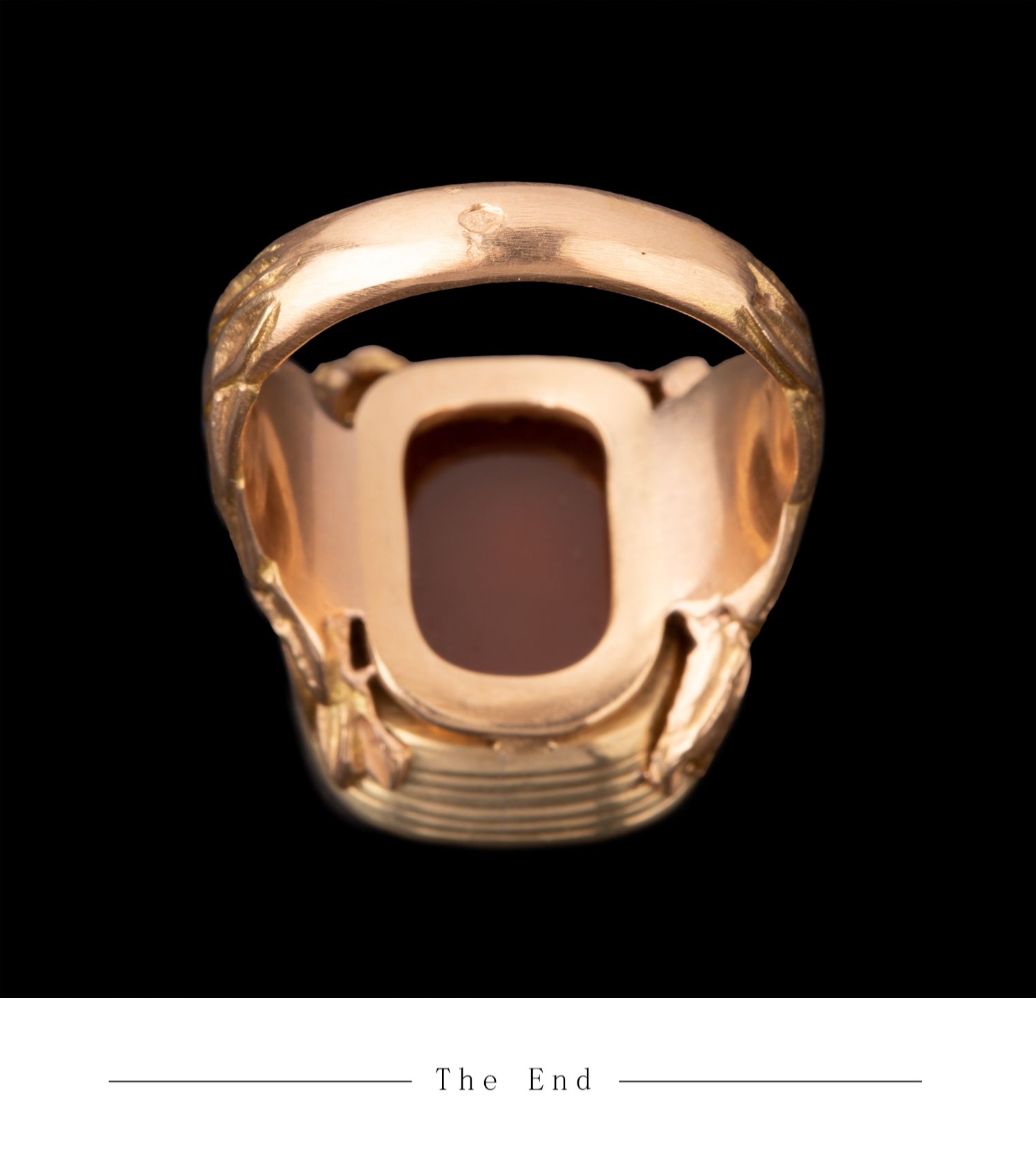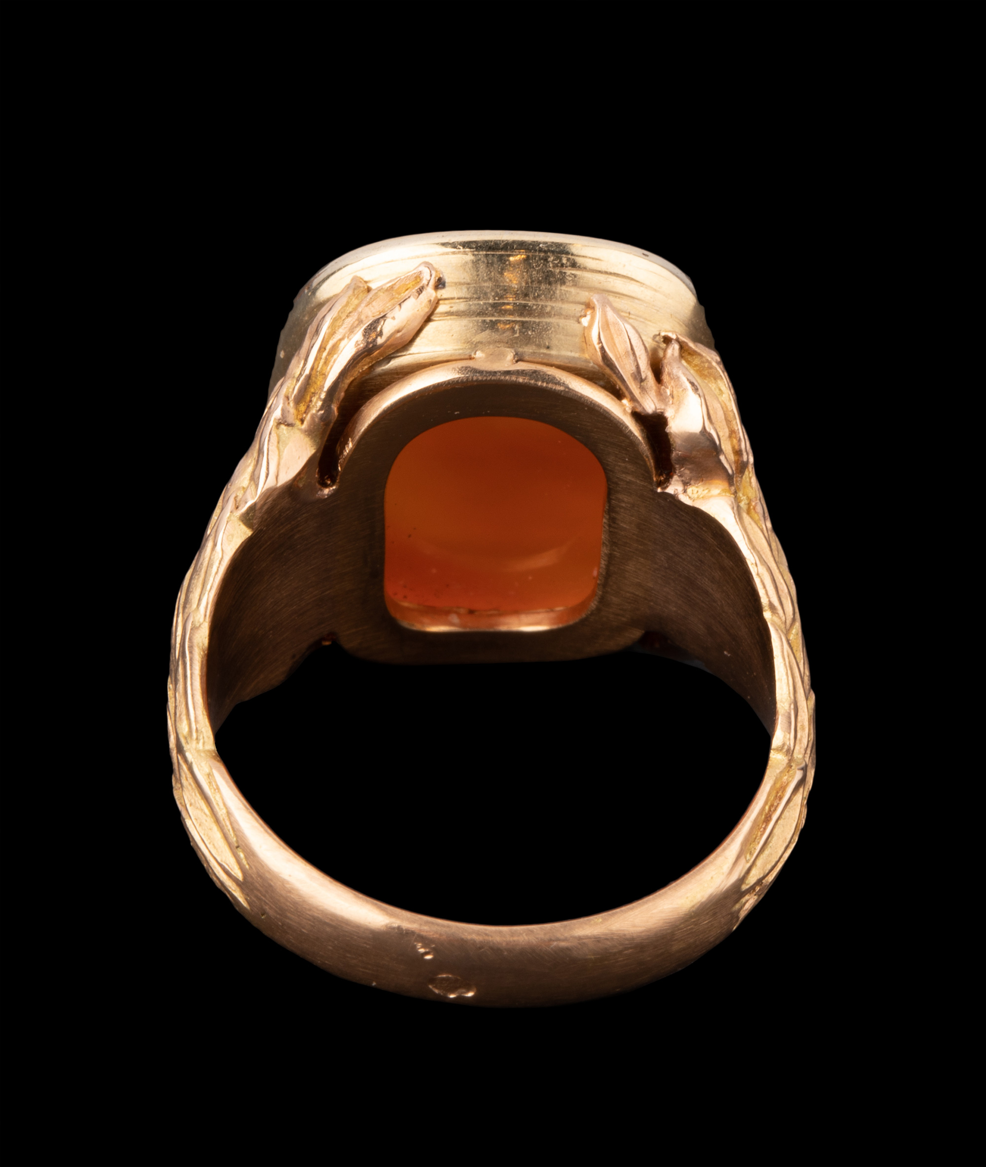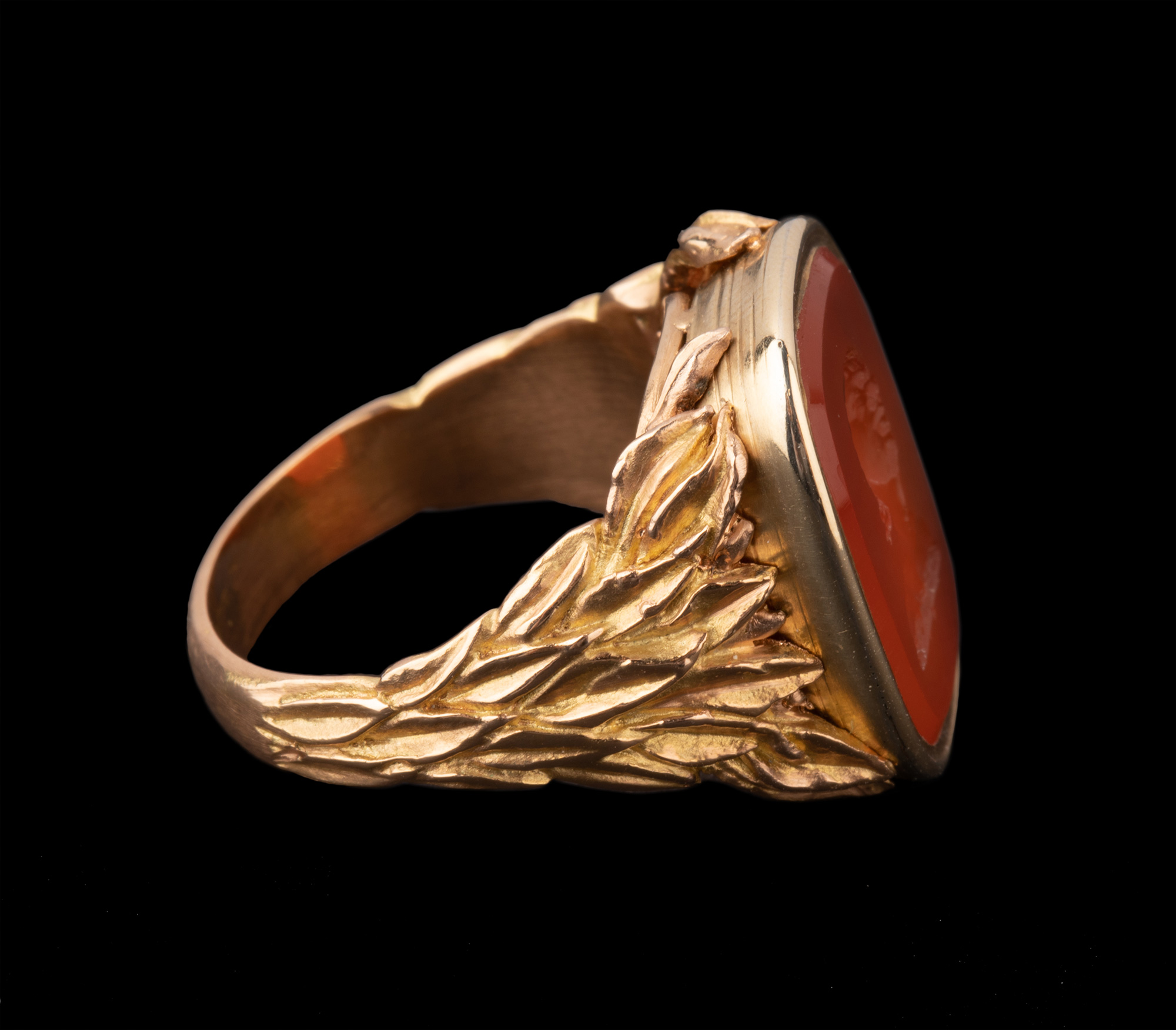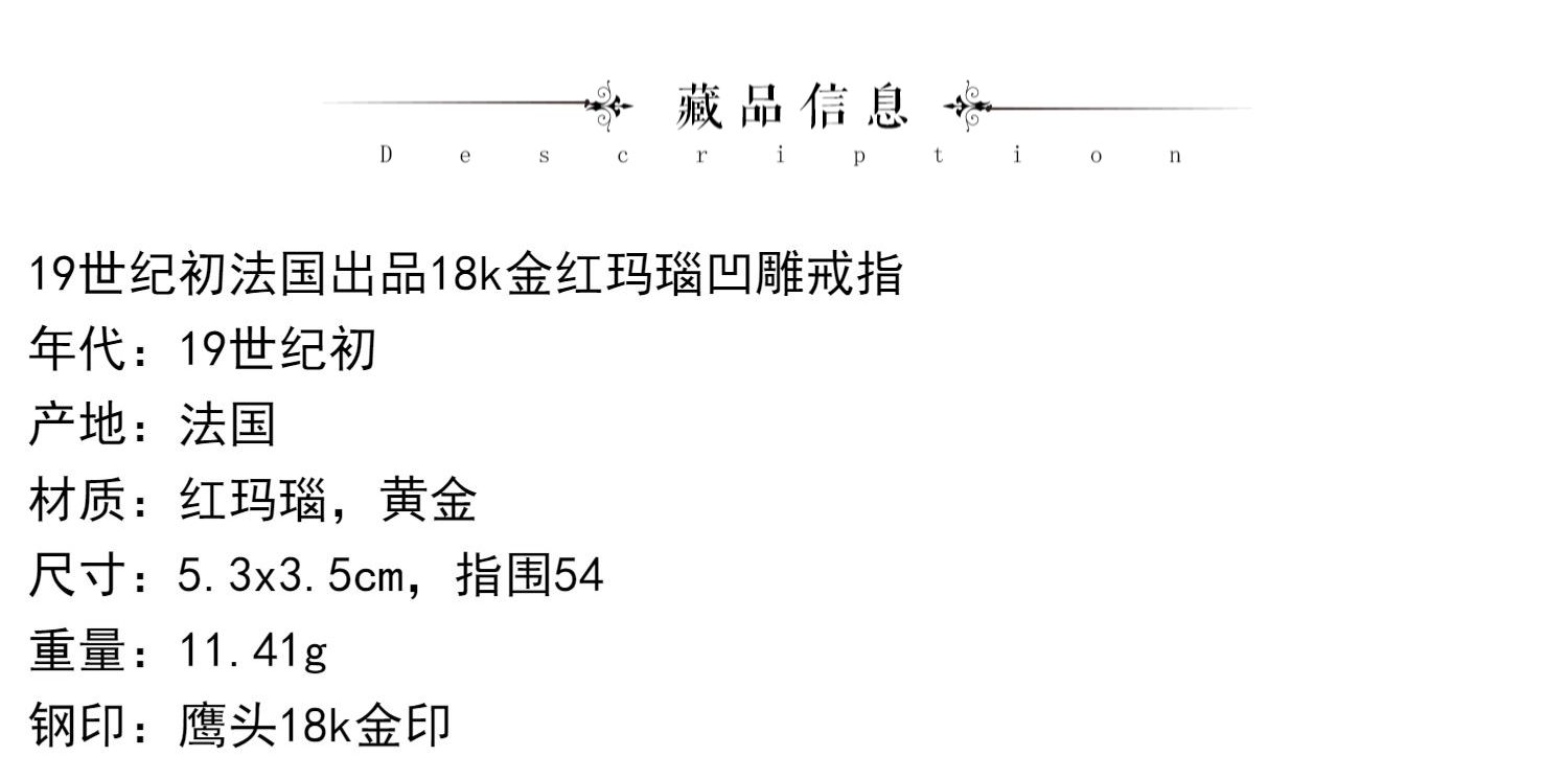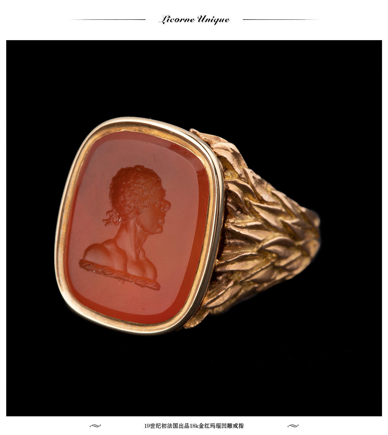 独角鹿西洋古董珠宝首饰19世纪初法国出品18k金红玛瑙凹雕戒指