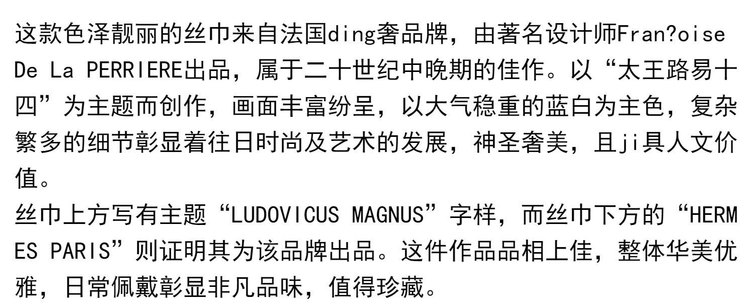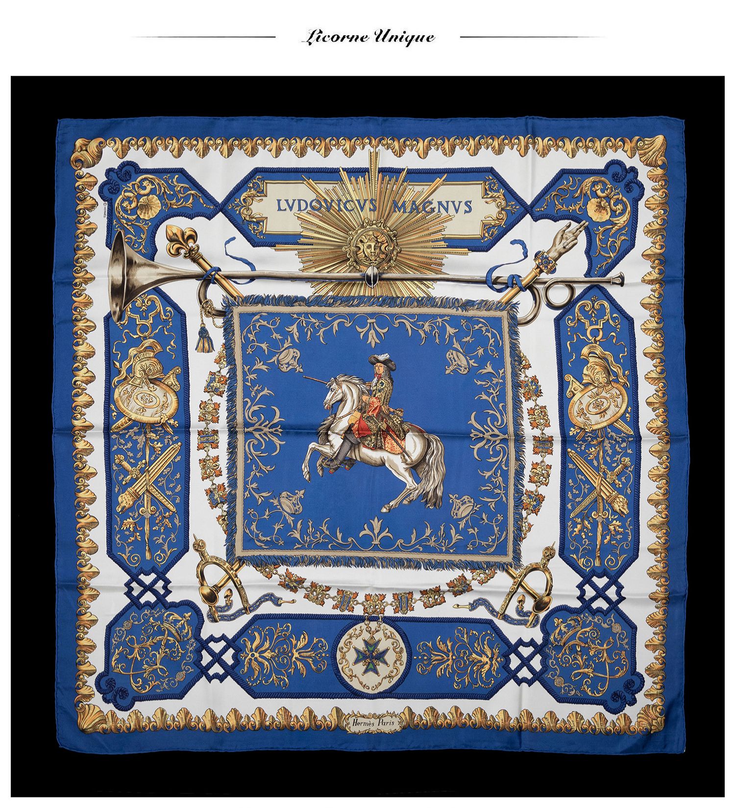独角鹿西洋古董法国品牌方形丝巾《LUDOVICUS MAGNUS 太阳王》