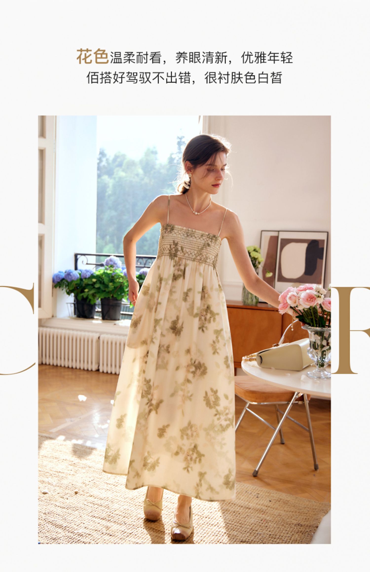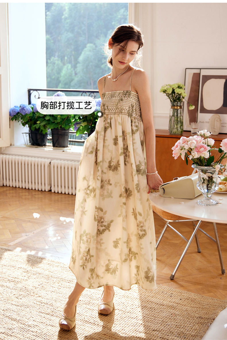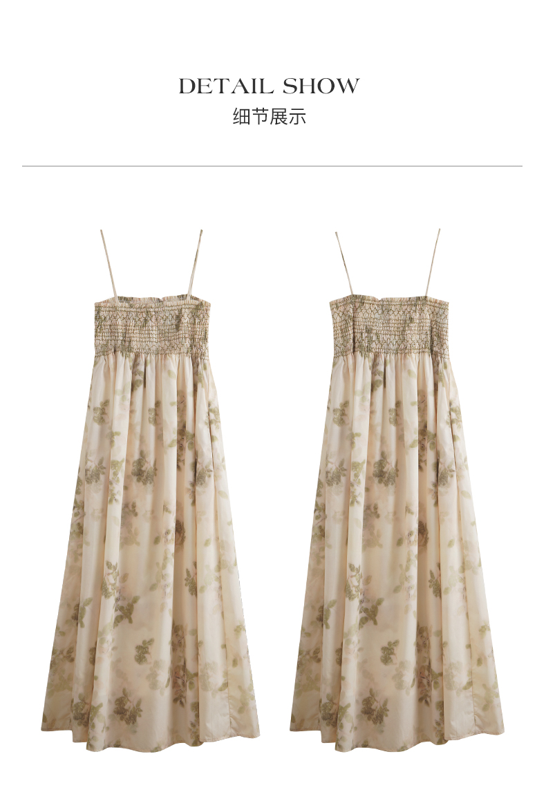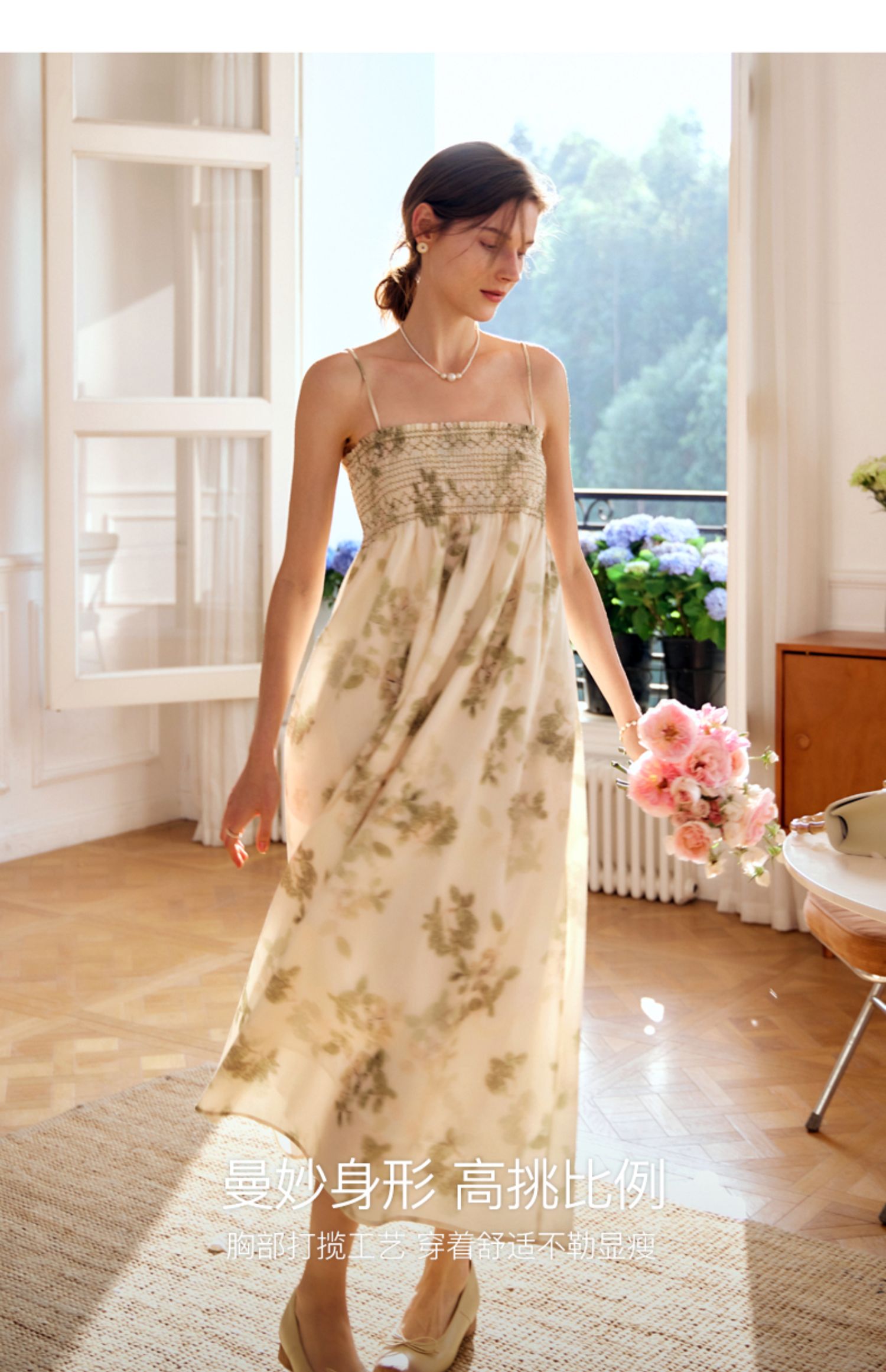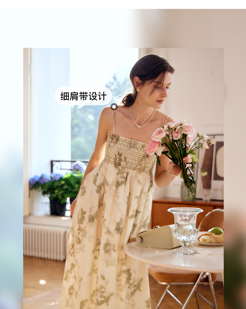 OLrain欧芮儿法式花色连衣裙女早春2024年新款碎花茶歇吊带裙