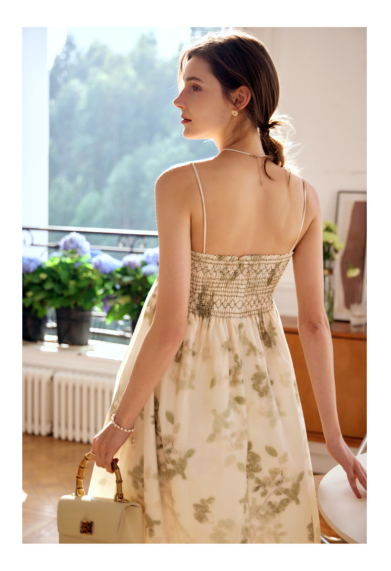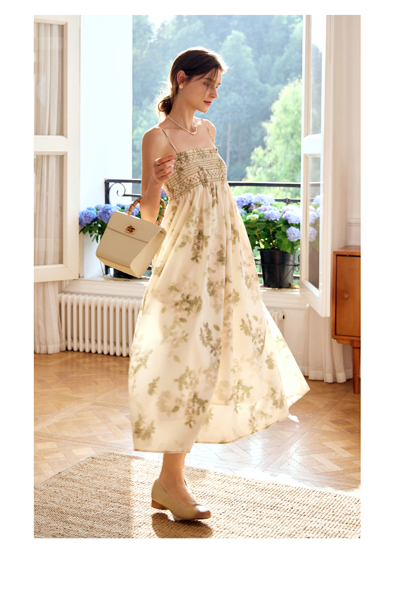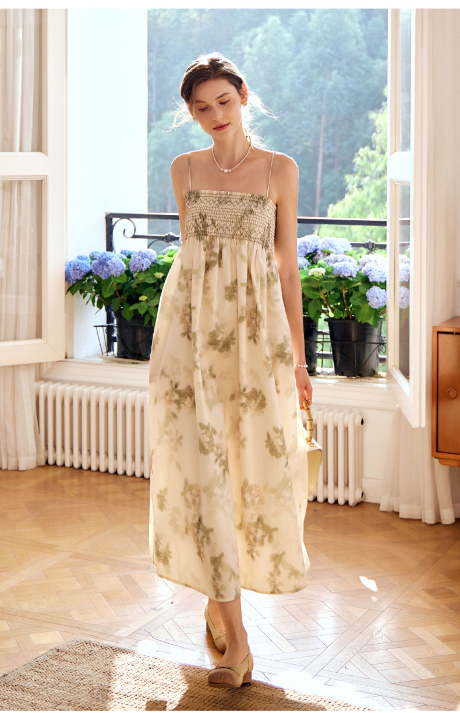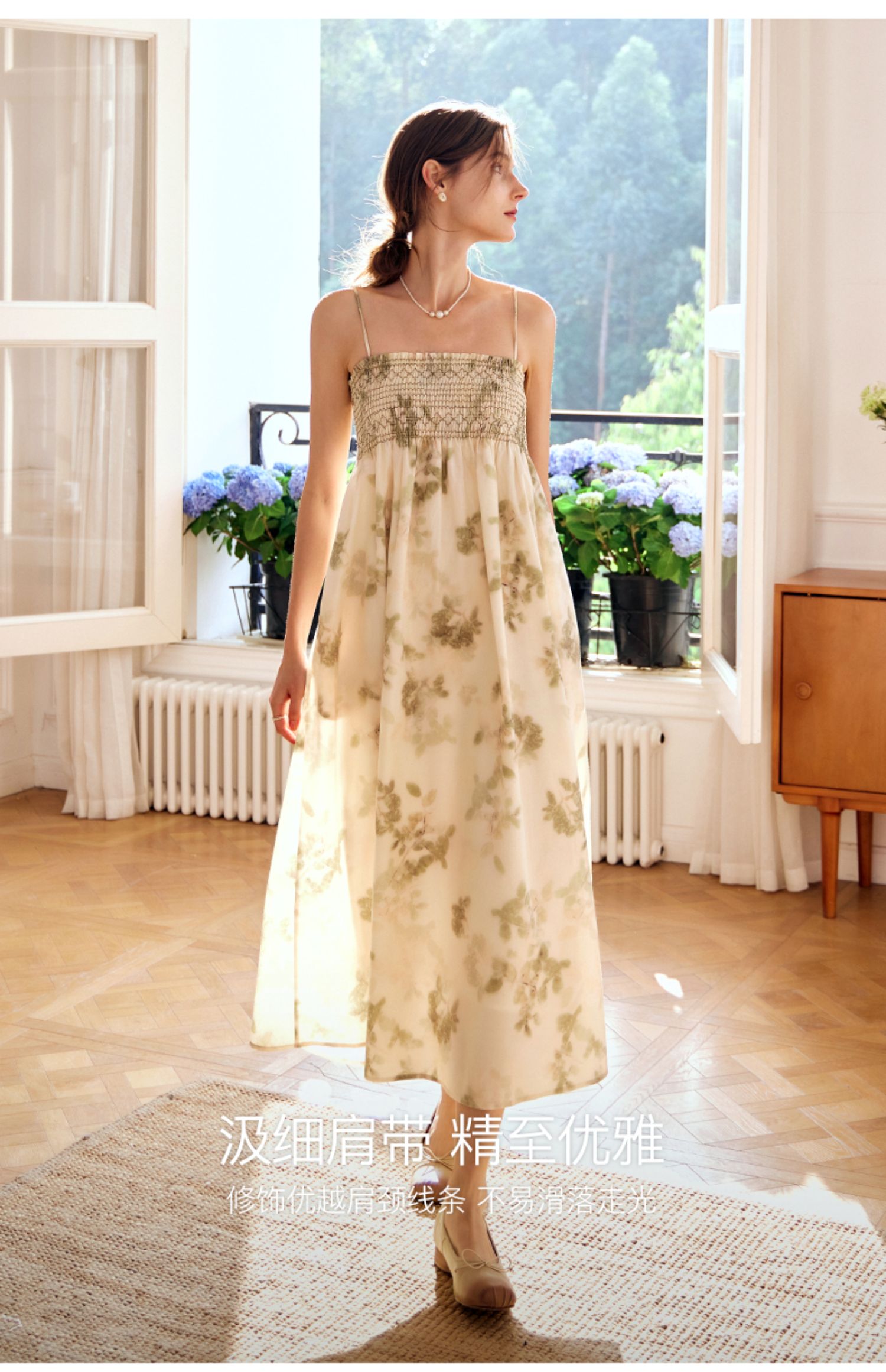 OLrain欧芮儿法式花色连衣裙女早春2024年新款碎花茶歇吊带裙