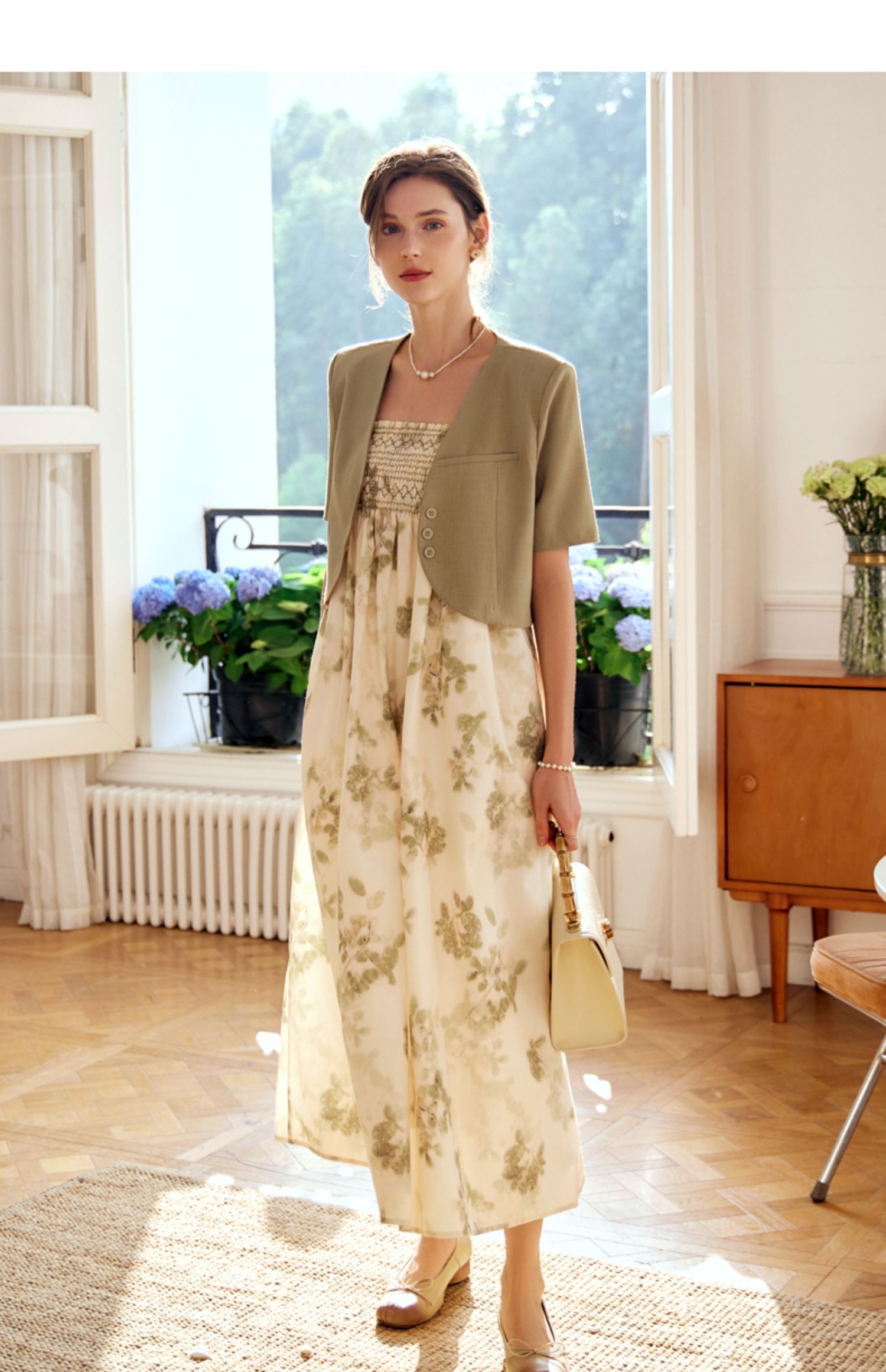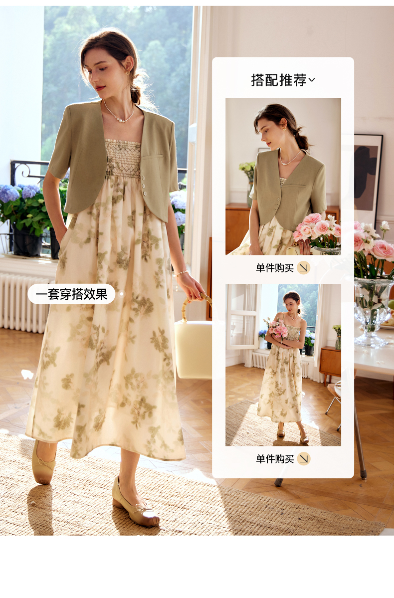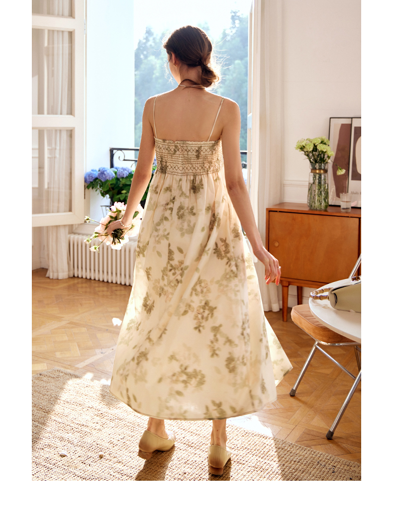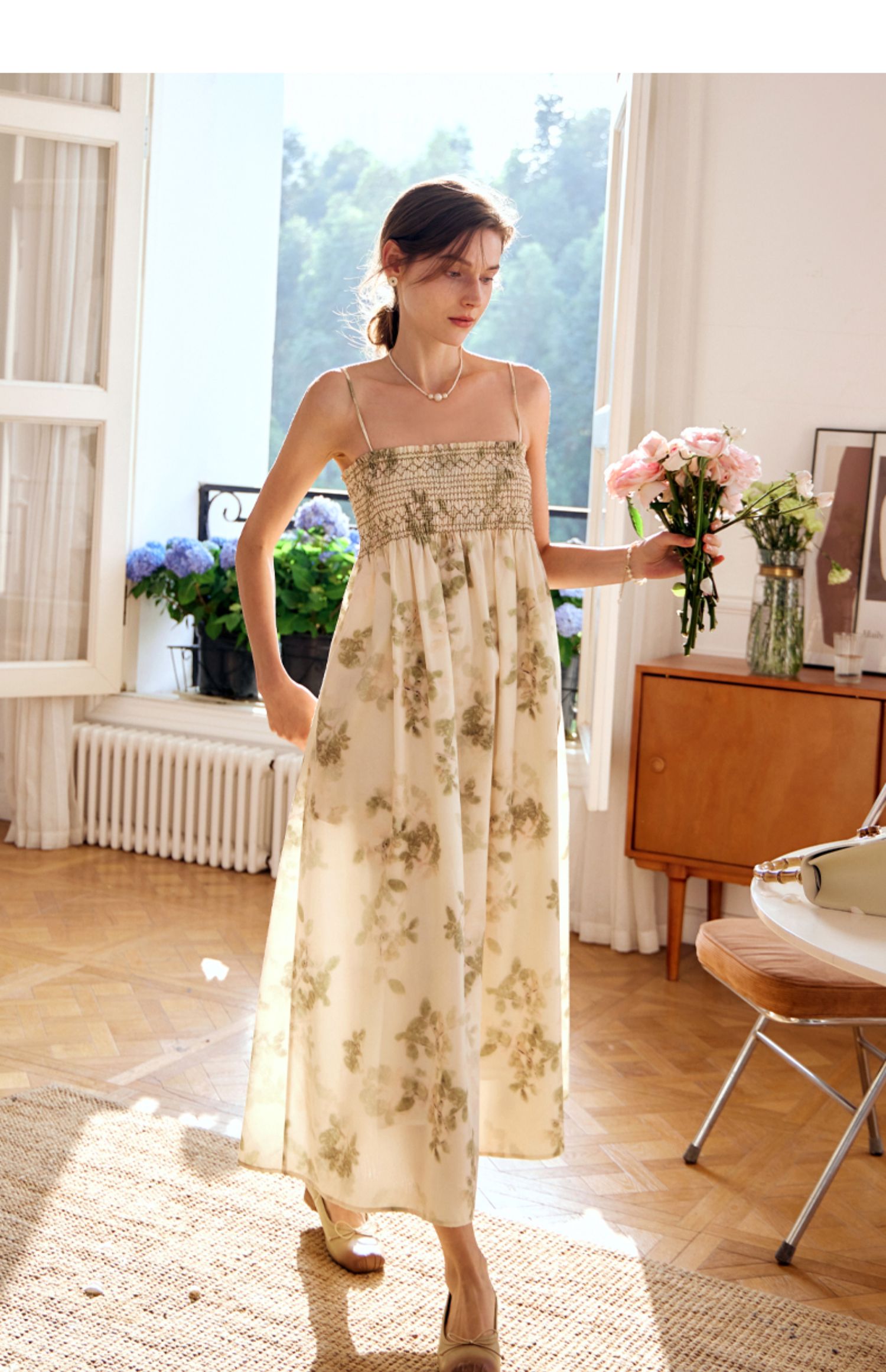OLrain欧芮儿法式花色连衣裙女早春2024年新款碎花茶歇吊带裙