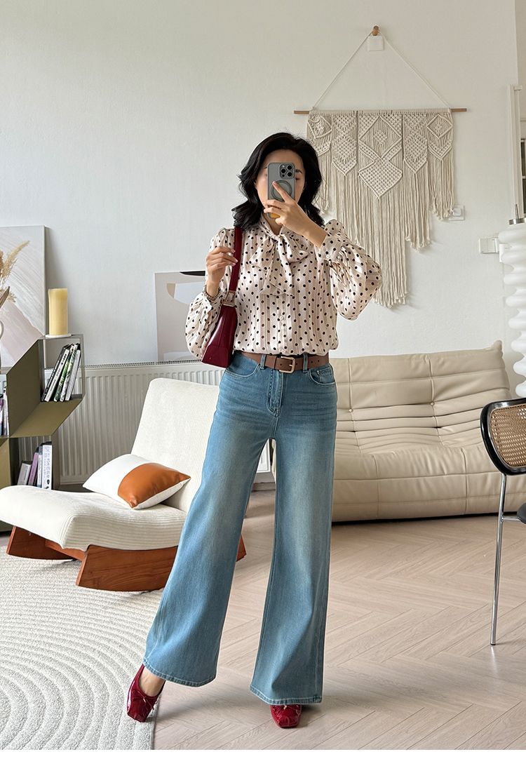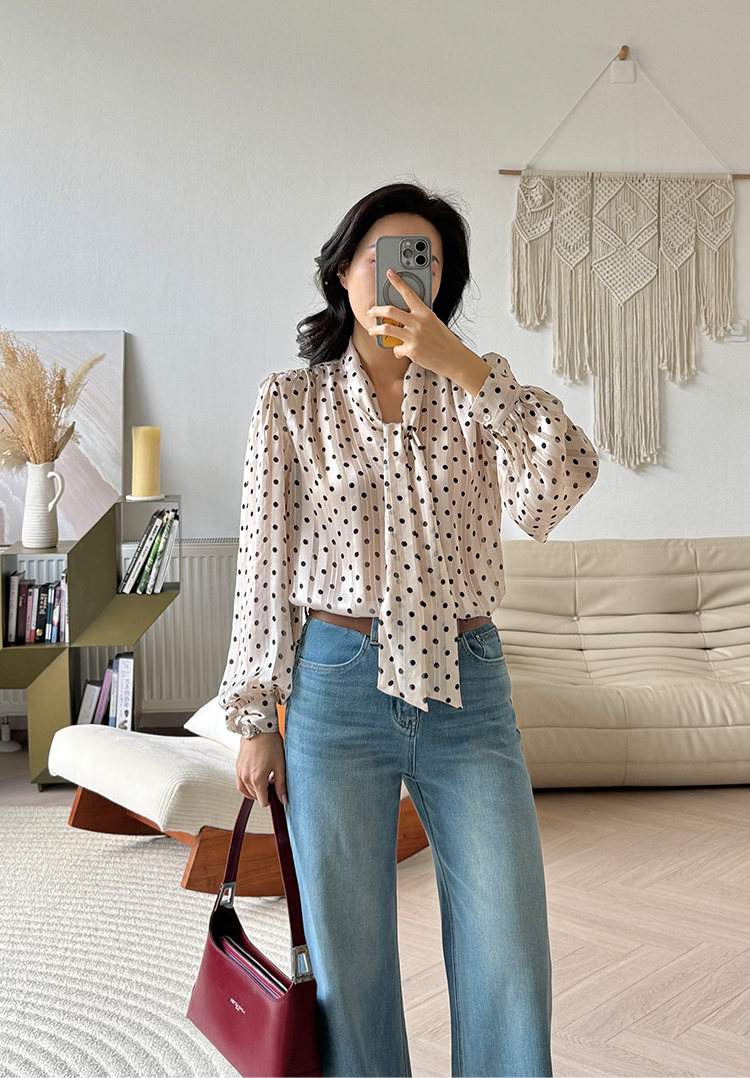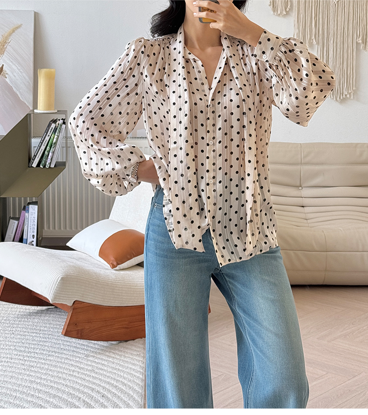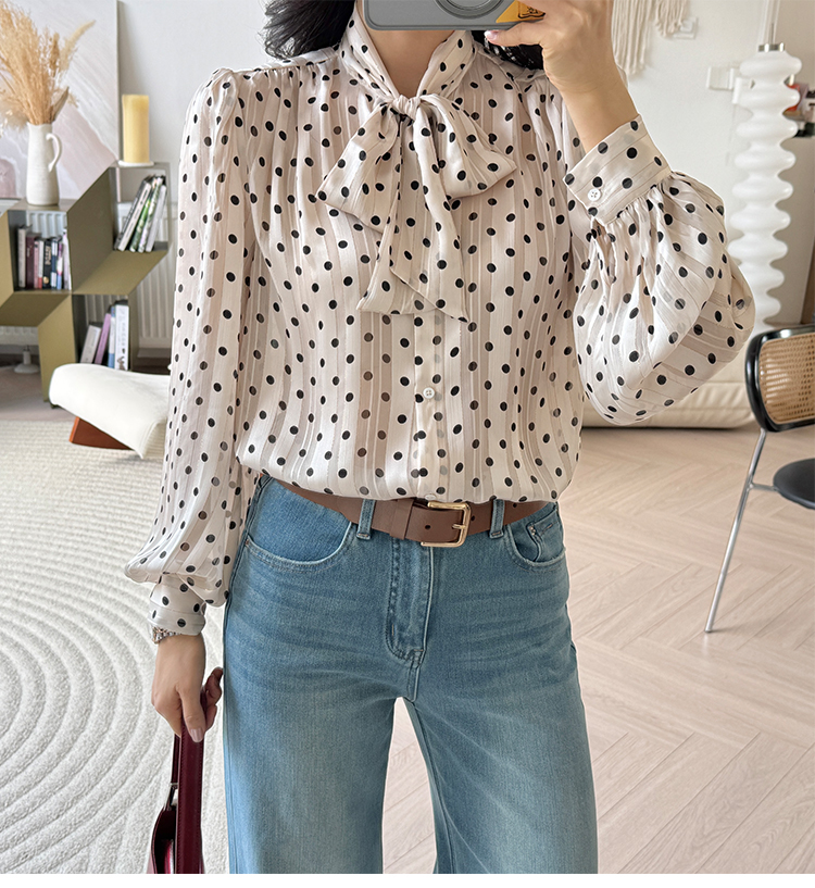 法式轻奢 香槟色 波点系带衬衫