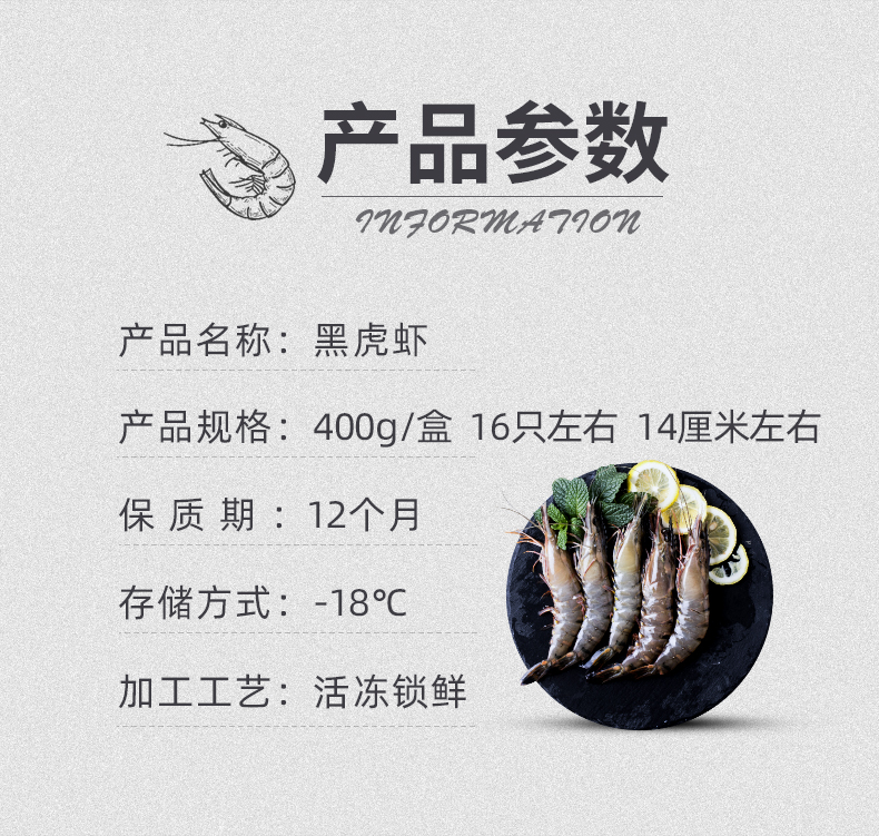 一份400g*2盒黑虎虾大虾新鲜冷冻老虎虾九节虾斑一份2盒