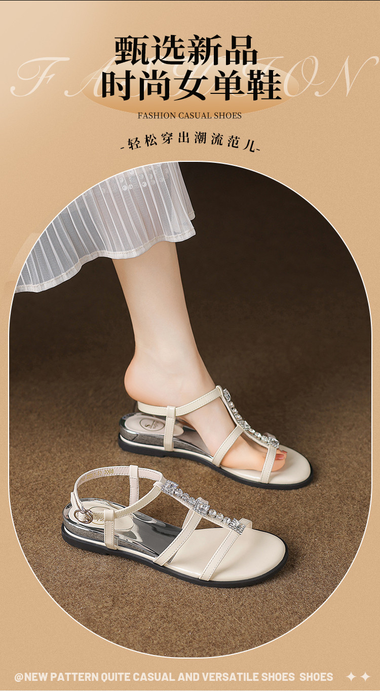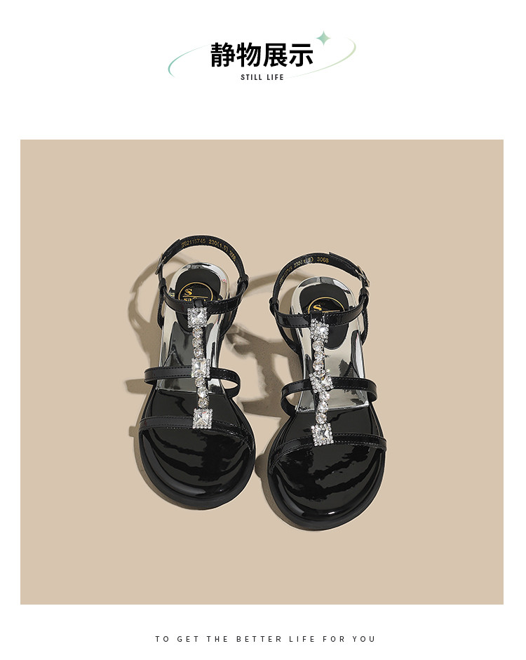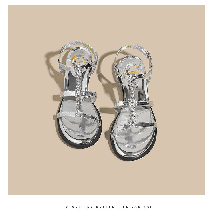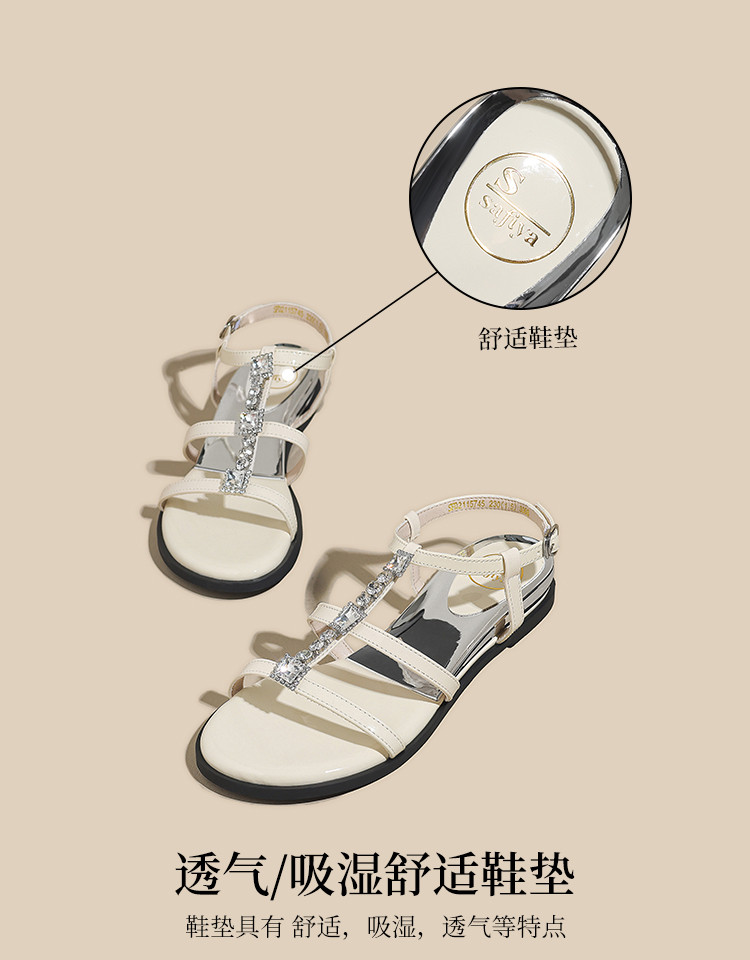 品质好货|Safiya/索菲娅2025高级感一字带水钻罗马凉鞋SFD2115745