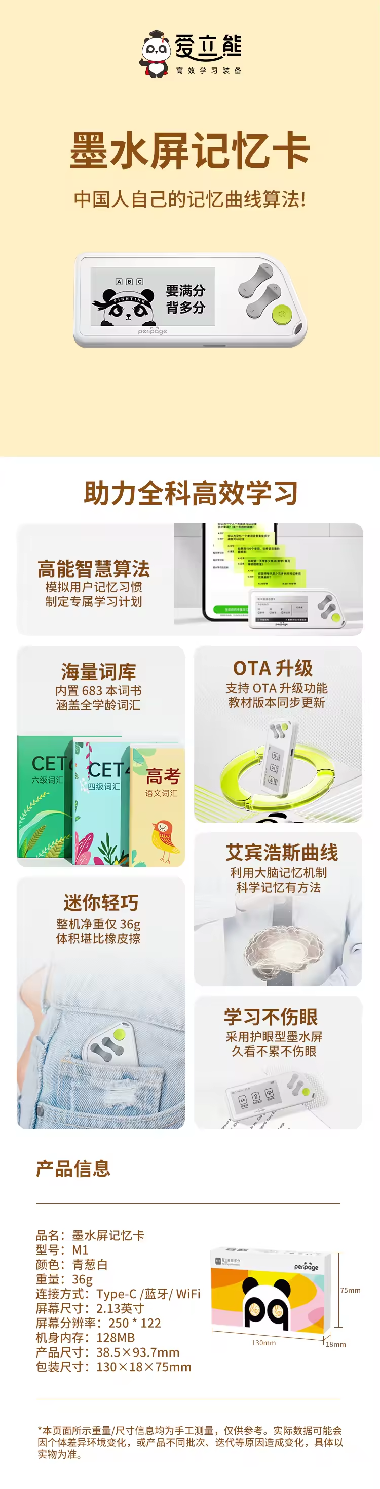 教育 背多分记忆卡 M1 -白 - 爱立熊