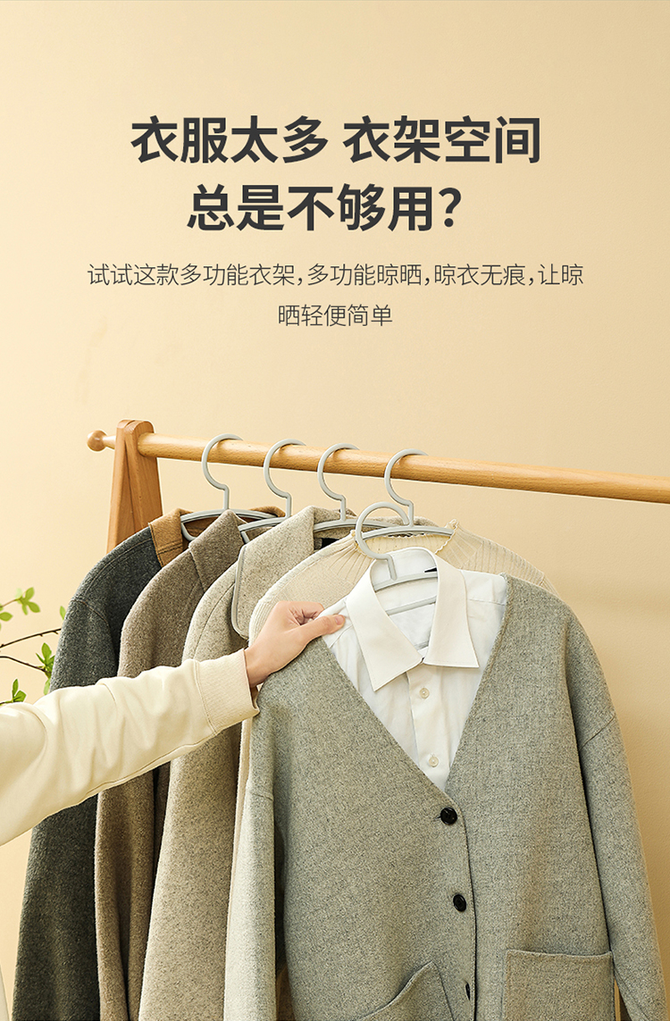 FaSoLa多功能晾衣架家用阳台成人挂衣收纳无痕防滑干湿两用撑衣架
