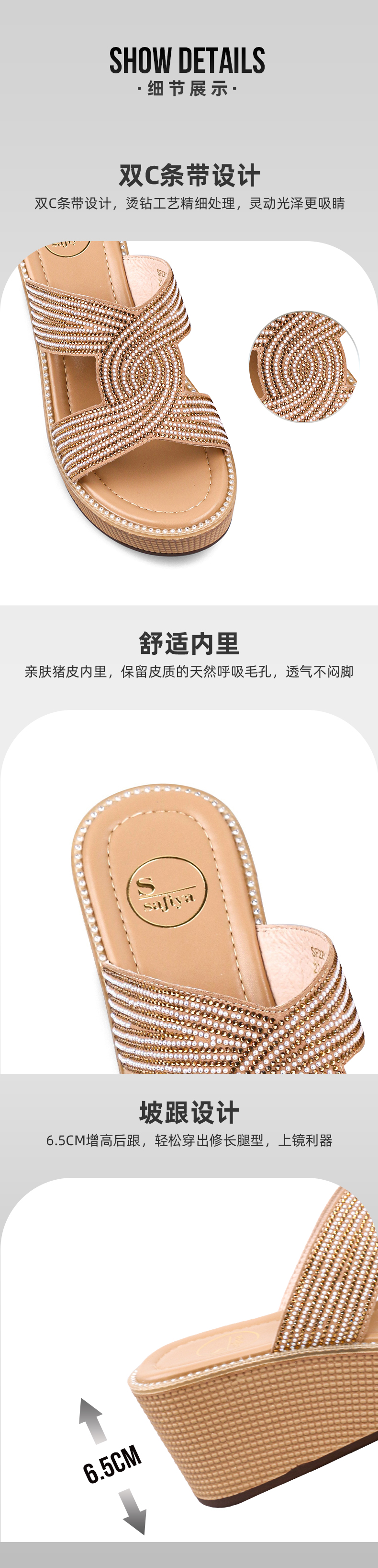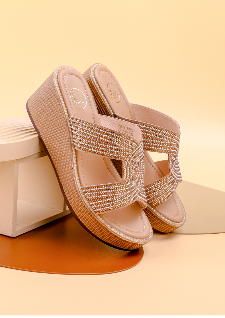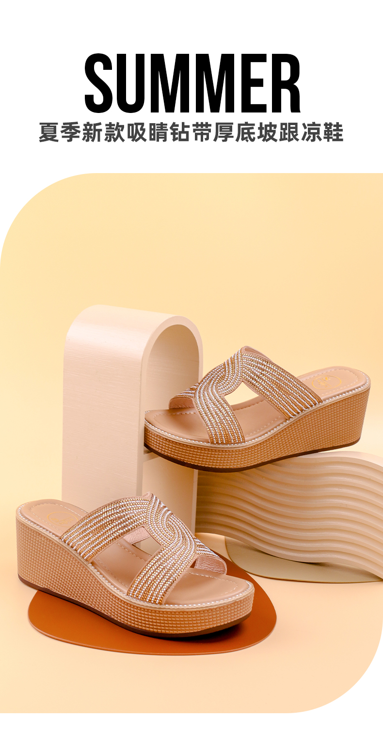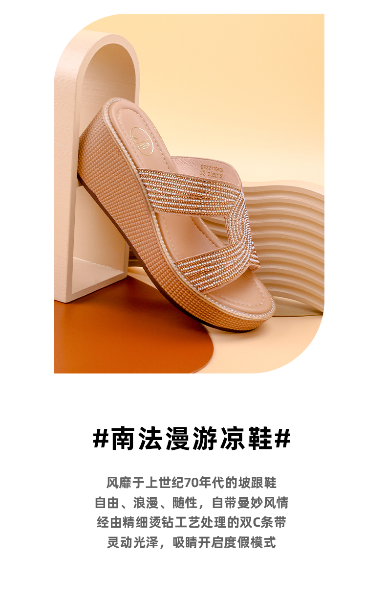 Safiya索菲娅双C烫钻带轻量厚底拖鞋2022新款坡跟增高凉拖SF22110402